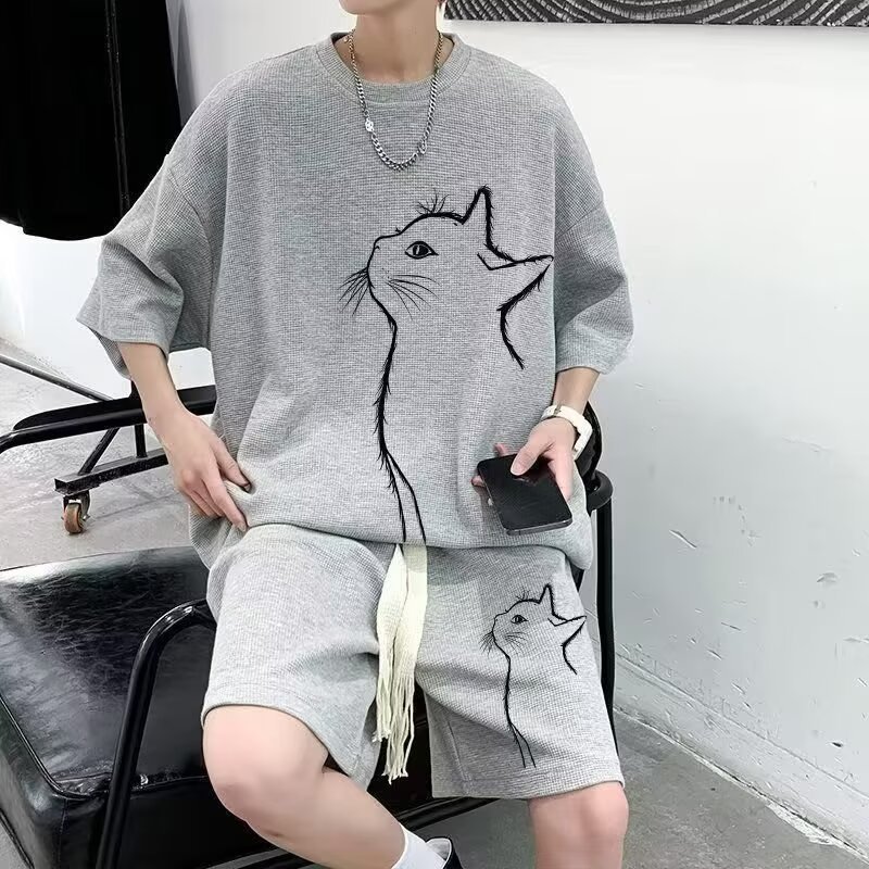 Camisa menos ropa traje de ropa deportiva verano para hombres camiseta de manga corta jersey de baloncesto pantalones cortos casuales de dos piezas tendencia coreana