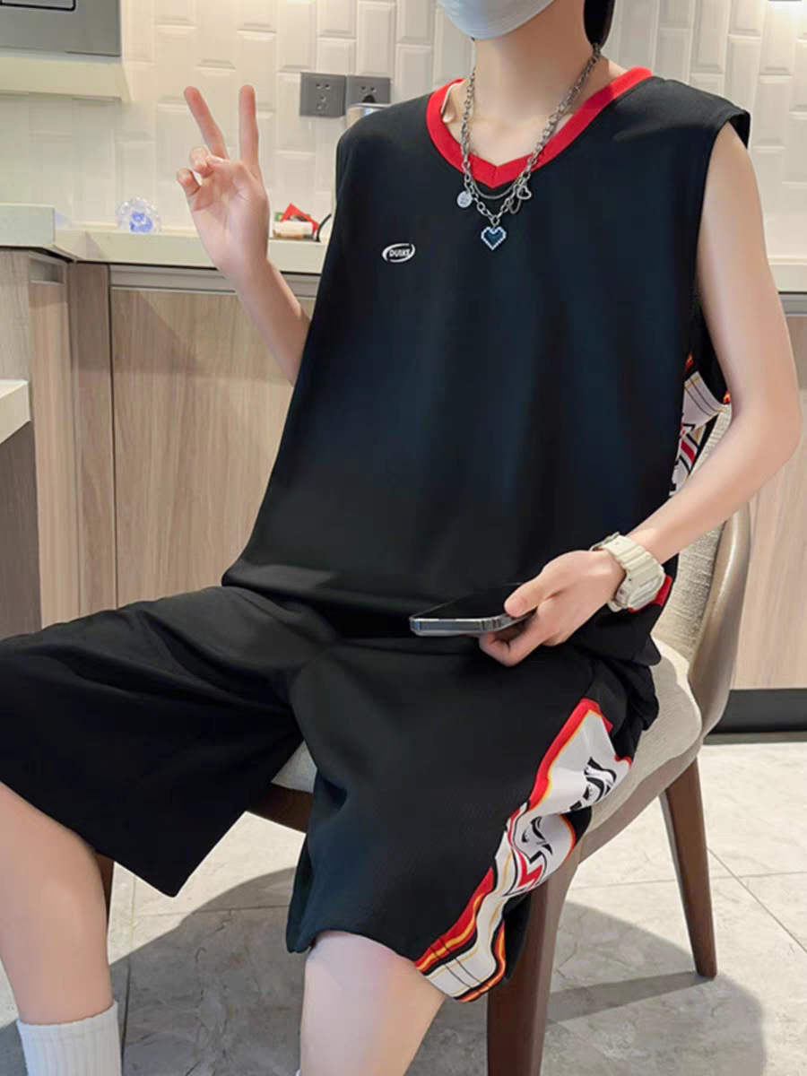 Camisa menos ropa traje de ropa deportiva verano para hombres camiseta de manga corta jersey de baloncesto pantalones cortos casuales de dos piezas tendencia coreana