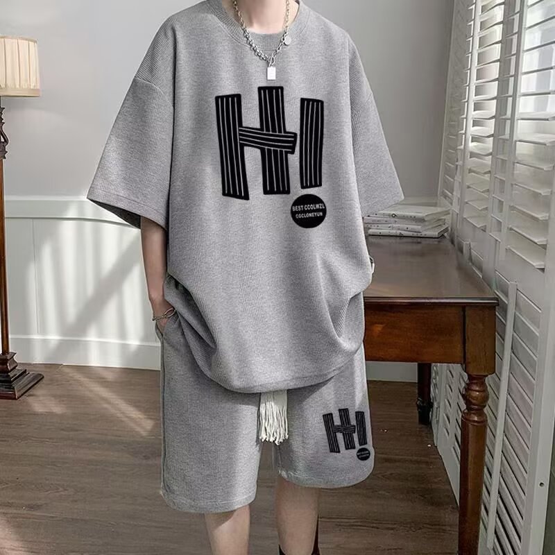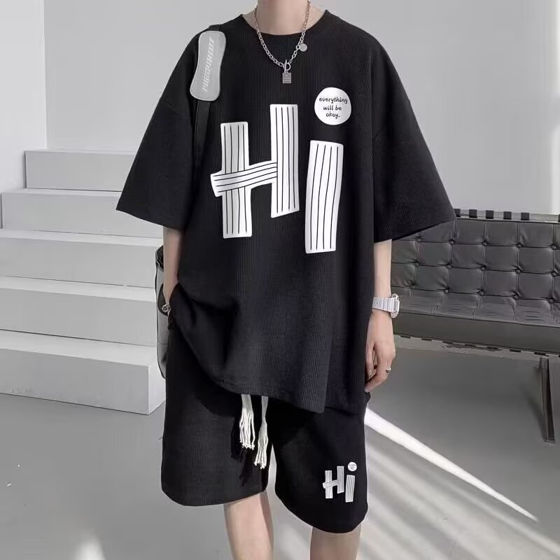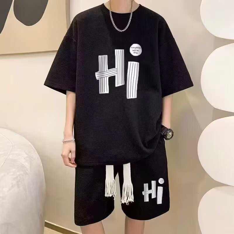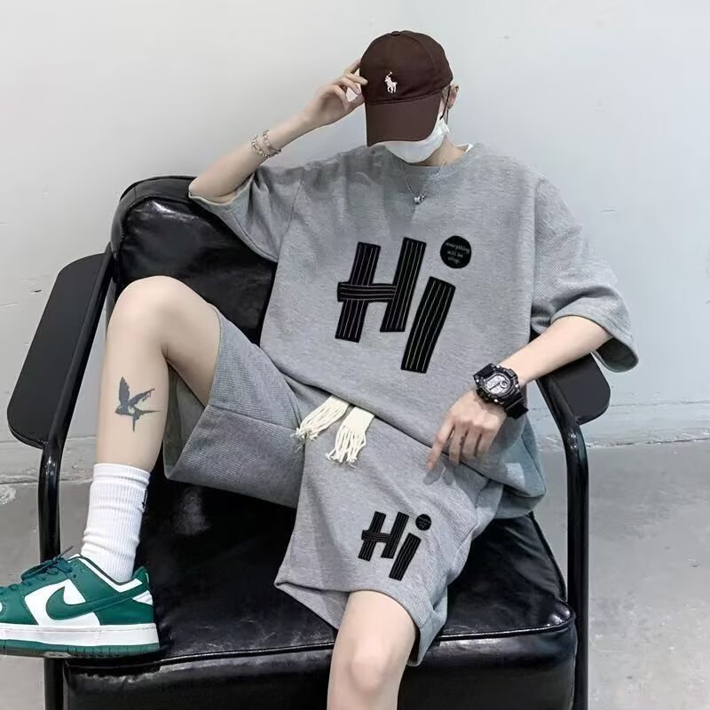 Camisa menos ropa traje de ropa deportiva verano para hombres camiseta de manga corta jersey de baloncesto pantalones cortos casuales de dos piezas tendencia coreana