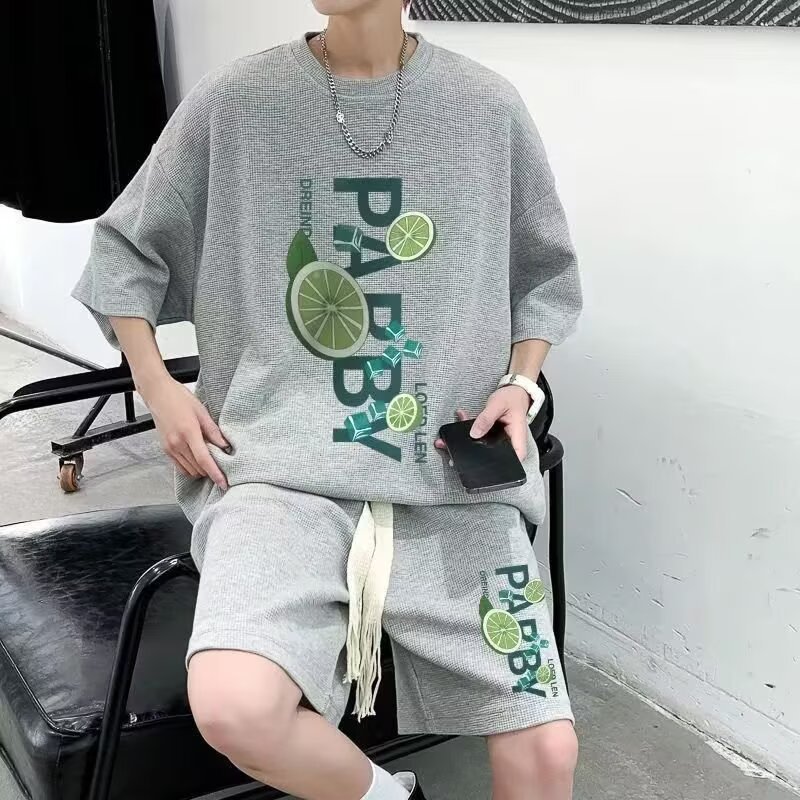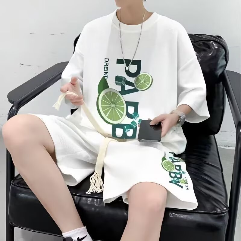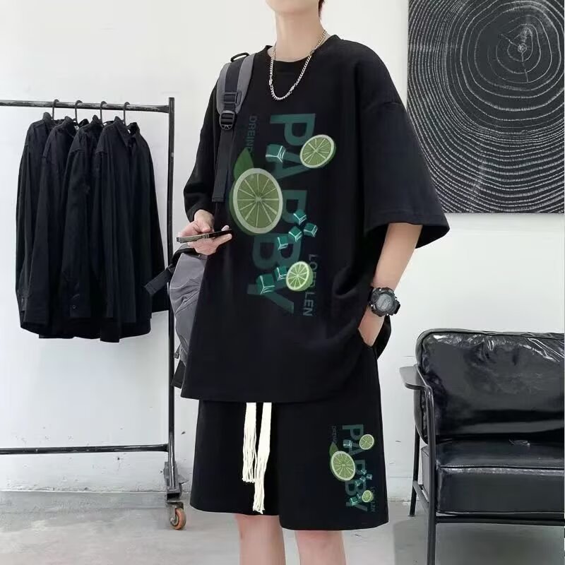 Camisa menos ropa traje de ropa deportiva verano para hombres camiseta de manga corta jersey de baloncesto pantalones cortos casuales de dos piezas tendencia coreana