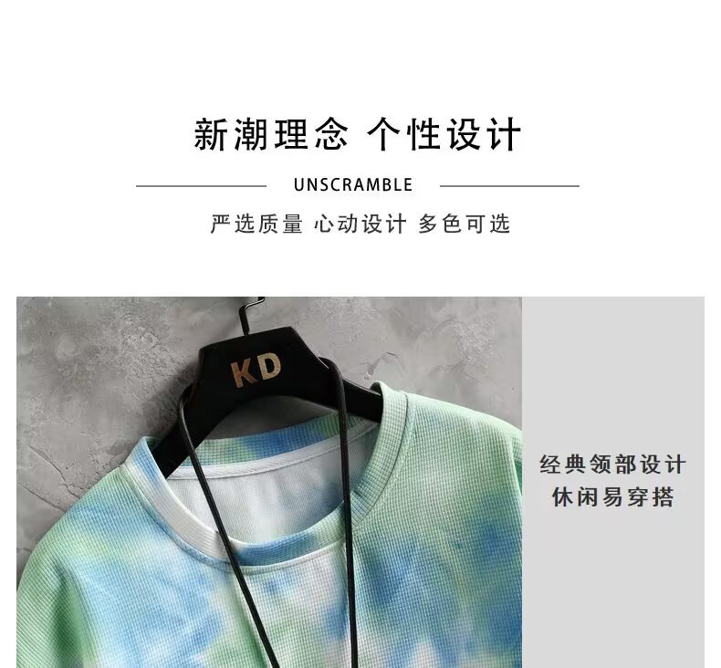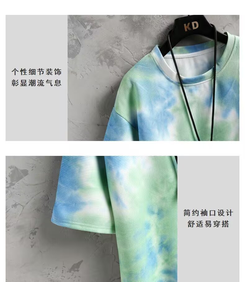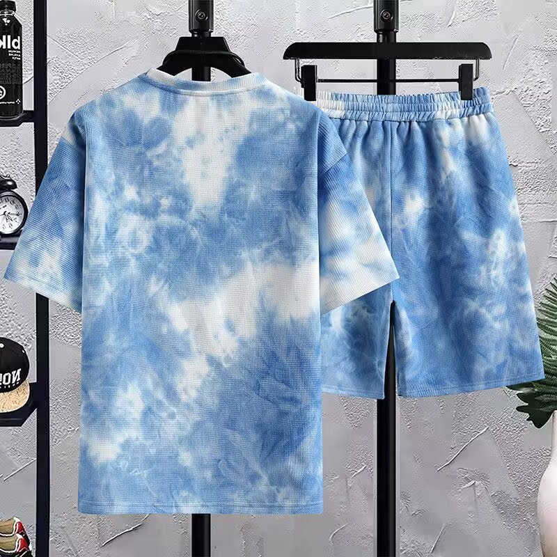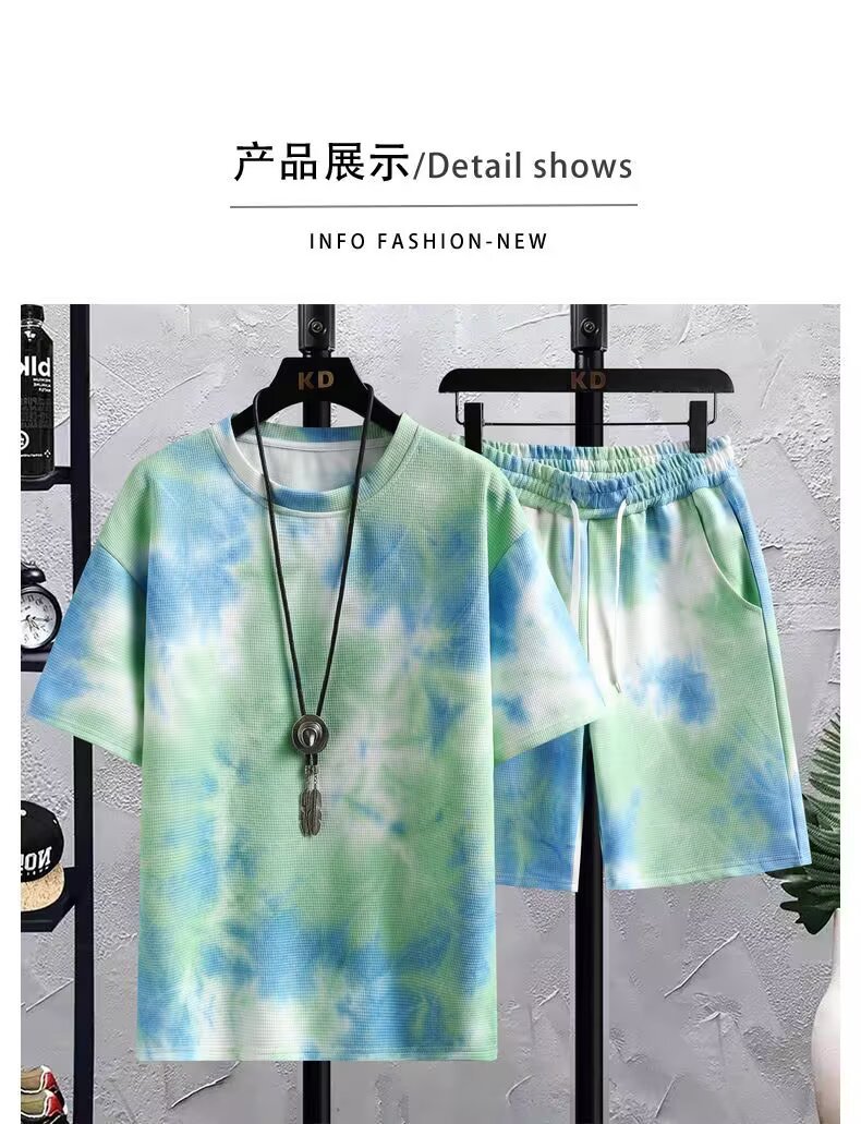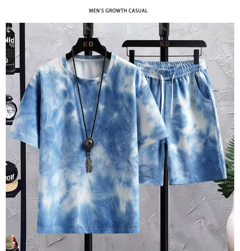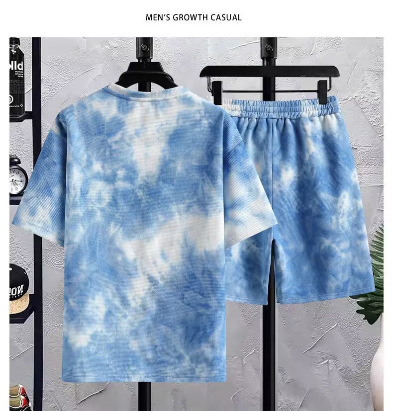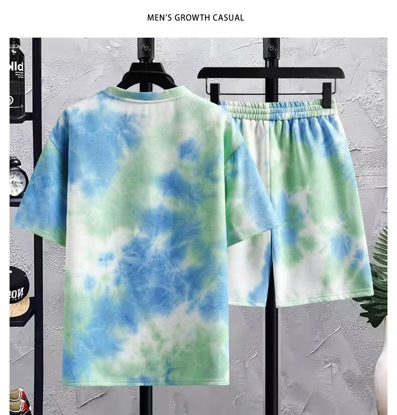 Camisas menos ropa deportiva set hombre de verano camiseta de mangas cortas camiseta de baloncesto casual coreano atado teñido pantalones cortos set de dos piezas