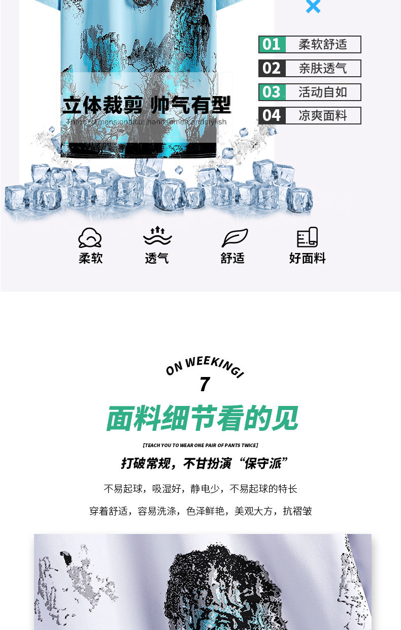 Camisa ropa de hombre primavera y verano delgada tie-dye de manga corta estilo nacional pintura de paisaje listo casual versátil al por mayor cuello redondo