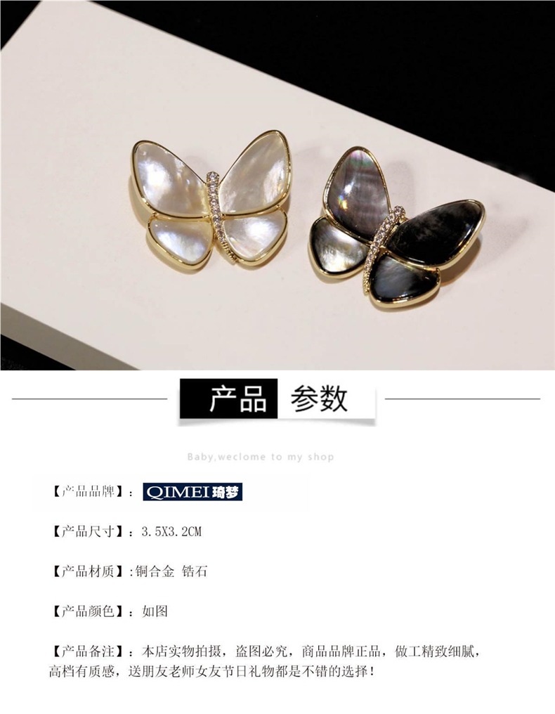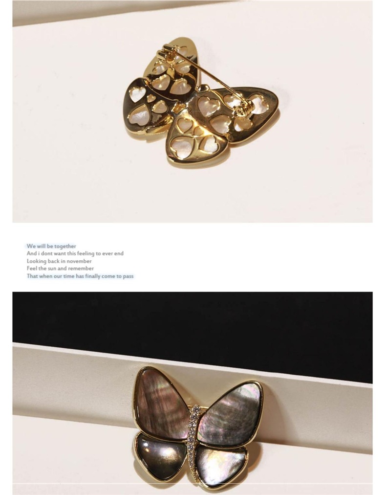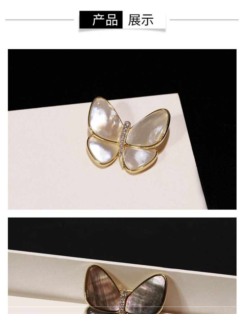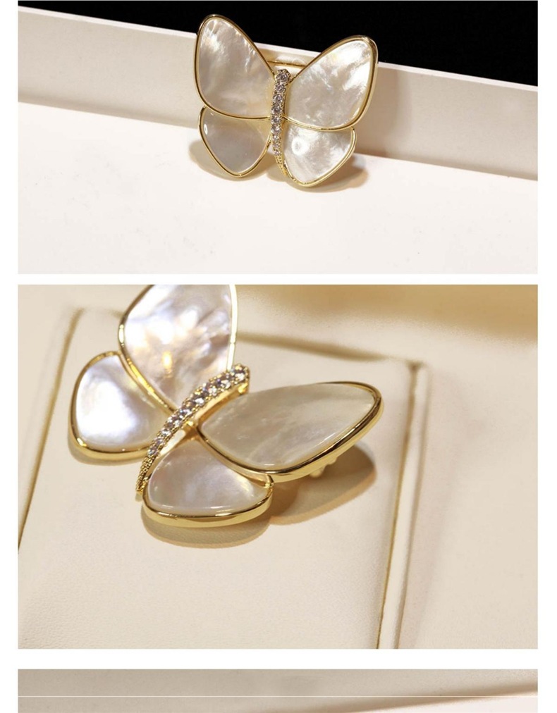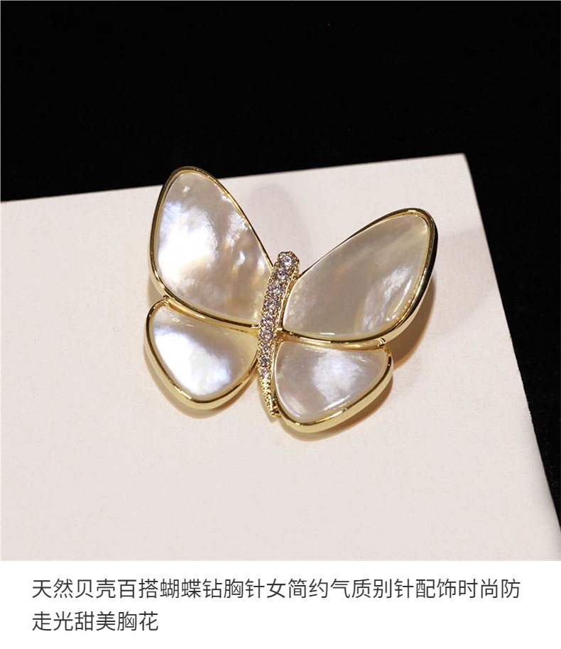 Conchas naturales mariposa universal broche de taladro temperamento femenino minimalista accesorios de pin de moda anti-luz dulce pecho de cobre