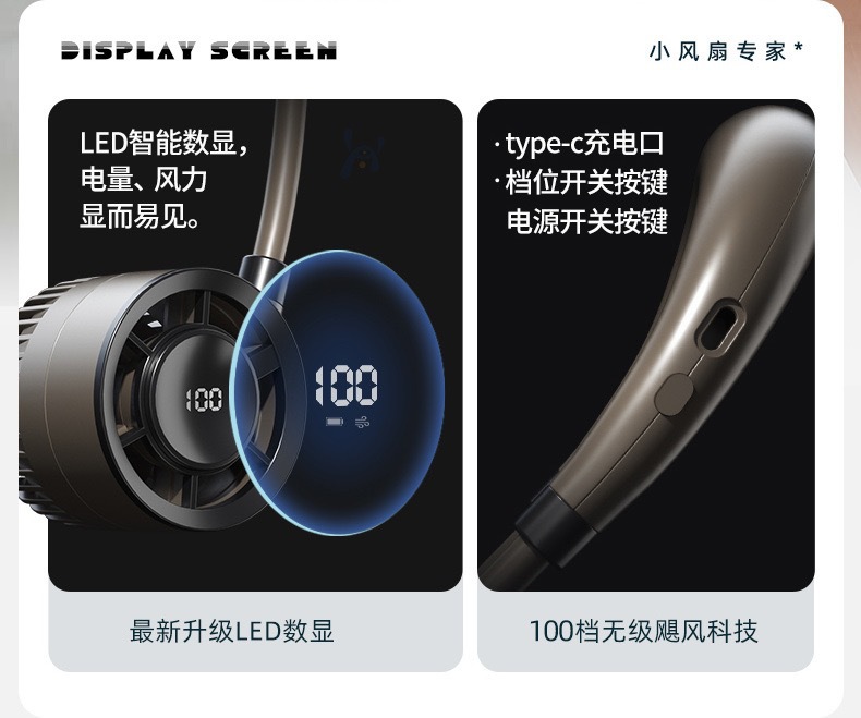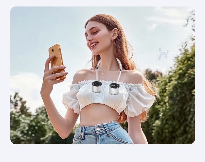 Portátil cuello pequeño ventilador de oficina al aire libre carga mini ventilador colgante al por mayor