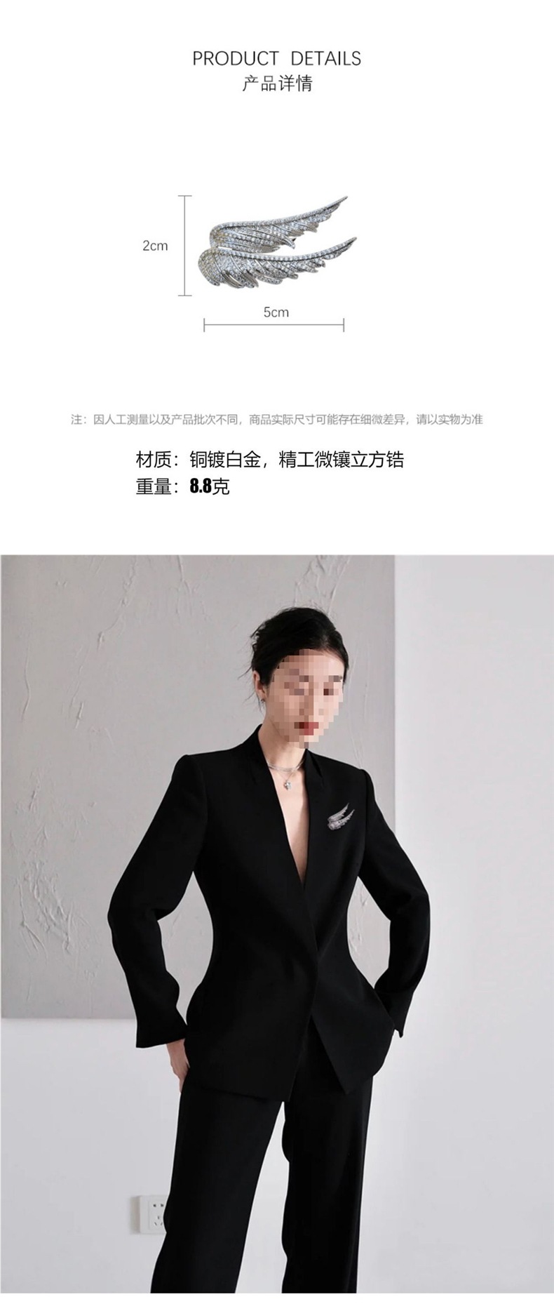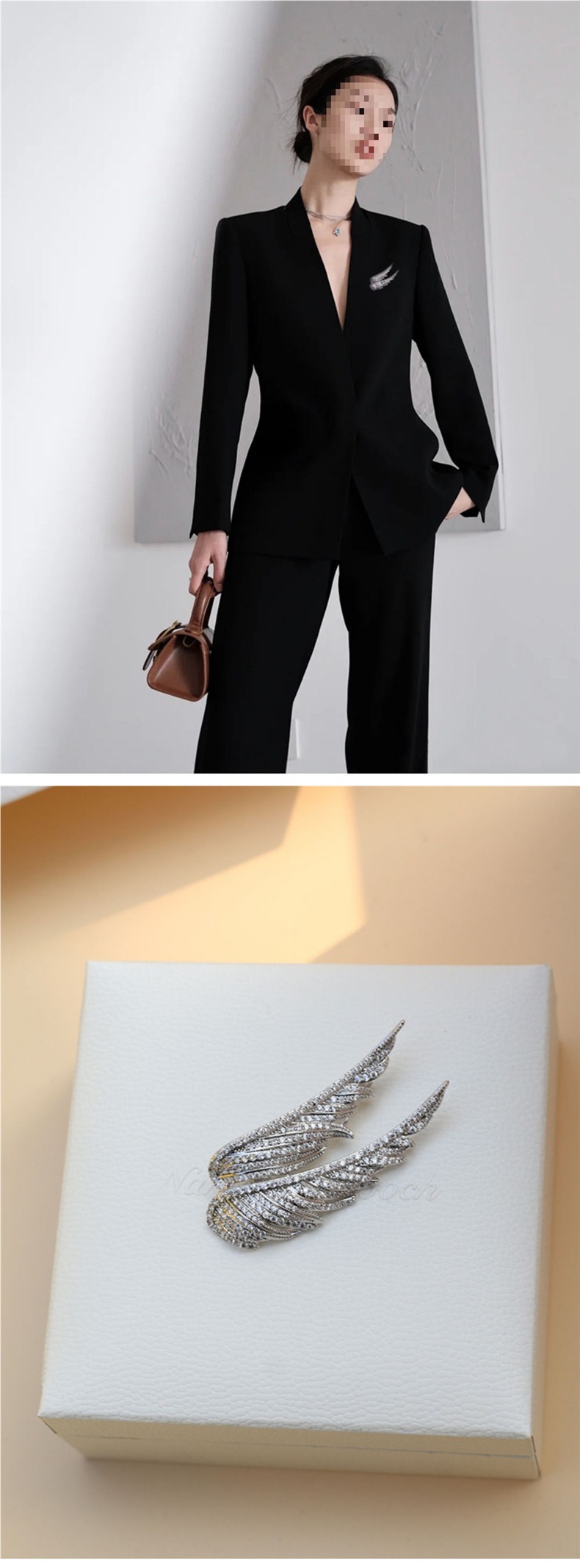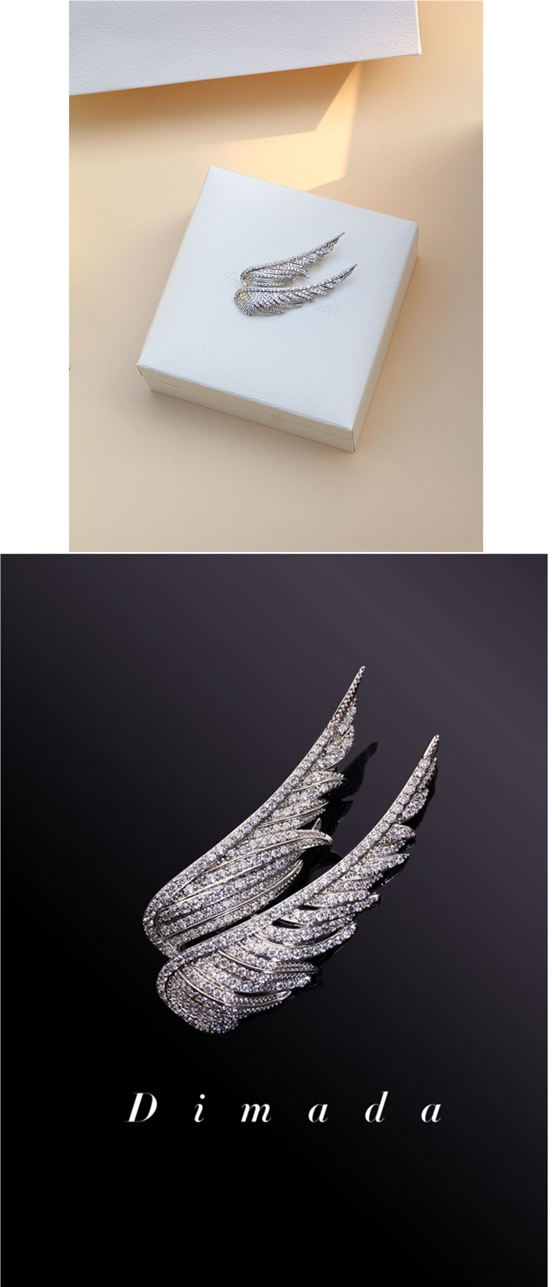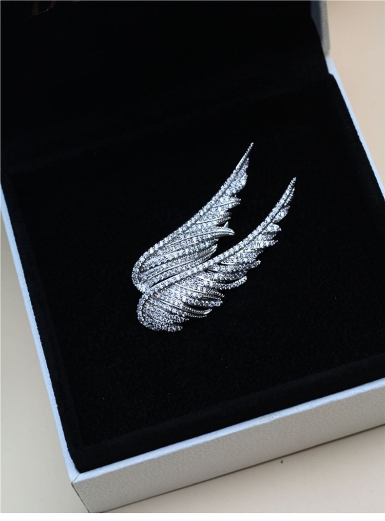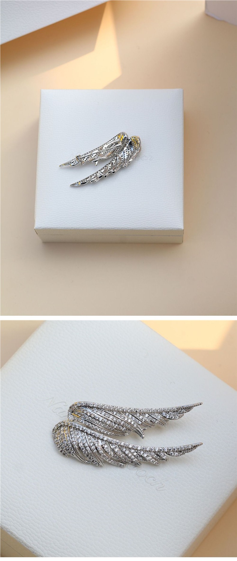 Micropelcro de piedra multifacé doble ala de ángel vuelo alas dimada plumas broche broche flores broche pareja mujer explosión