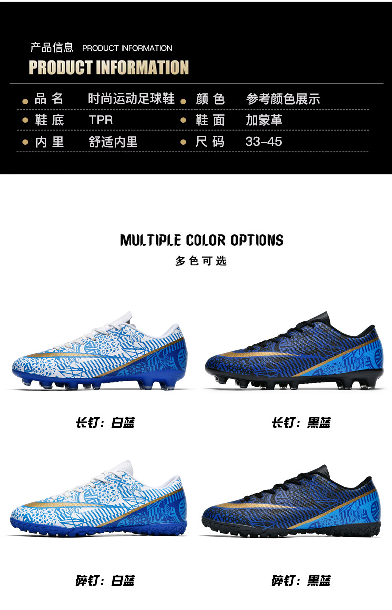 Nuevos zapatos de fútbol transfronterizos de alto nivel, zapatos de entrenamiento de entrenamiento de clavos largos, zapatos de fútbol para hombres, juveniles