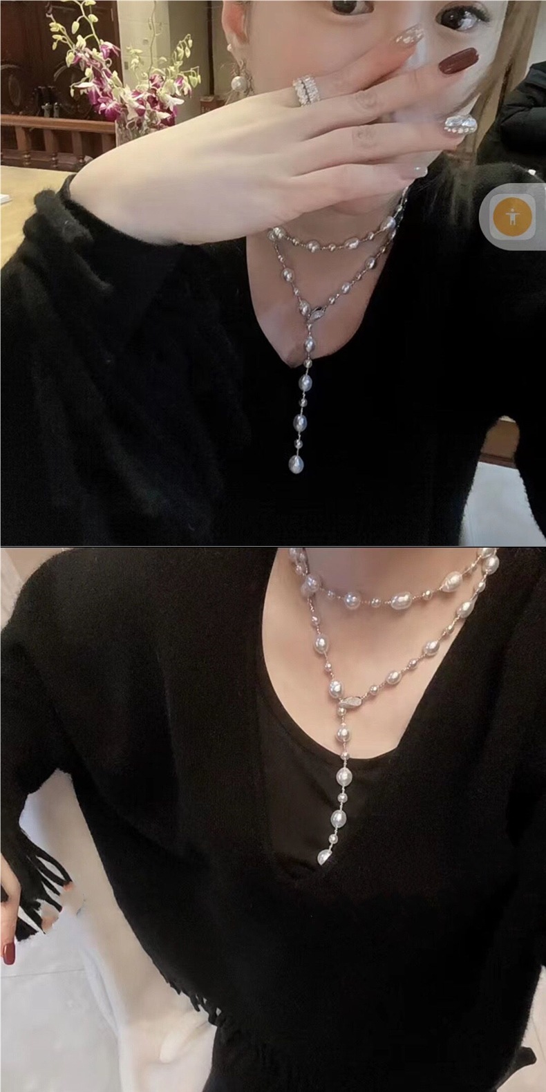 Barroco perla larga cadena de suéter cadena de collar cadena de clavícula un temperamento de uso múltiple 758 cuero artificial