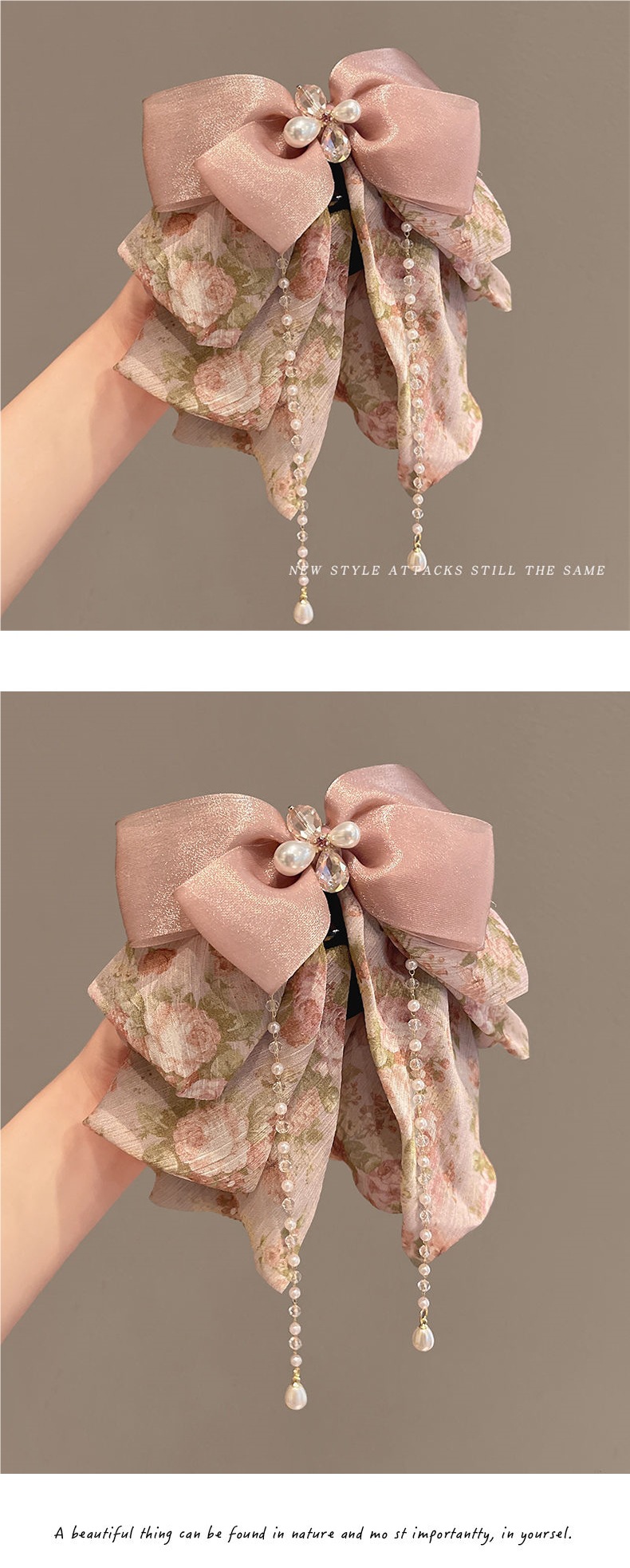 2025 dulce clip de cabello de arco de la cabeza detrás del clip de cabello medio atado temperamento elegante bordilla clip de tiburón explosión