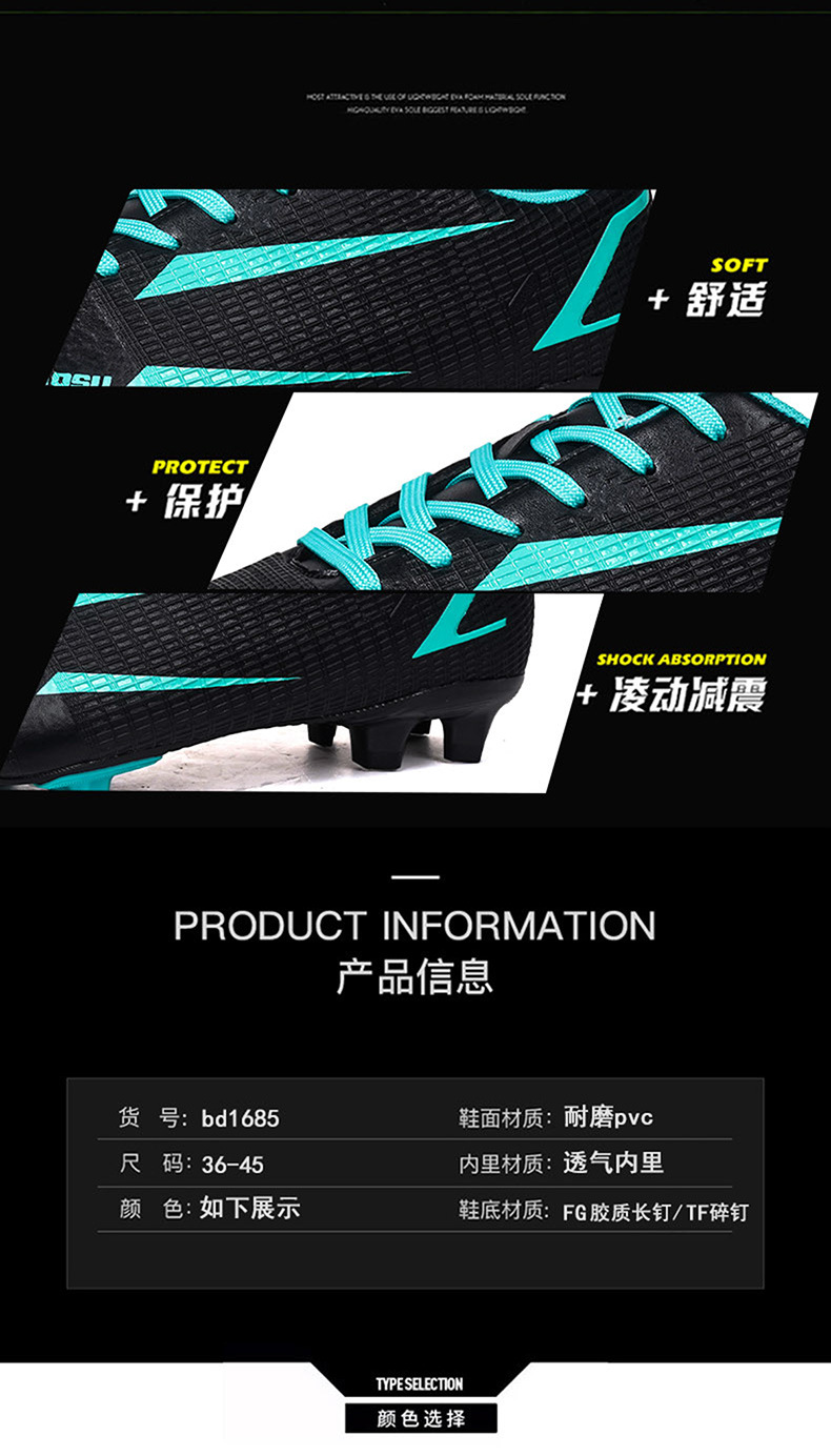 2025 nuevos zapatos de fútbol juveniles de clavos largos transfronterizos para hombres y mujeres fábrica de zapatos de entrenamiento de competición de moda