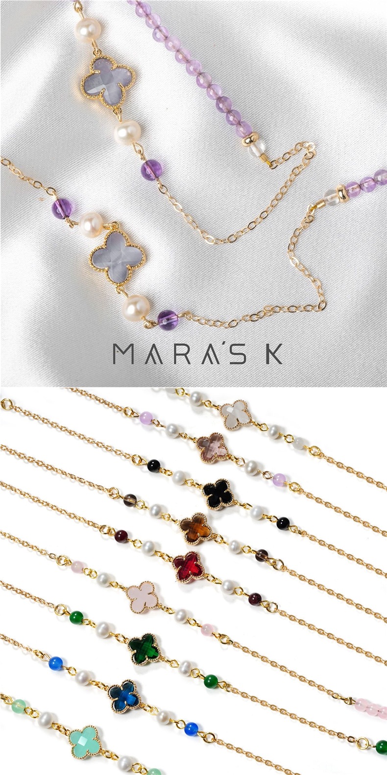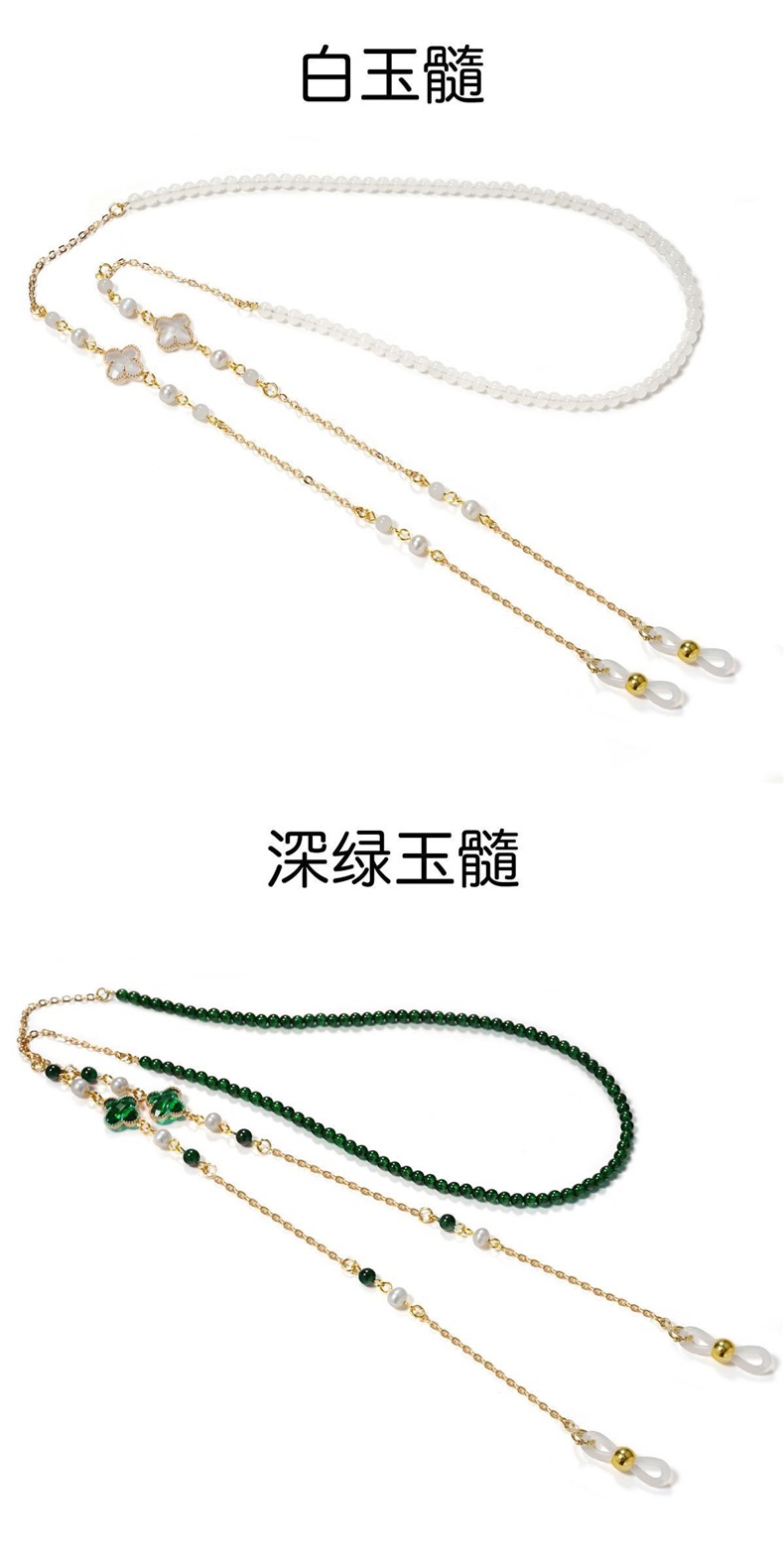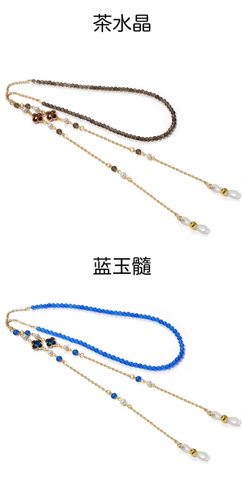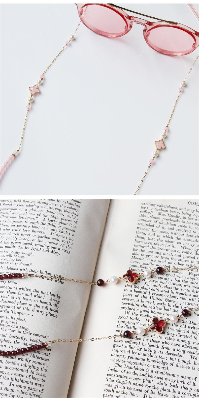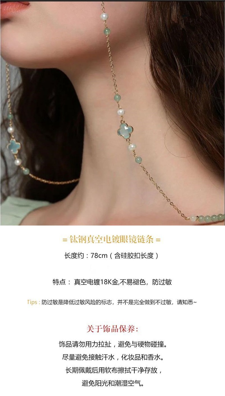 Perla natural cristal cuatro hojas gafas cadena gafas de sol cadena retrógrada mujer colgar gafas cuerdas Lolita medula