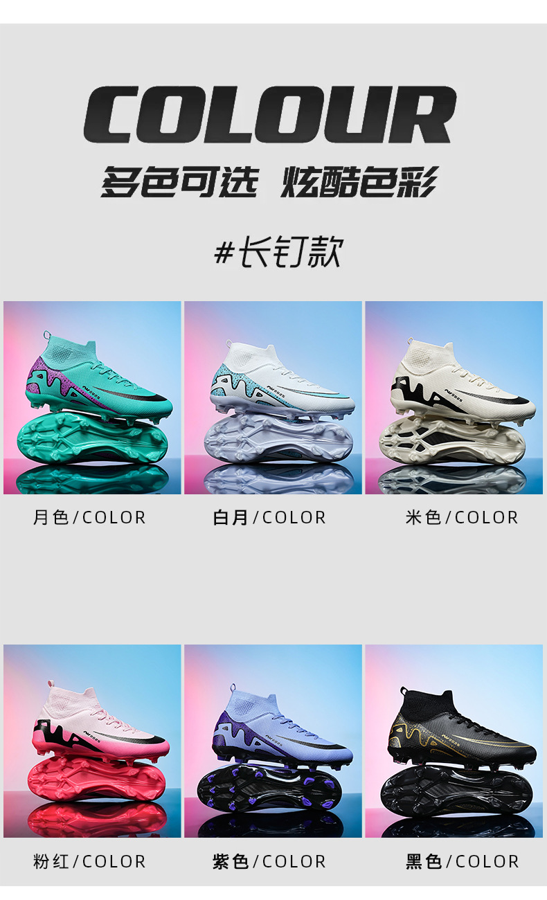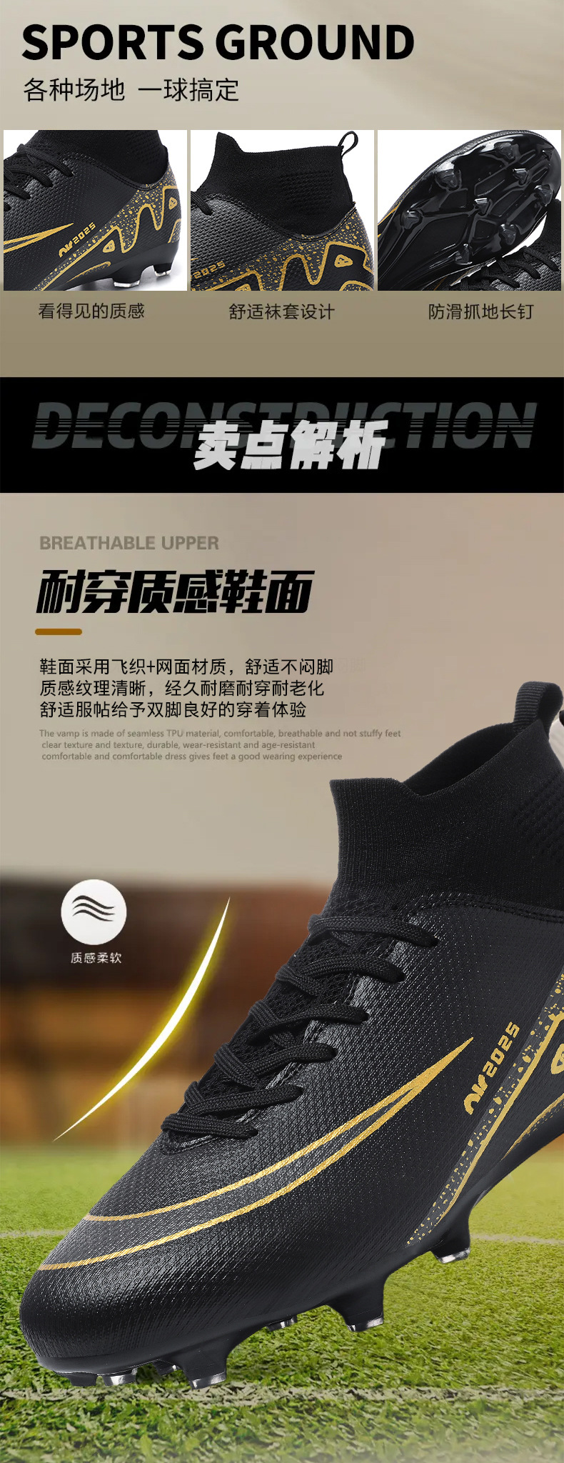 2025 nuevos zapatos de fútbol FGTF hombres y mujeres zapatos transpirables de alto perfil de zapatos de fútbol de clavos cortos fabricantes de venta directa de un cabello