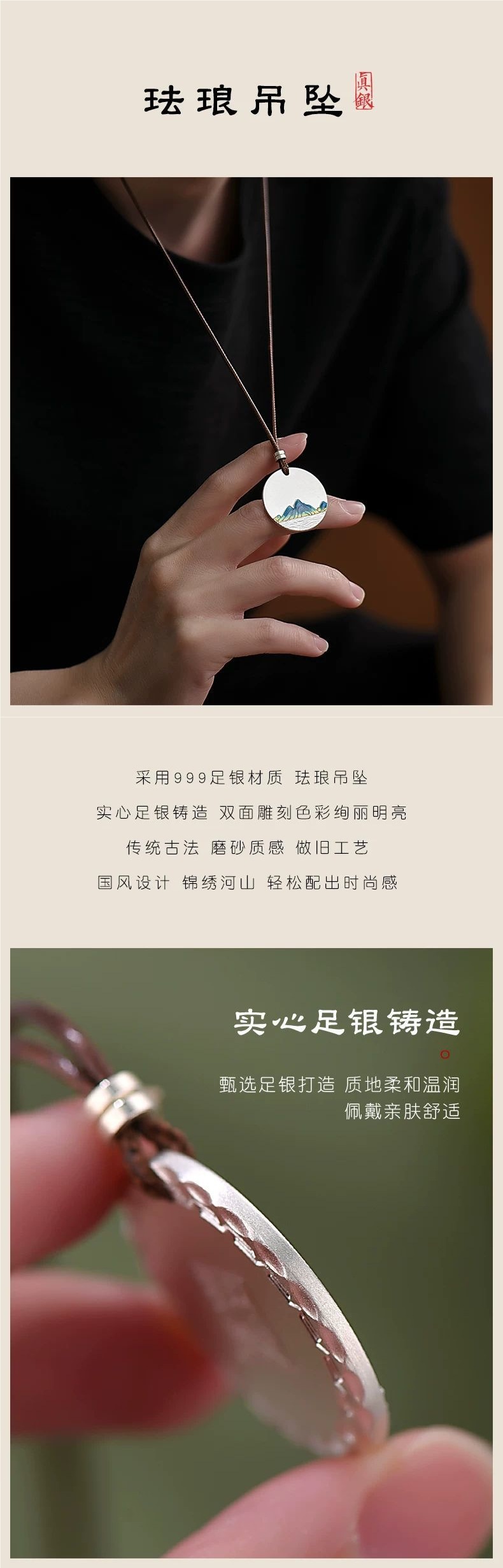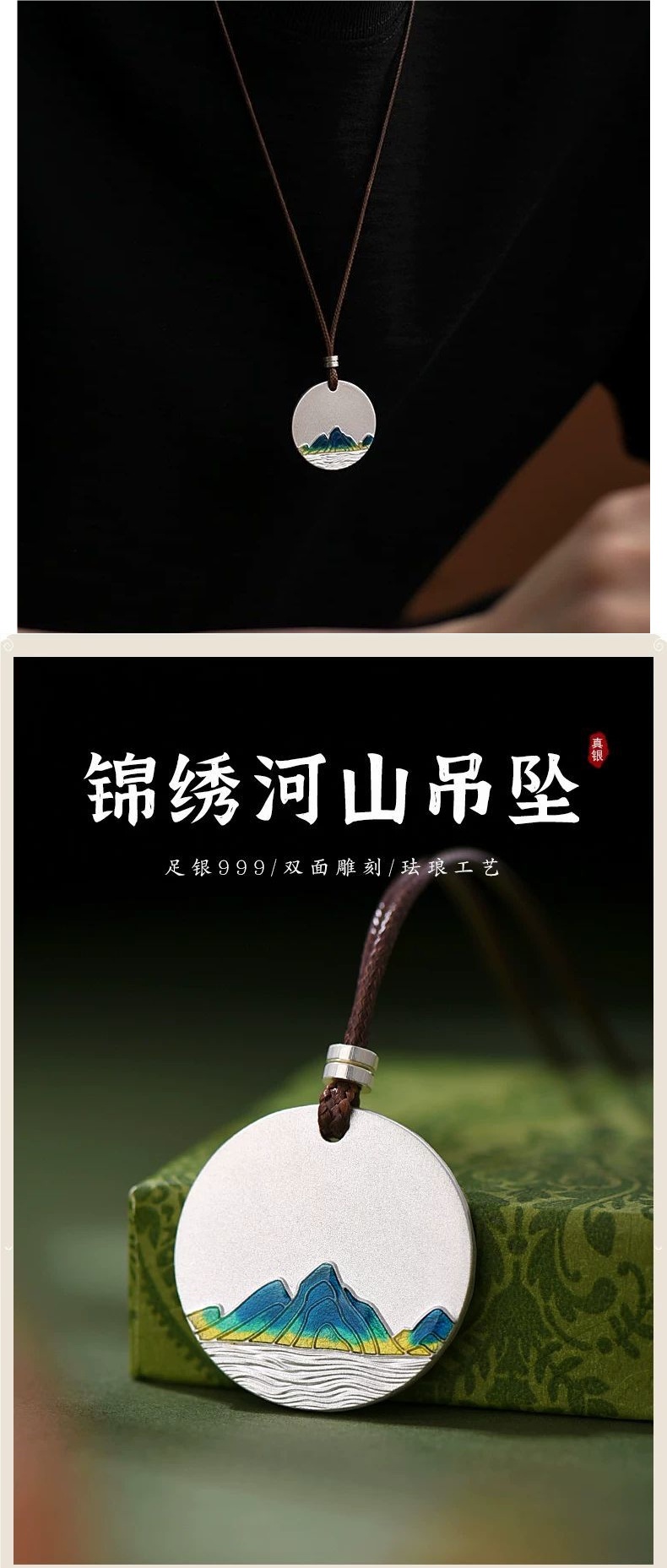 999 plata esterlina sin incidentes colgante de plata esmaltado para hombres y mujeres collar de río y montaña regalo de Año Nuevo de la Serpiente