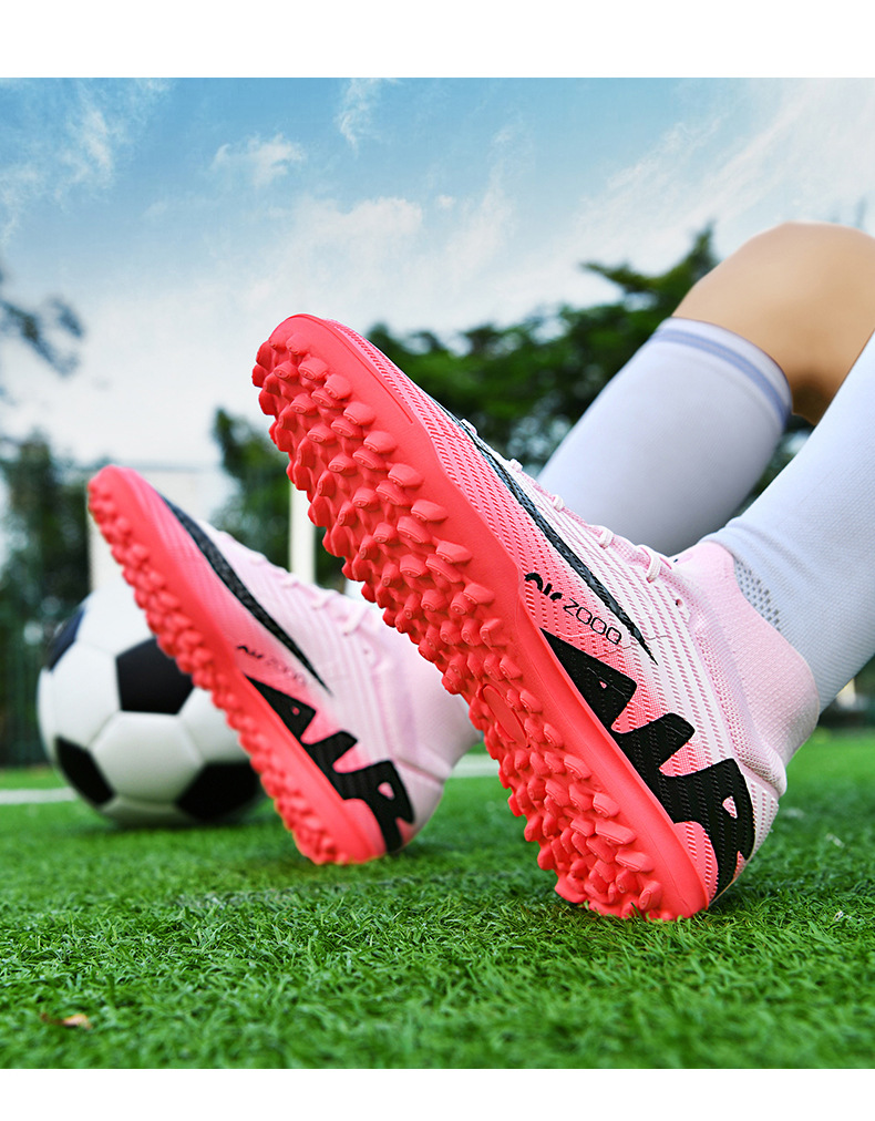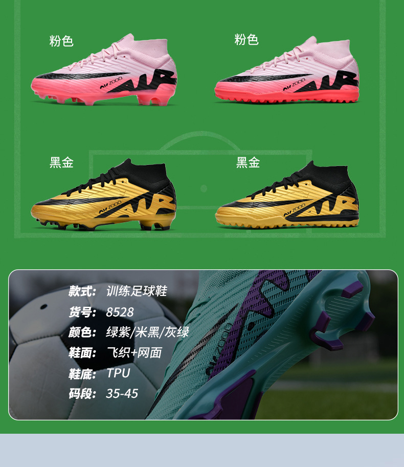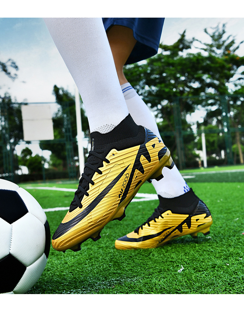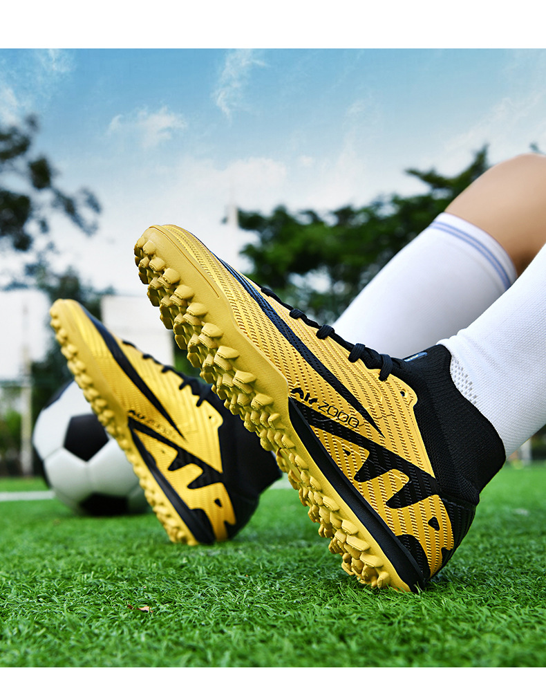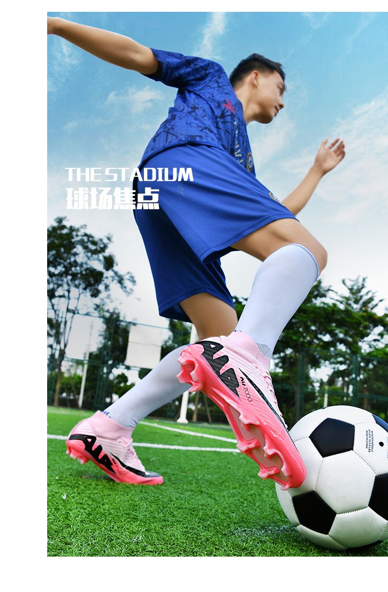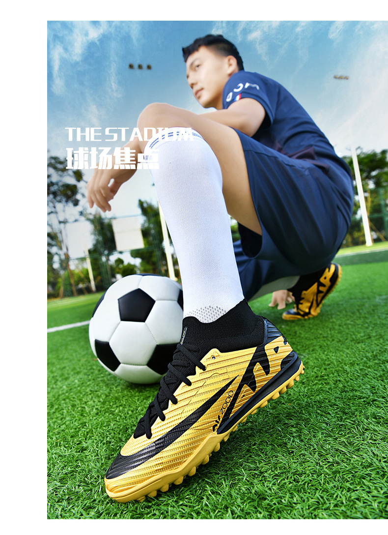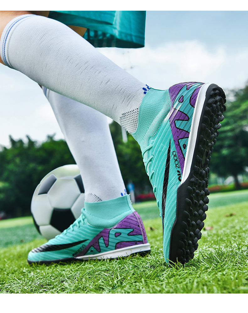 Putian High Top Flying Weaving Estudiante de secundaria Soccer Football Shoes Boots Zapatos de fútbol Zapatos de tacón TF