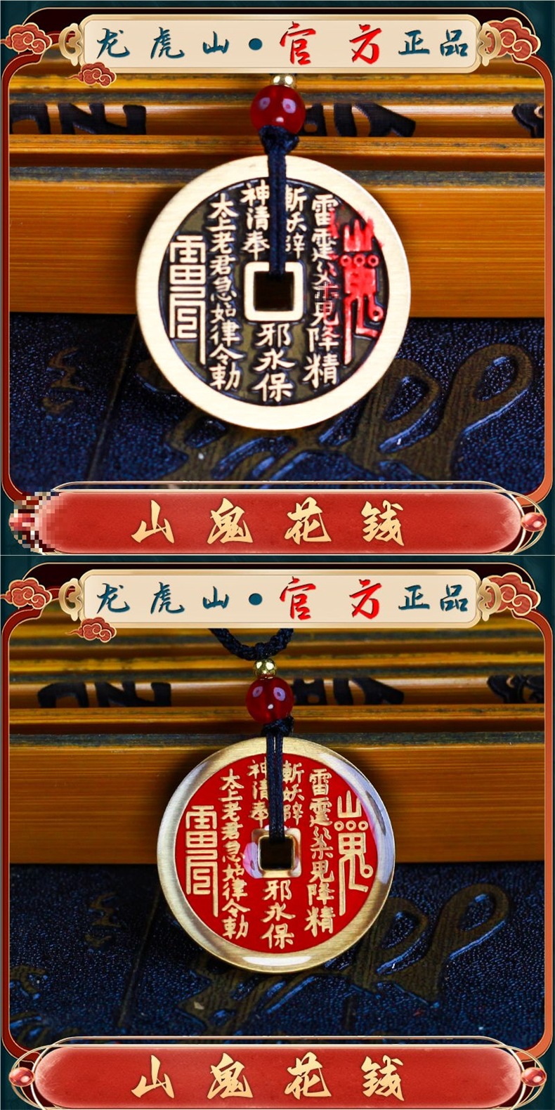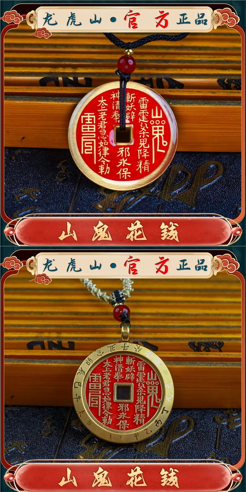 Montaña fantasma gastar dinero colgante taoísta verdadera moneda antigua collar cintab chismes joyería moneda de bronce fresco dulce estilo chino