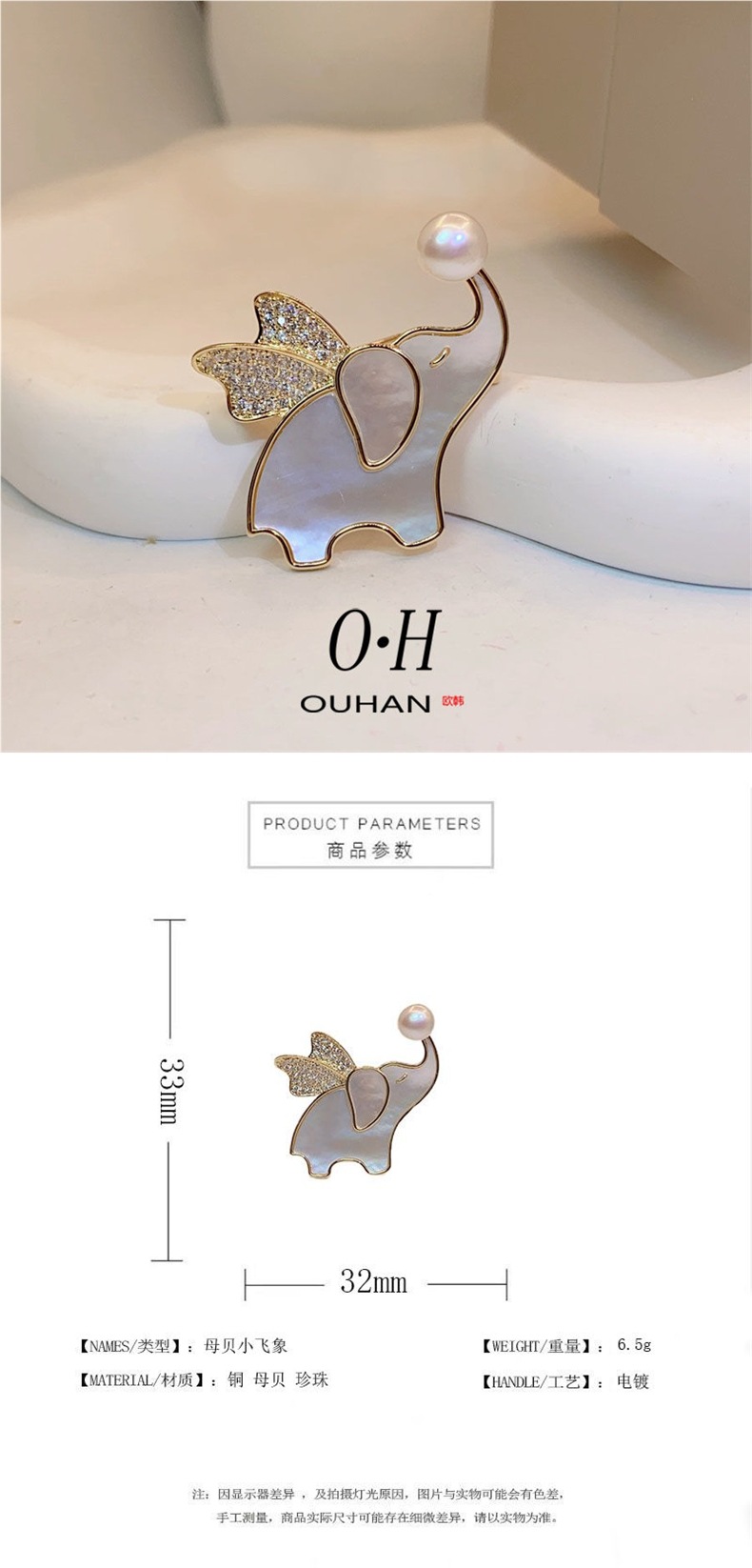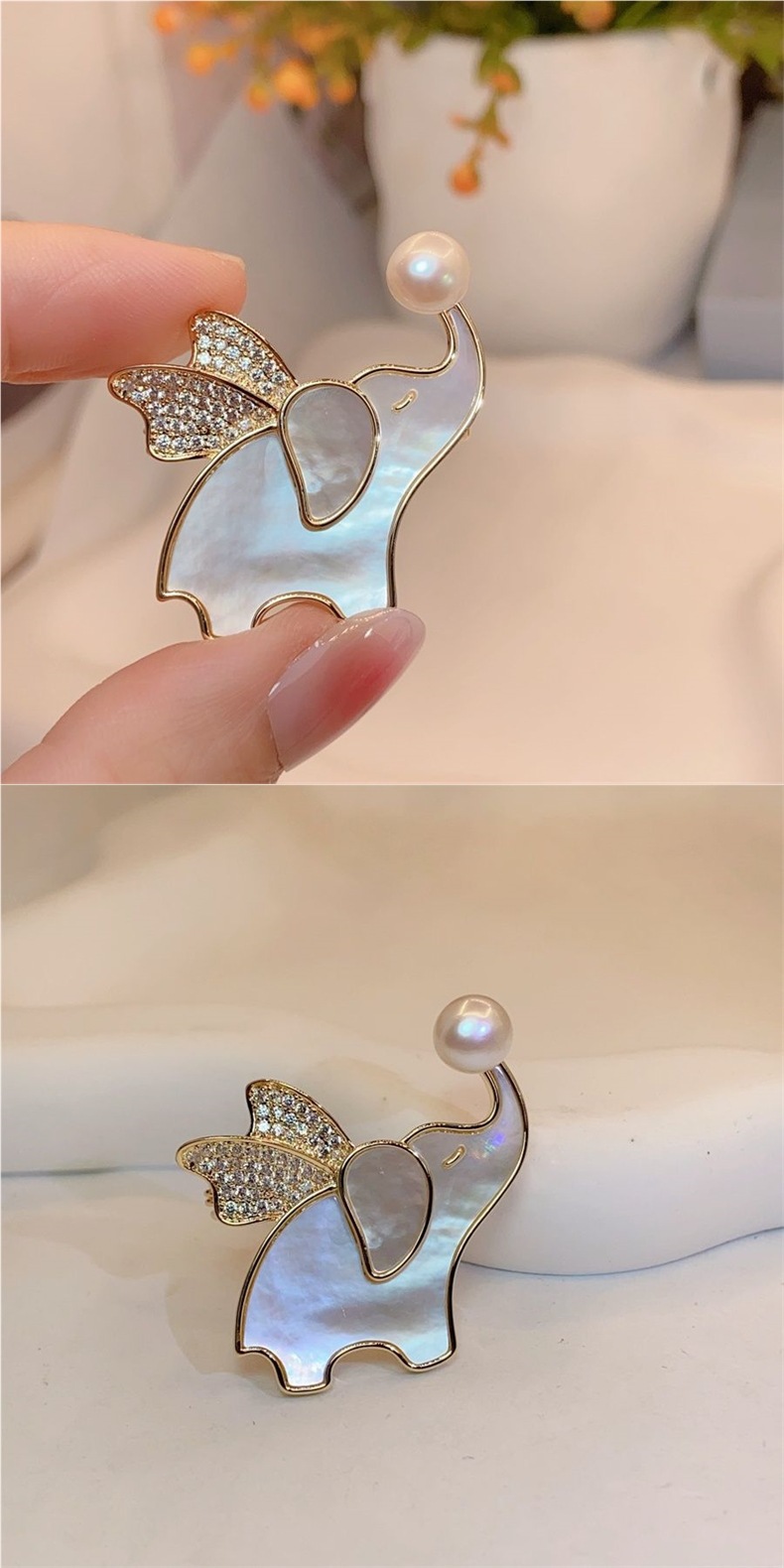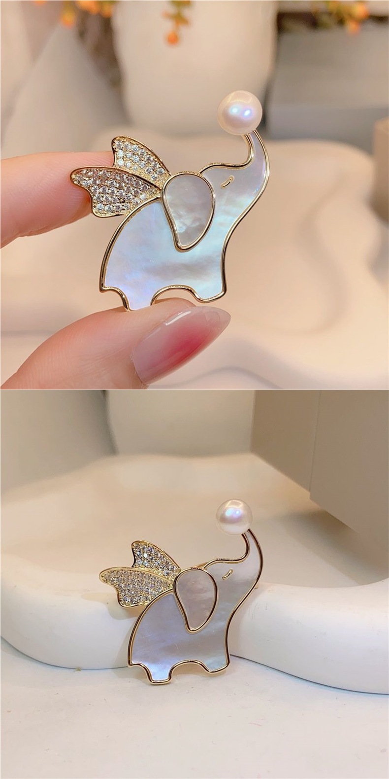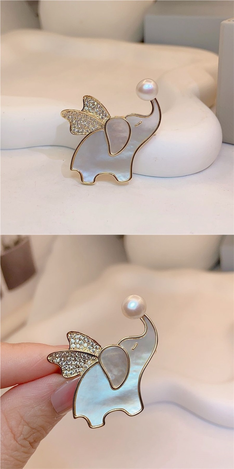 Fritillaria natural Flying elefante broche broche japonesas y coreanas adorables animales broche de ropa accesorios de venta caliente