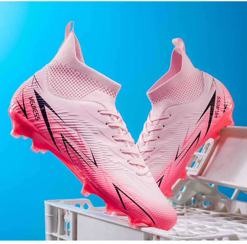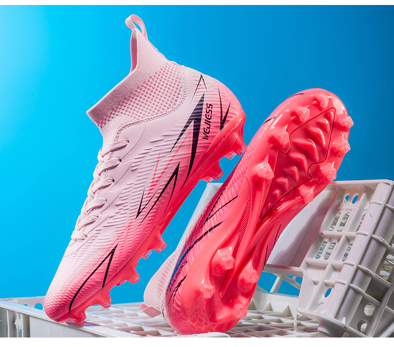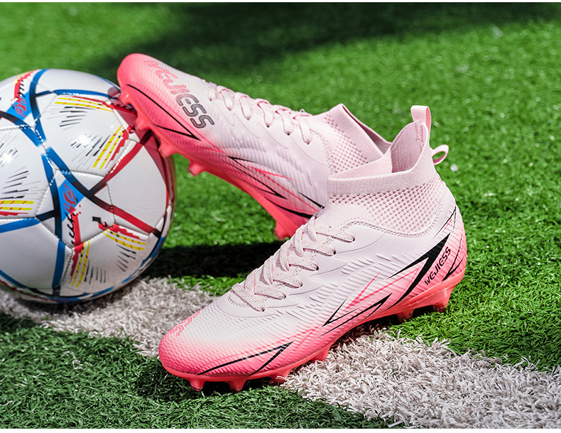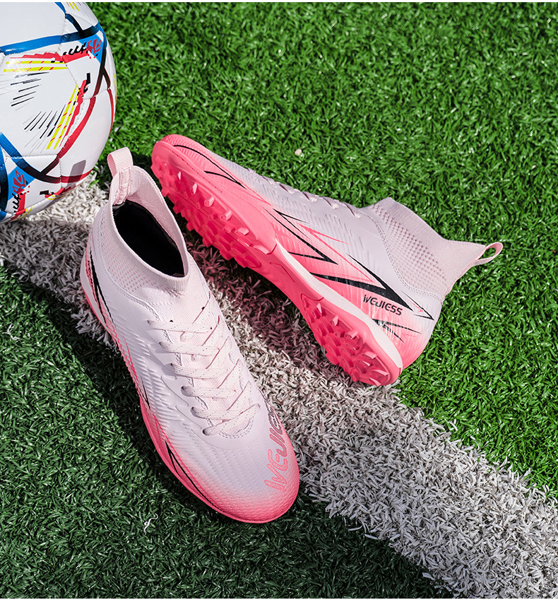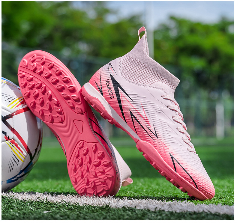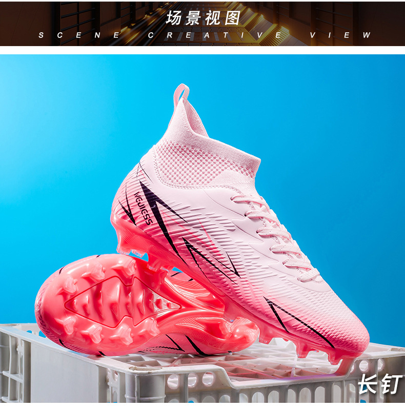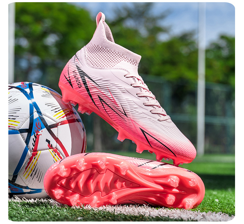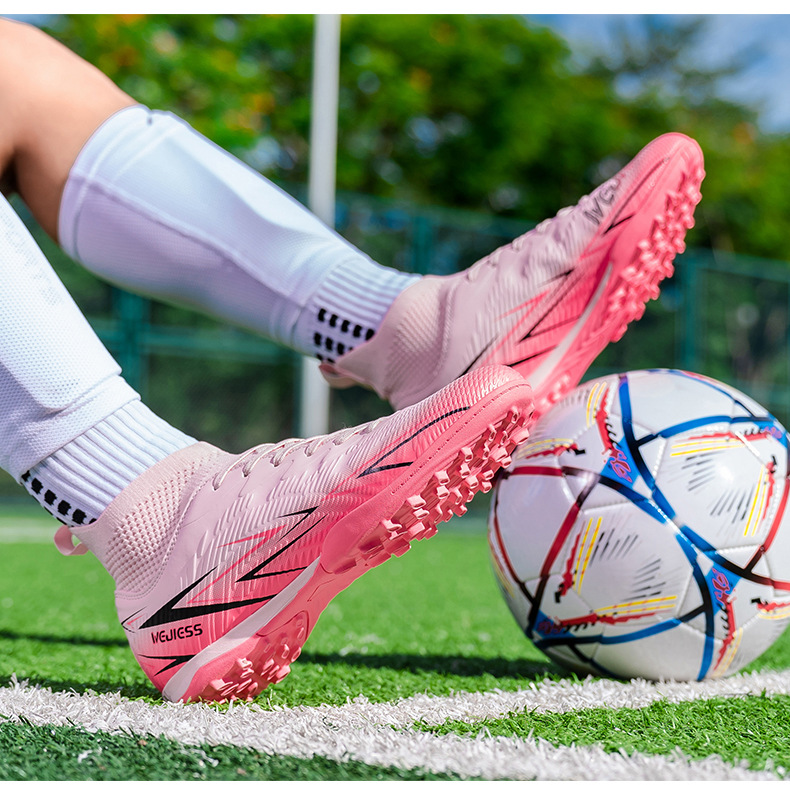 Nuevos zapatos de fútbol transfronterizos para hombres y mujeres de alto nivel estudiantes adultos competición del campus zapatos de clavos largos fábrica de zapatos de entrenamiento femenino