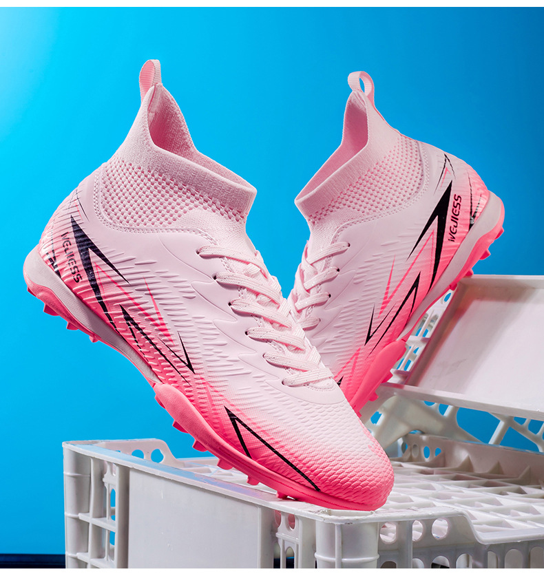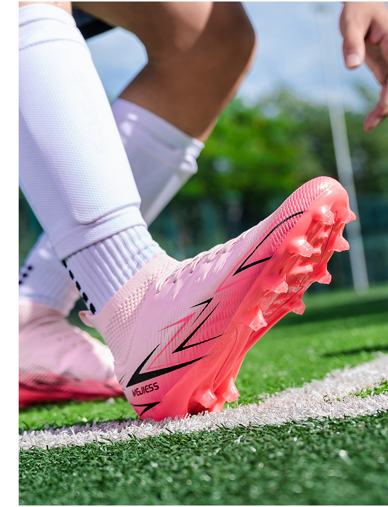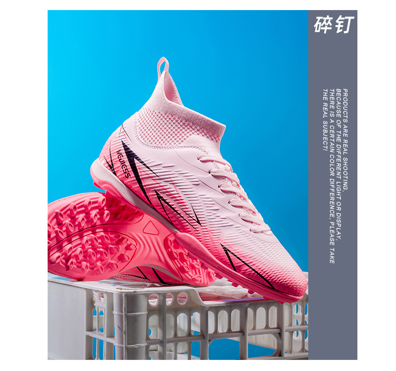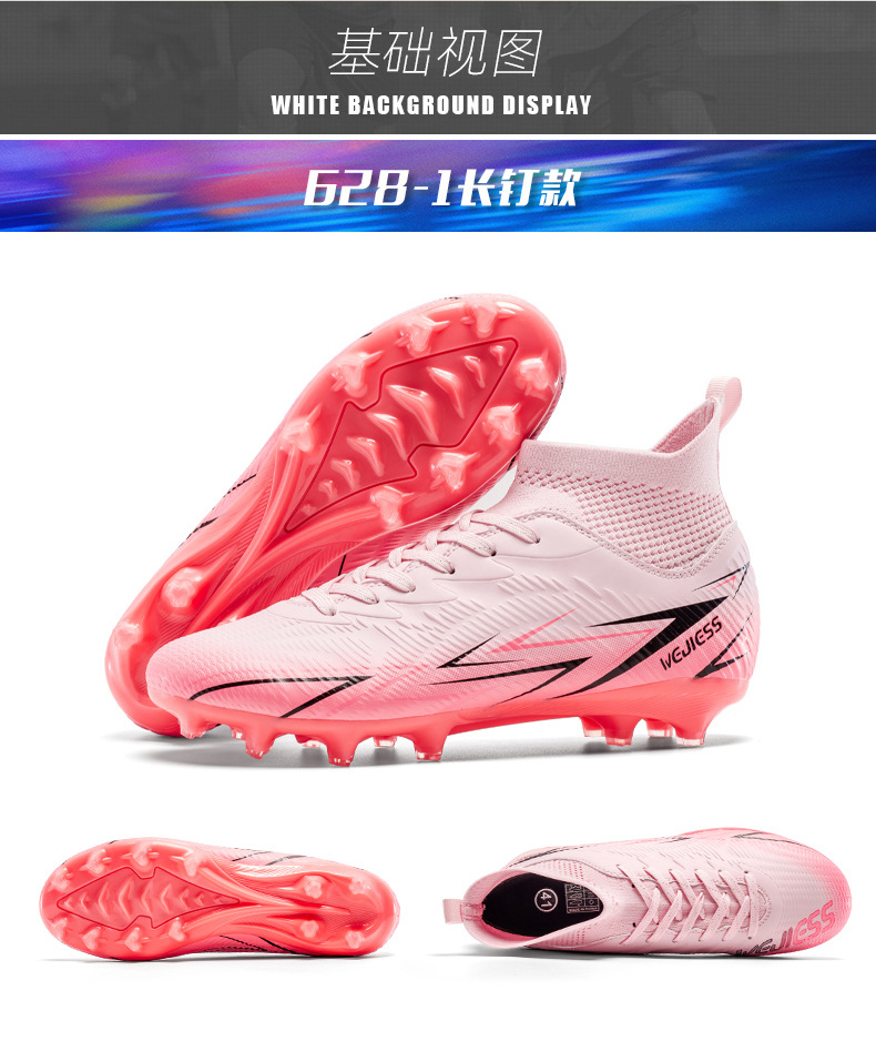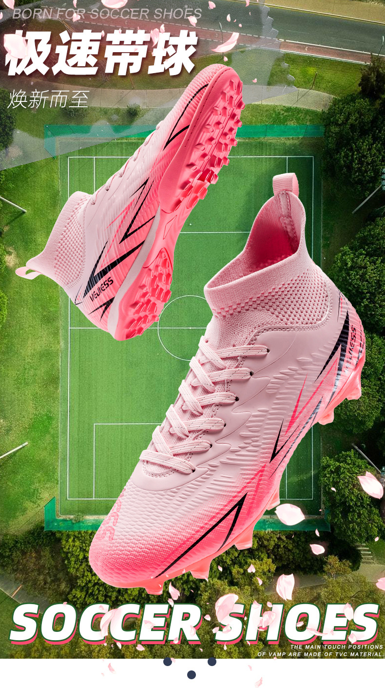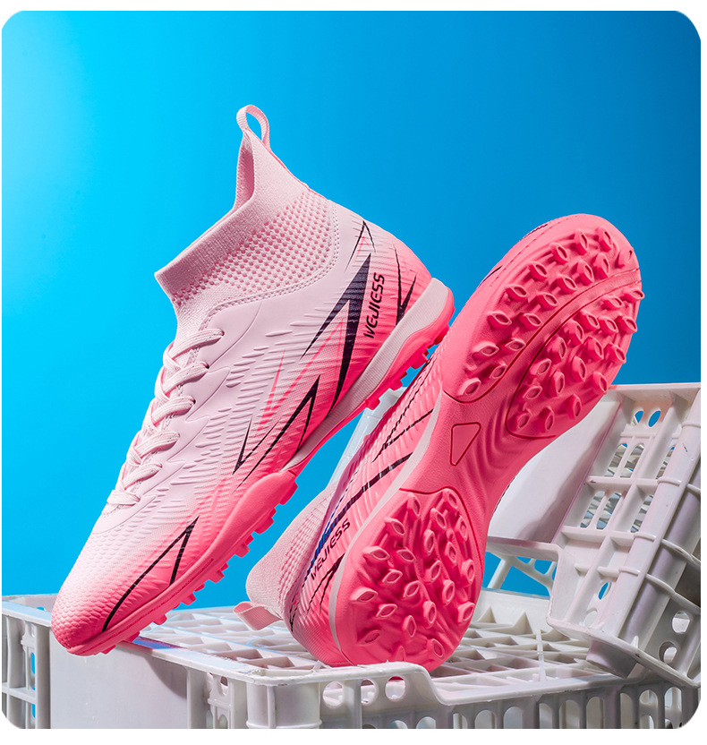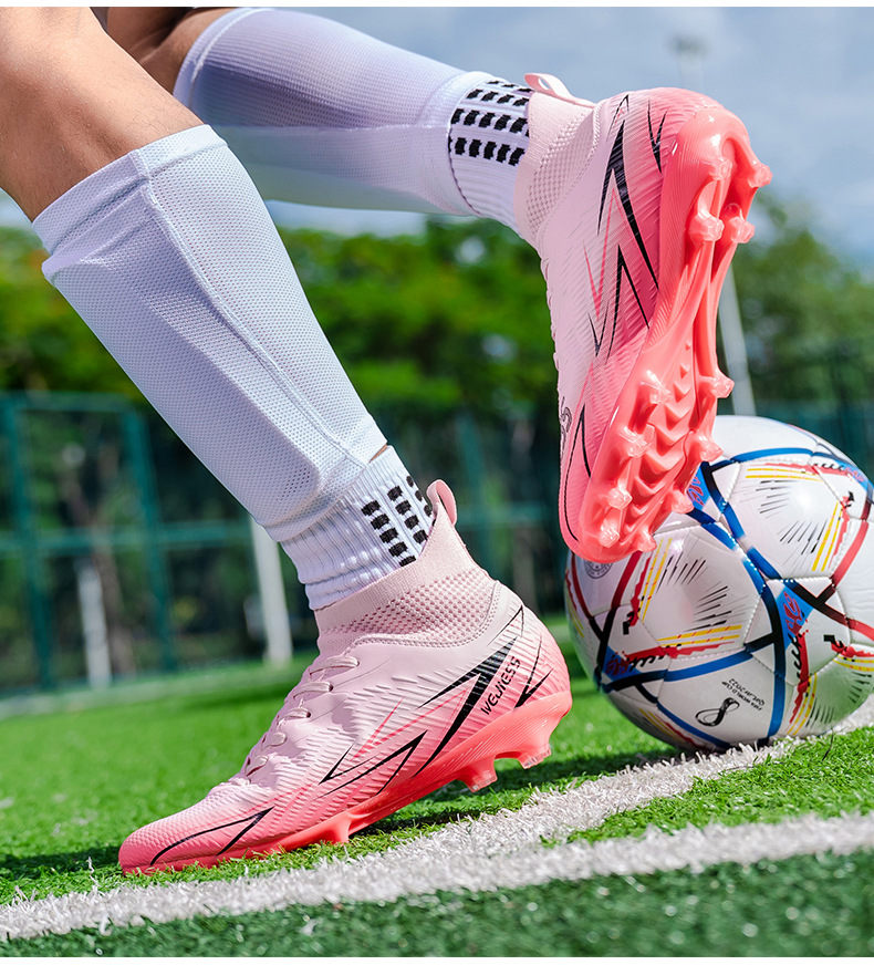 Nuevos zapatos de fútbol transfronterizos para hombres y mujeres de alto nivel estudiantes adultos competición del campus zapatos de clavos largos fábrica de zapatos de entrenamiento femenino