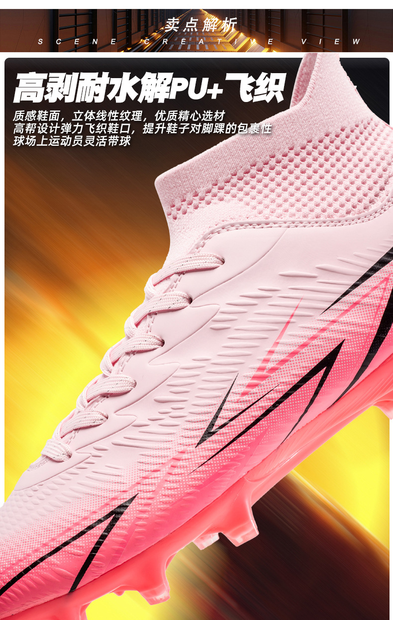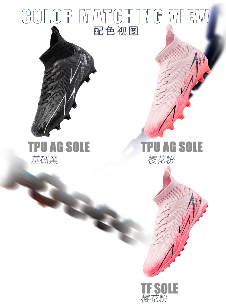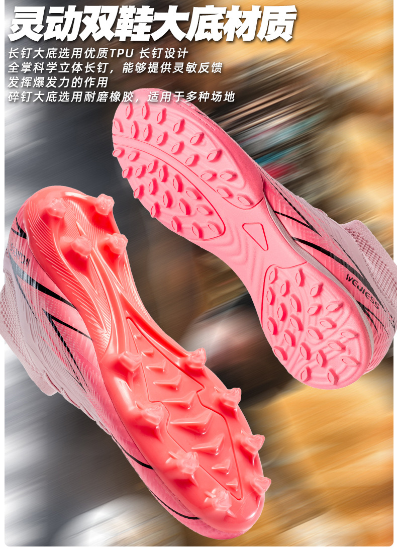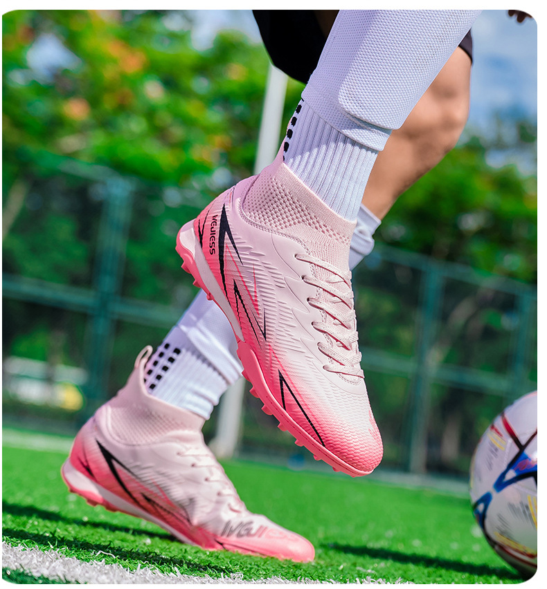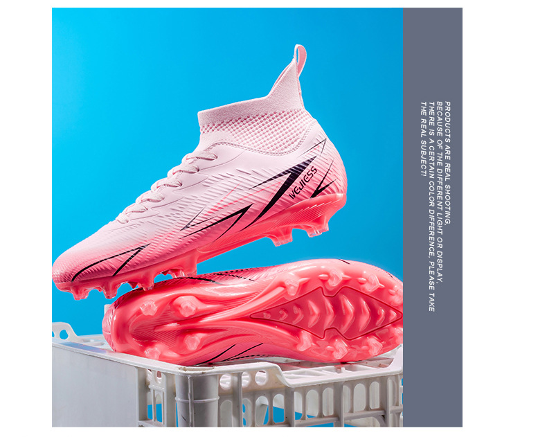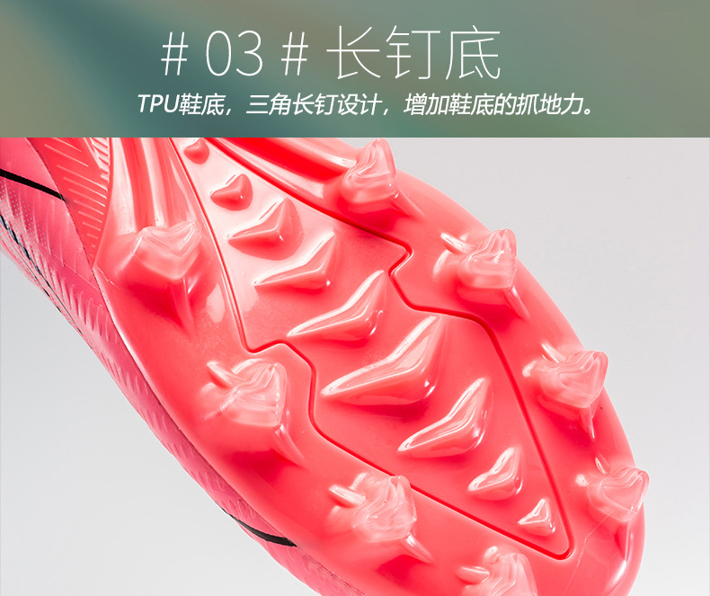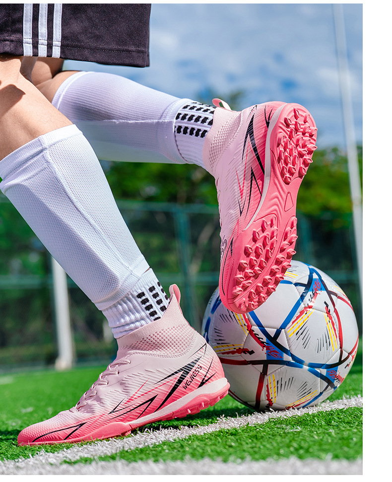 Nuevos zapatos de fútbol transfronterizos para hombres y mujeres de alto nivel estudiantes adultos competición del campus zapatos de clavos largos fábrica de zapatos de entrenamiento femenino