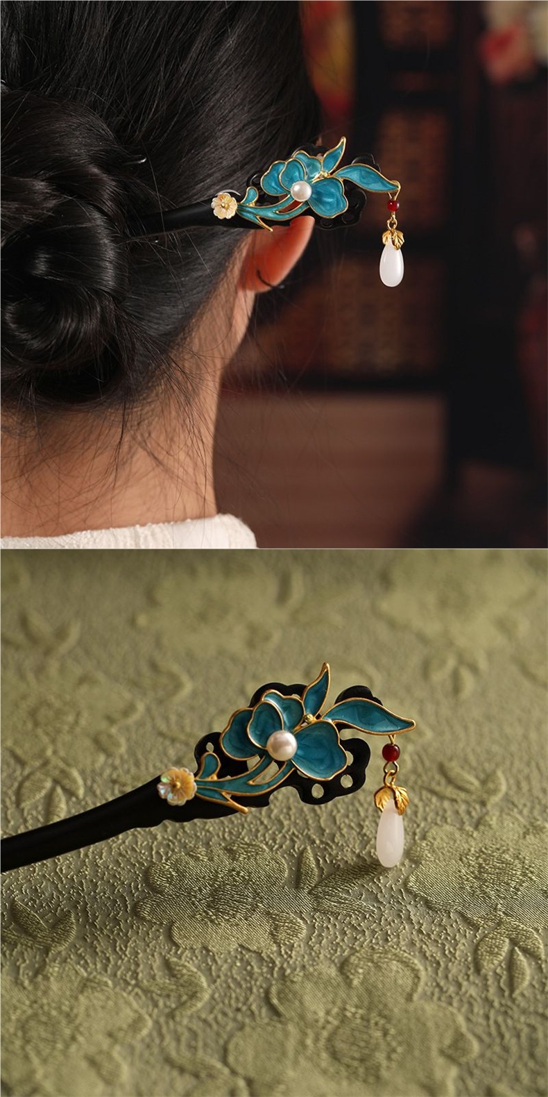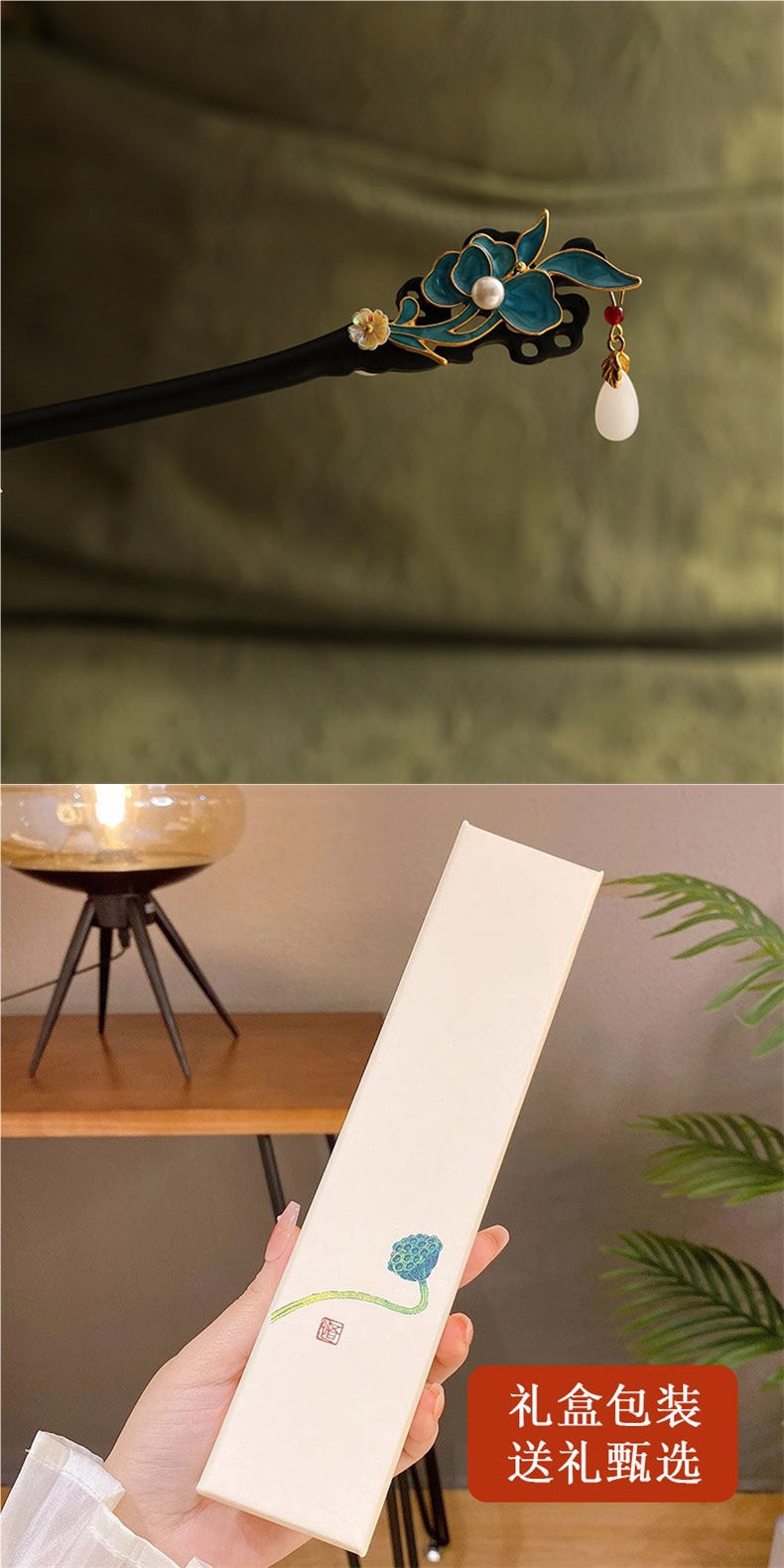 | Color | Colgante de perlas blancas + flores de sándalo pinza de pelo + caja de regalo - tarjeta de felicitación |