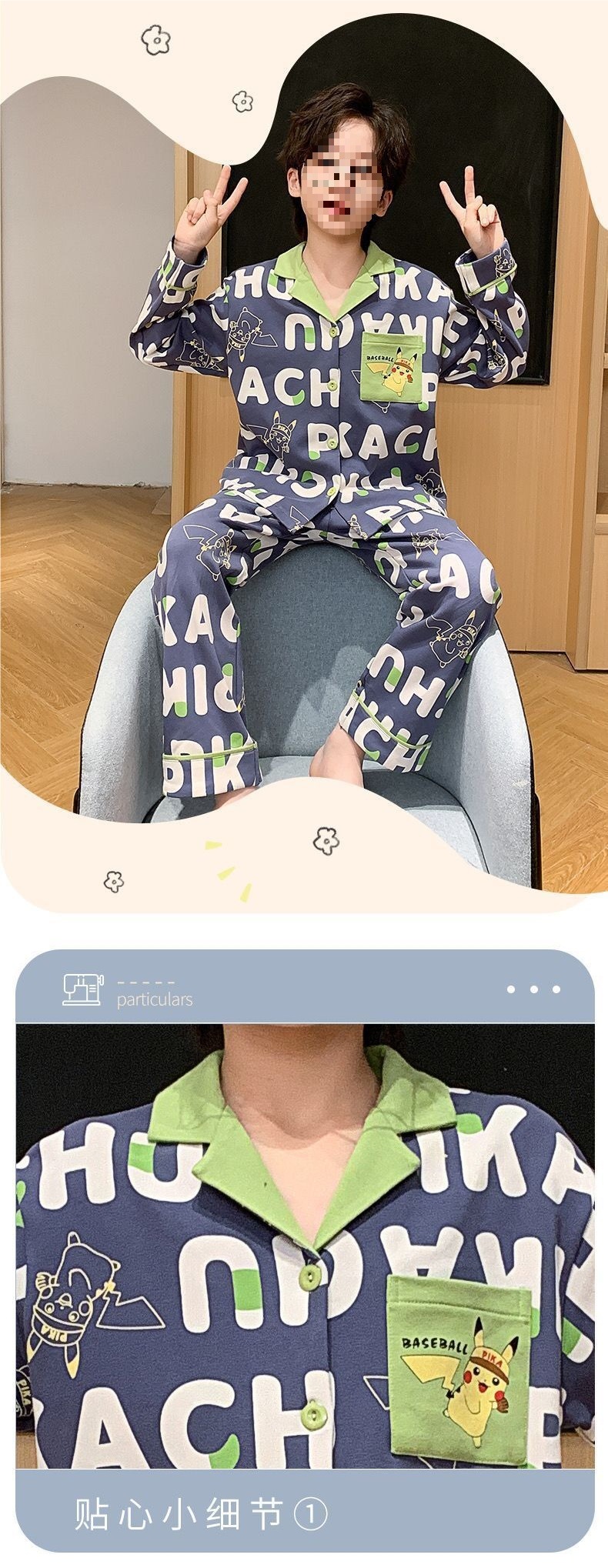 Primavera y otoño 2025 nuevo pijama de niño Cardigan manga larga primavera y otoño juvenil ropa de hogar set de algodón nublado