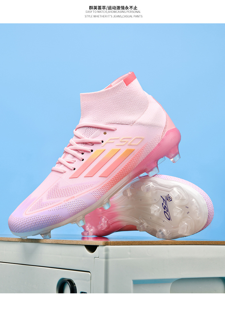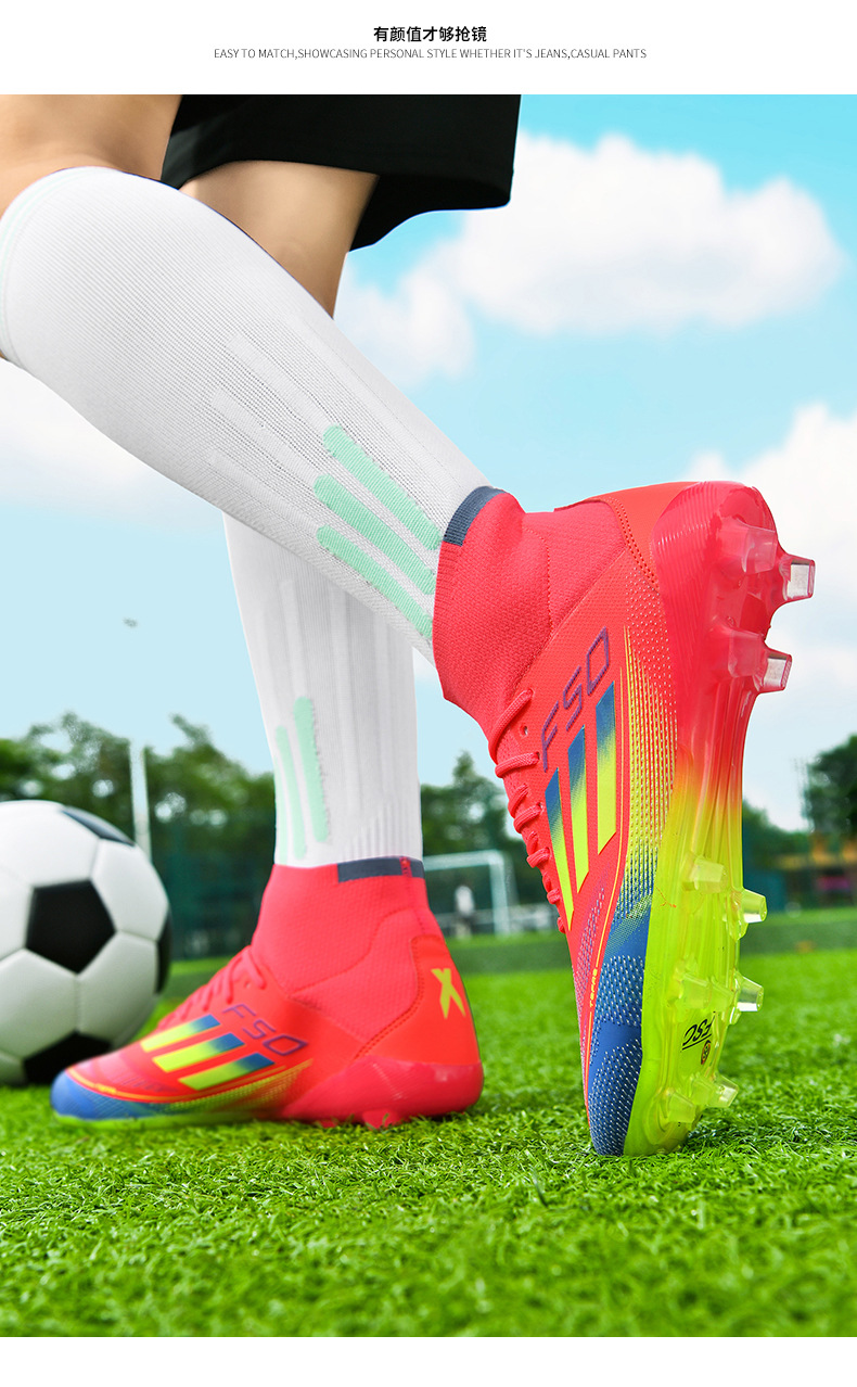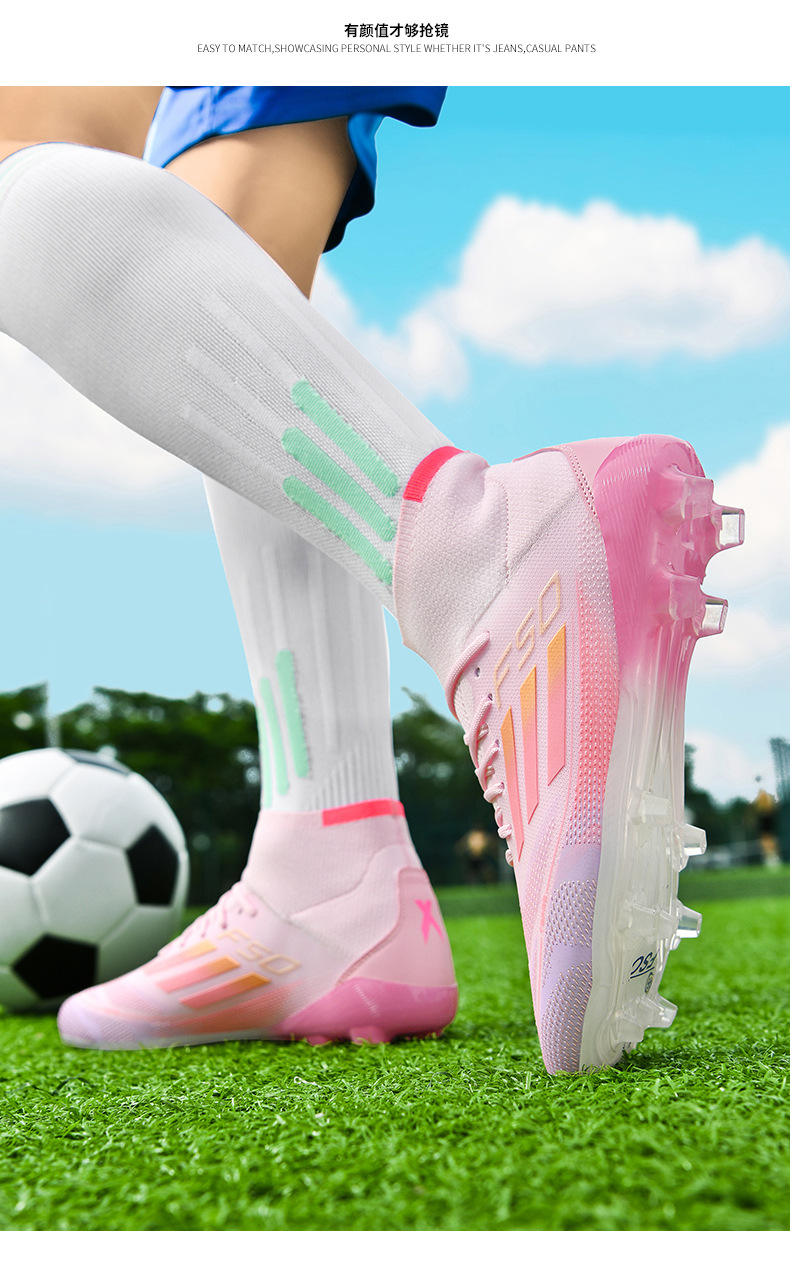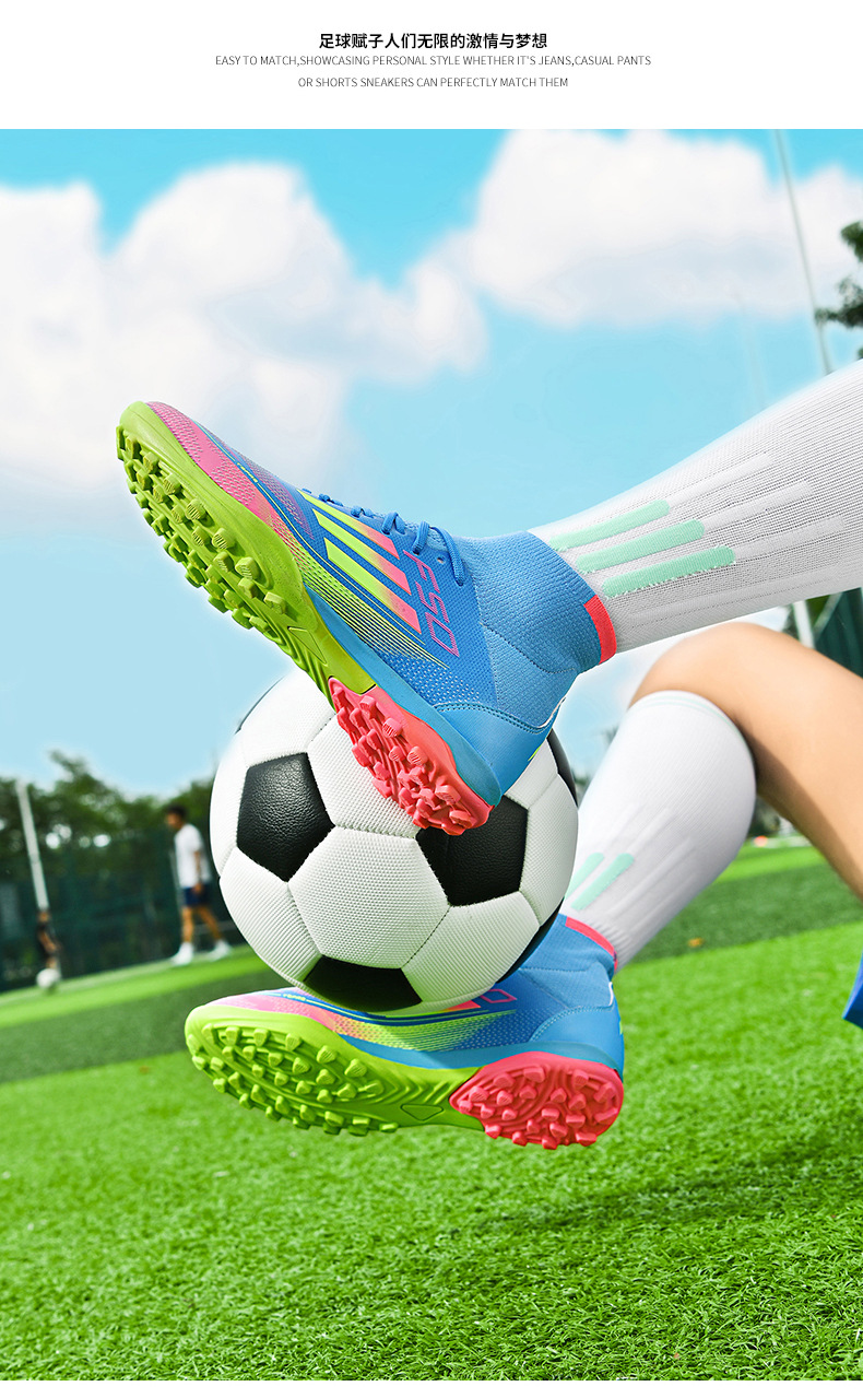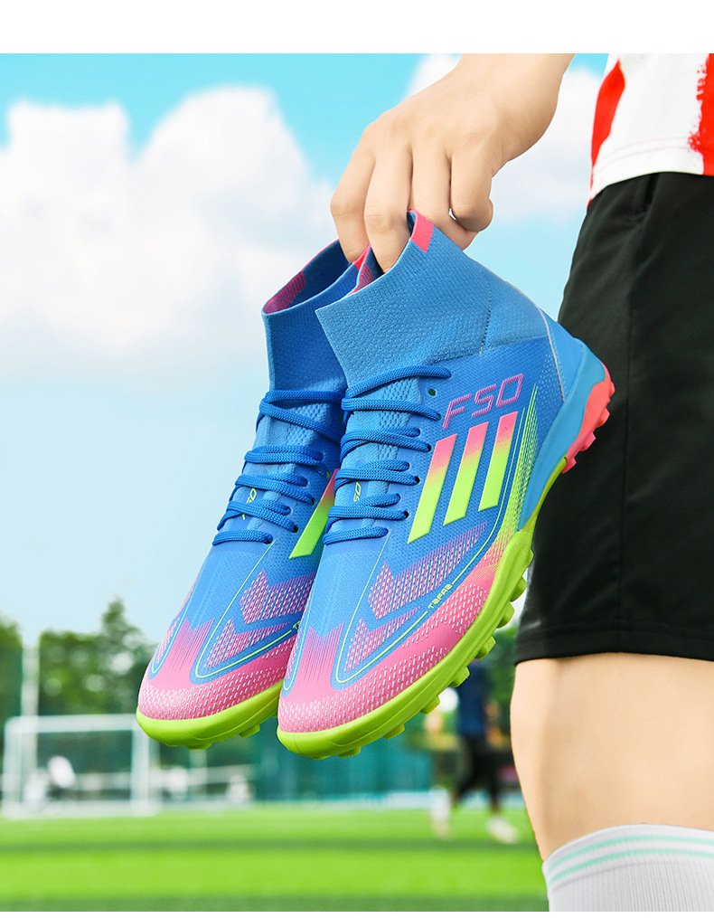2025 zapatos de fútbol nuevos jóvenes hombres y mujeres antideslizantes nuevos transfronterizos AG clavos largos césped estudiantes fábrica de comercio exterior