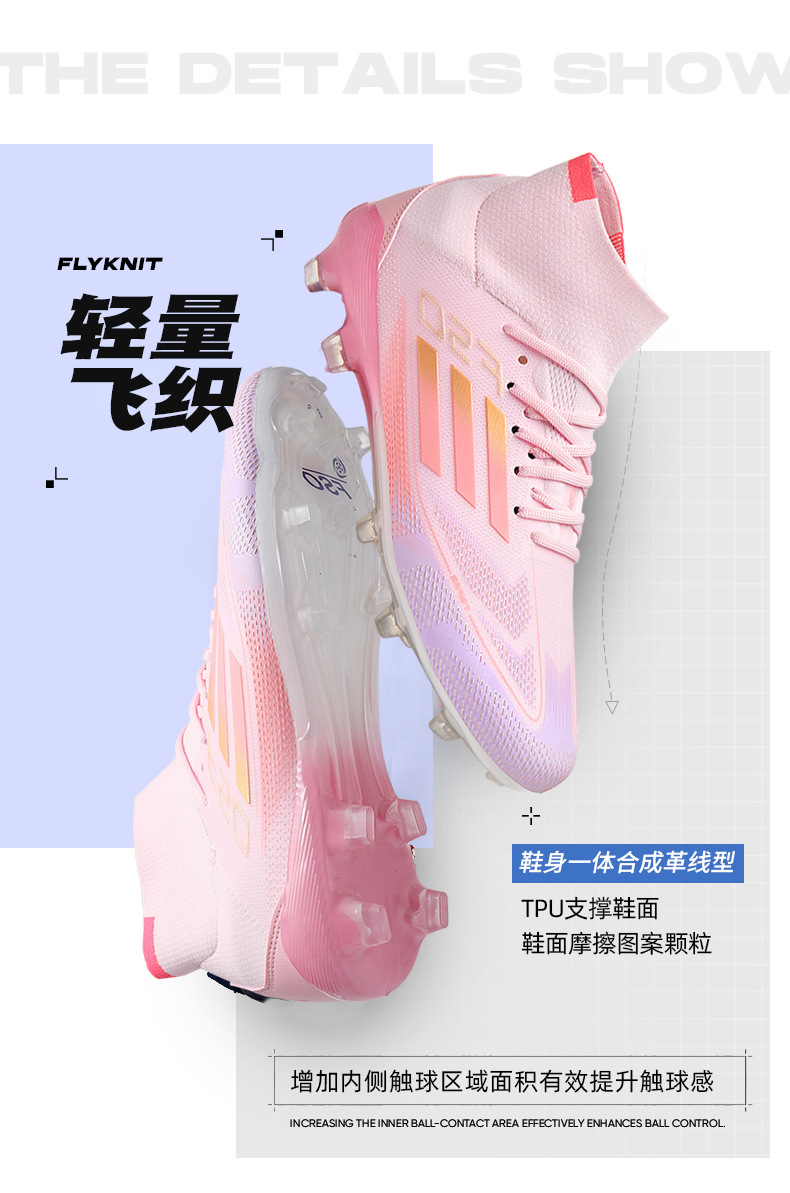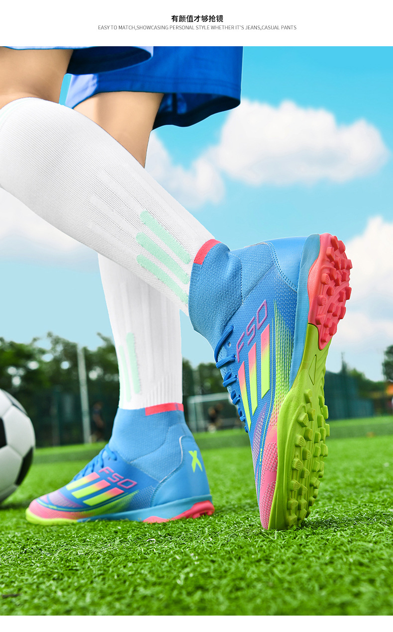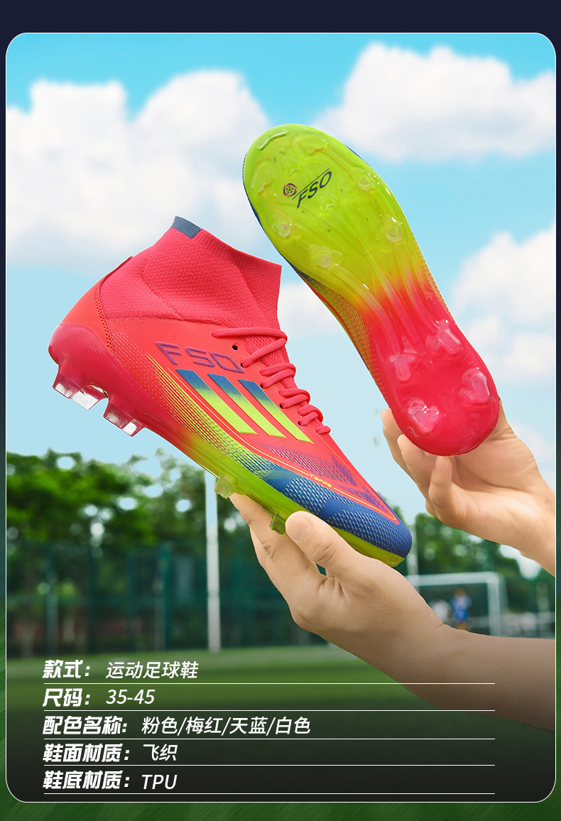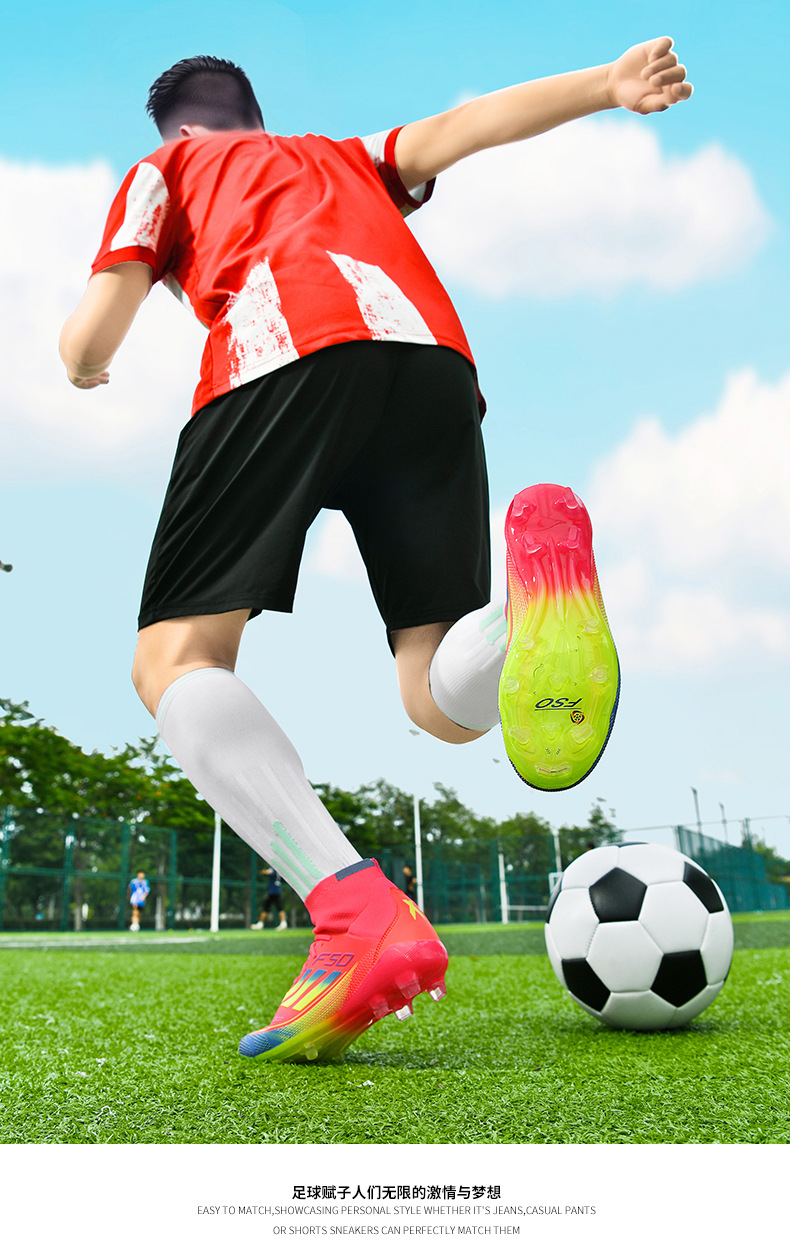 2025 zapatos de fútbol nuevos jóvenes hombres y mujeres antideslizantes nuevos transfronterizos AG clavos largos césped estudiantes fábrica de comercio exterior