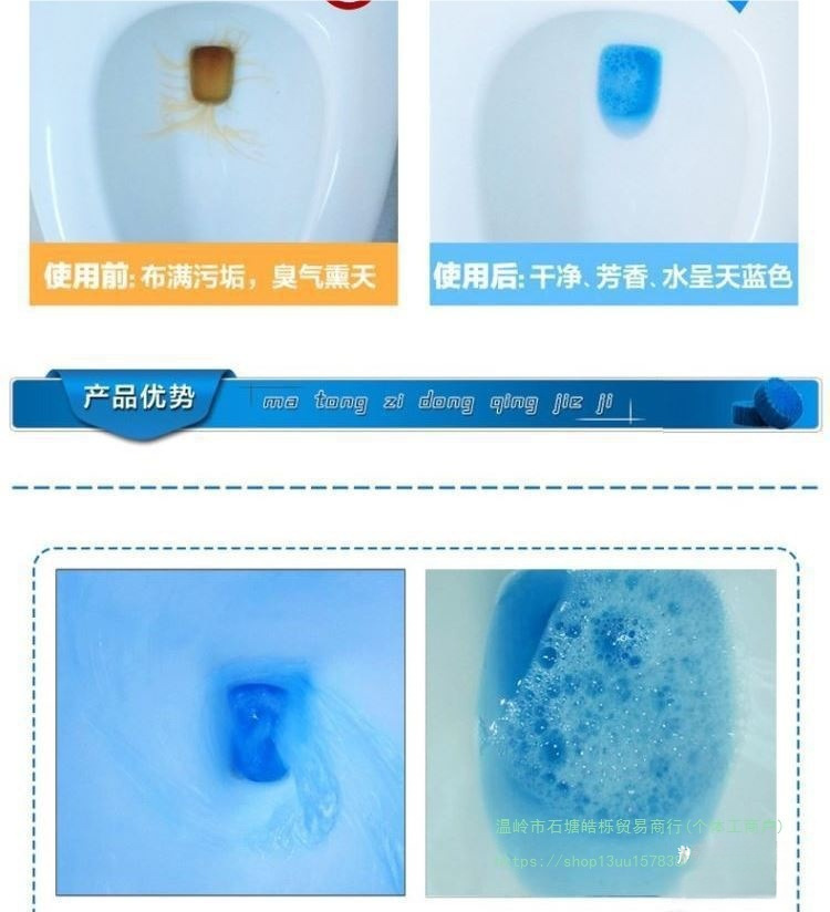 Burbuja azul limpia el inodoro, agua limpia, inodoro limpio, burbuja de cesta limpia, líquido lateral desodorante