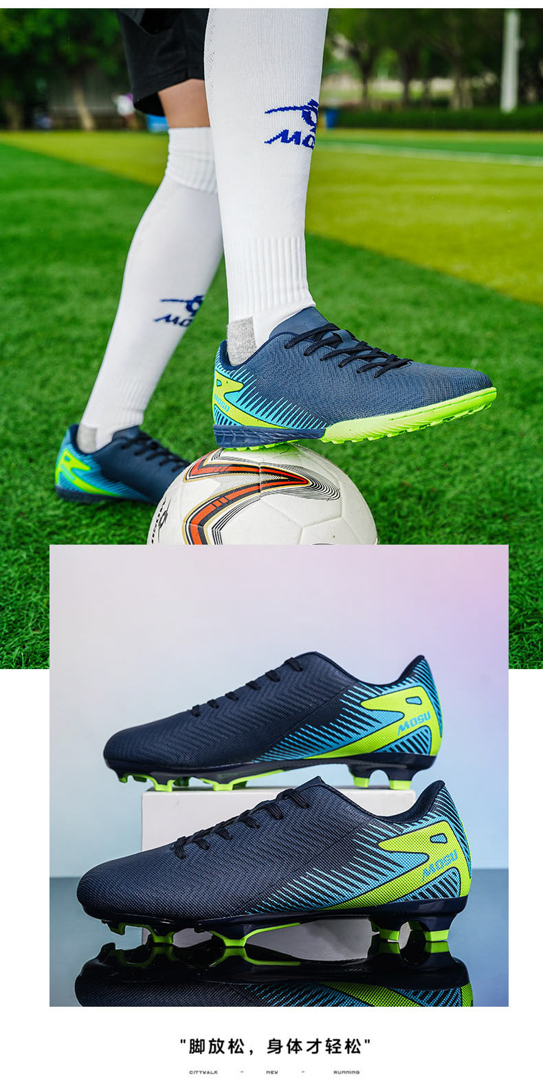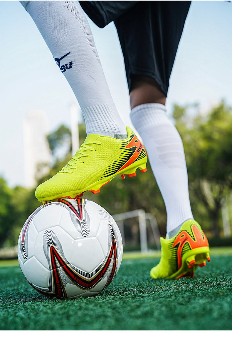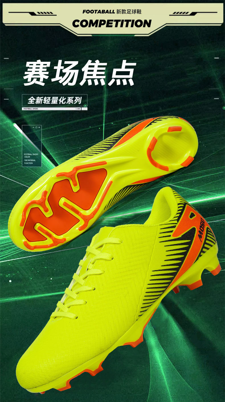 2025 nuevo transfronterizo hombre y mujer largo clavos de fútbol juvenil competición de zapatos de fútbol fábrica de ventas directas comercio exterior