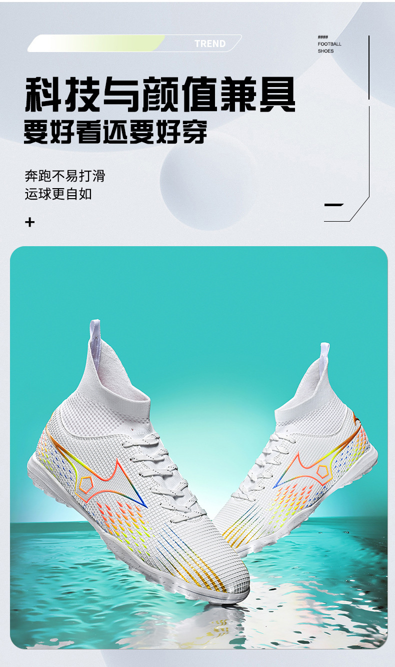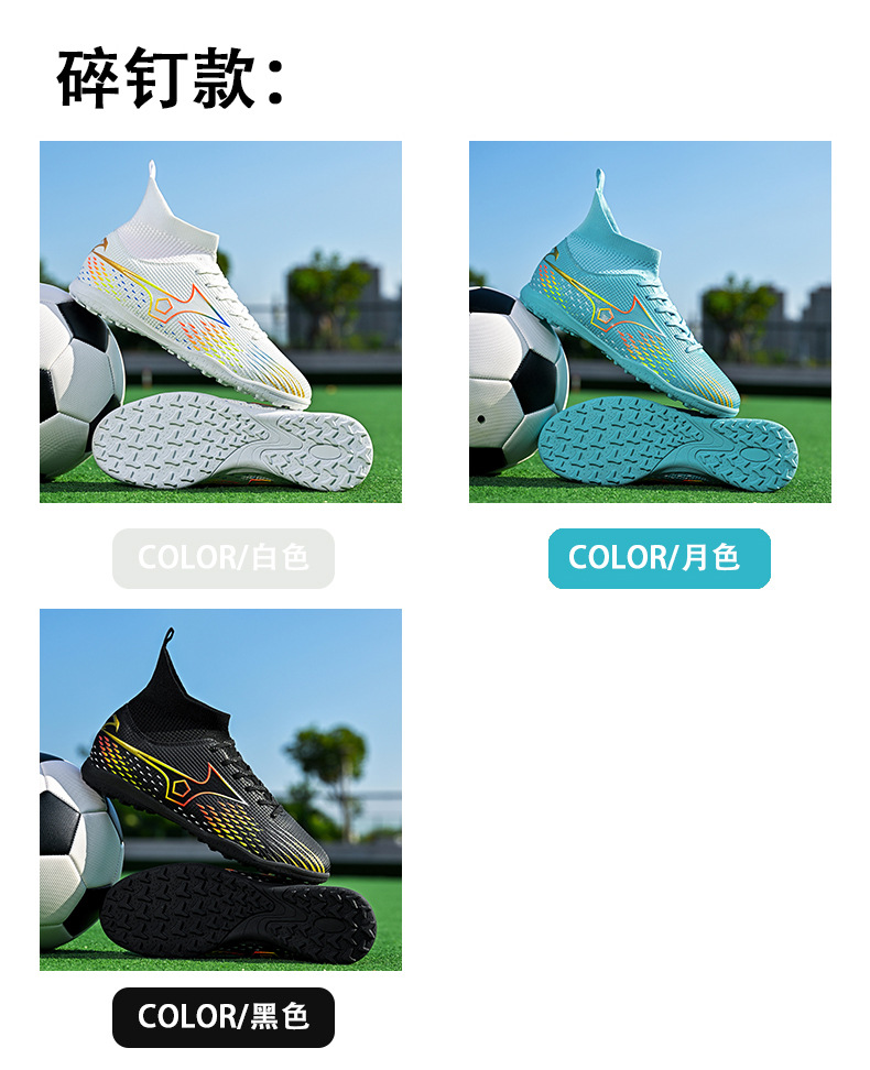 Nuevos zapatos de fútbol transfronterizos para hombres y mujeres de alto nivel para estudiantes adultos competir en el campus zapatos de entrenamiento de clavos rotos en stock