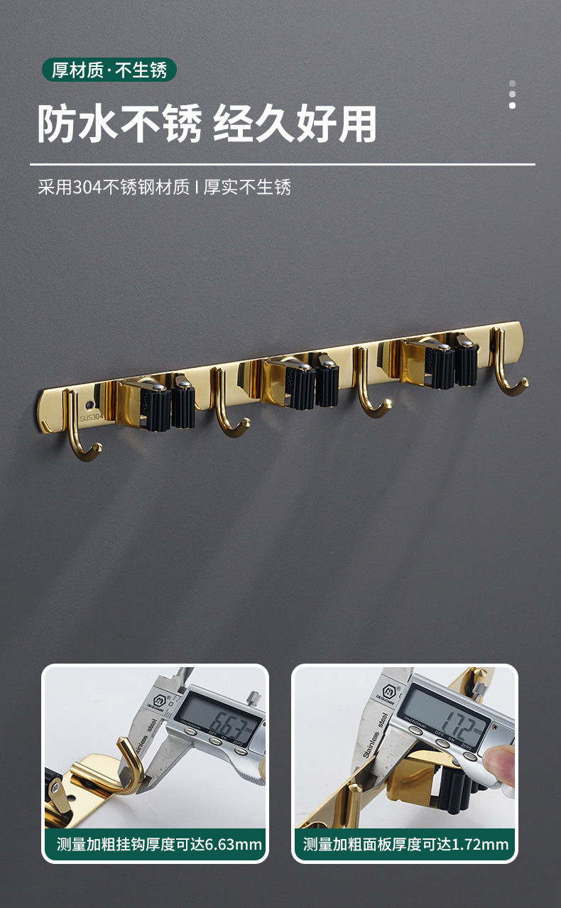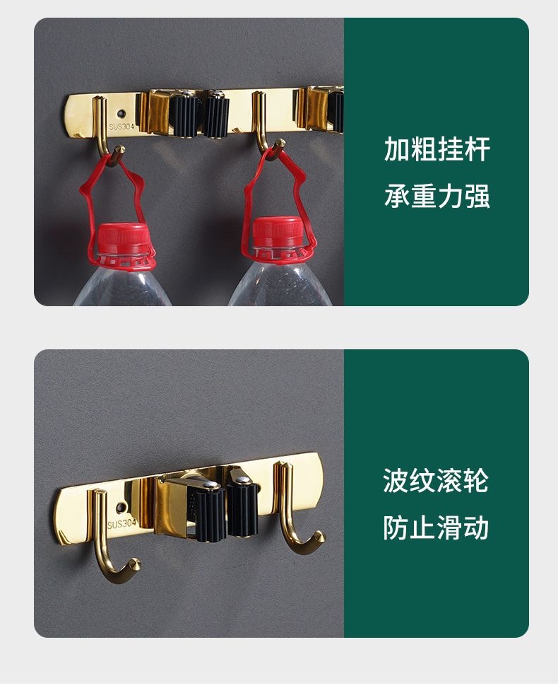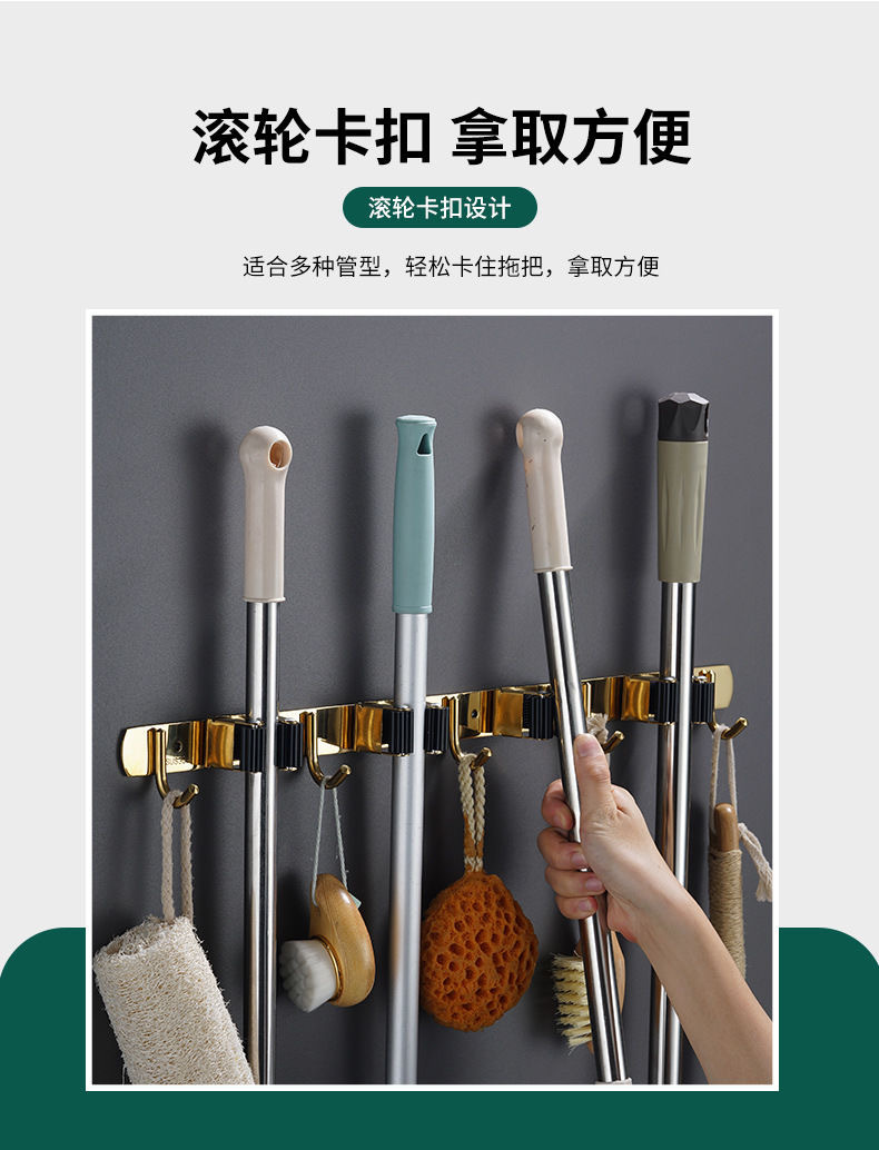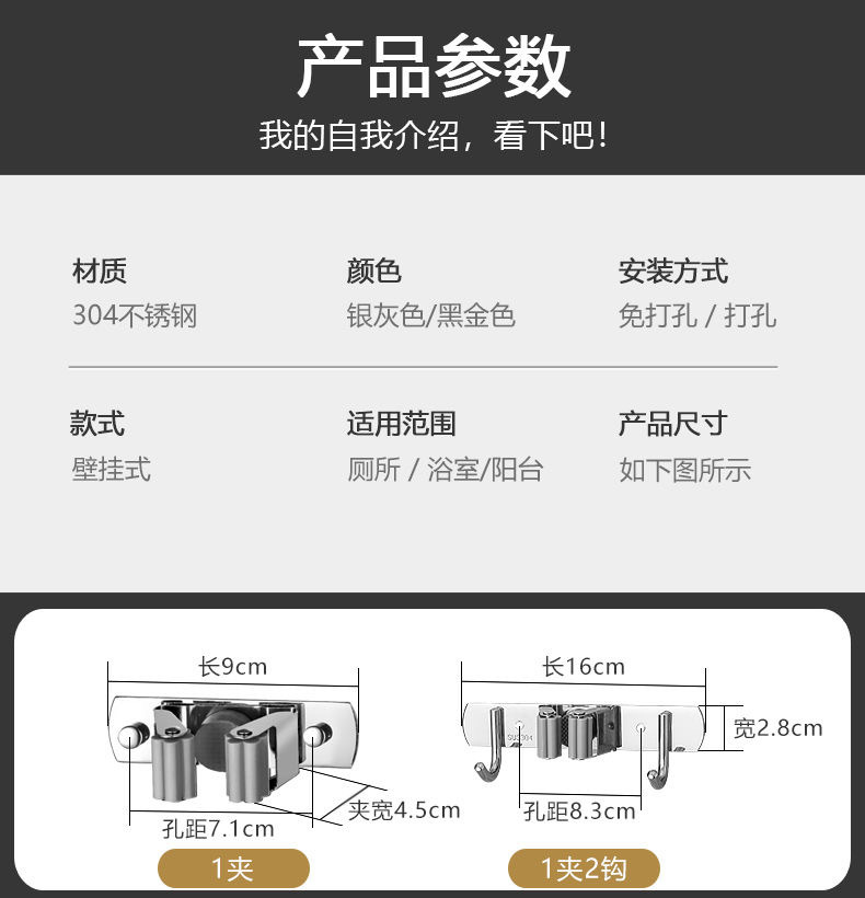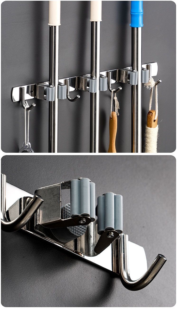 Acero inoxidable sin perforación escoba trapeador clip de pared tipo cocina de baño clip de almacenamiento trapeador gancho de carga