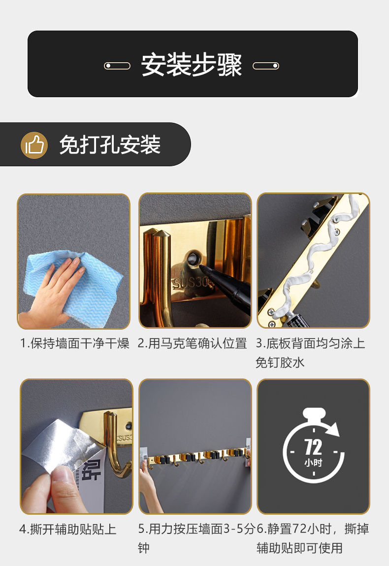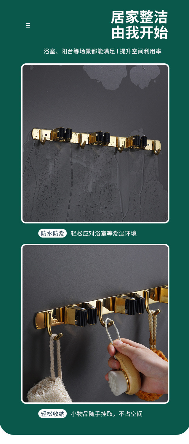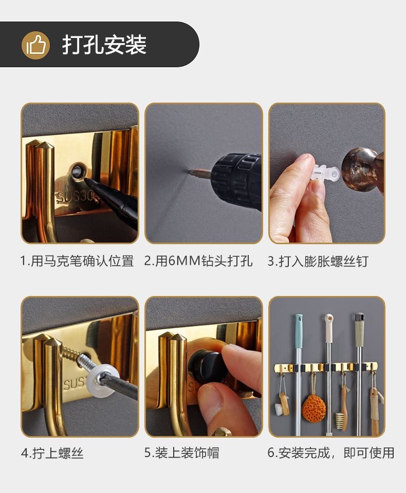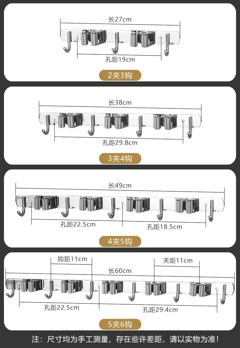 Acero inoxidable sin perforación escoba trapeador clip de pared tipo cocina de baño clip de almacenamiento trapeador gancho de carga