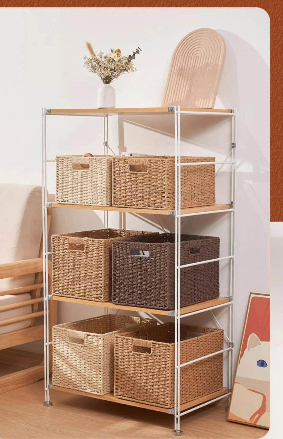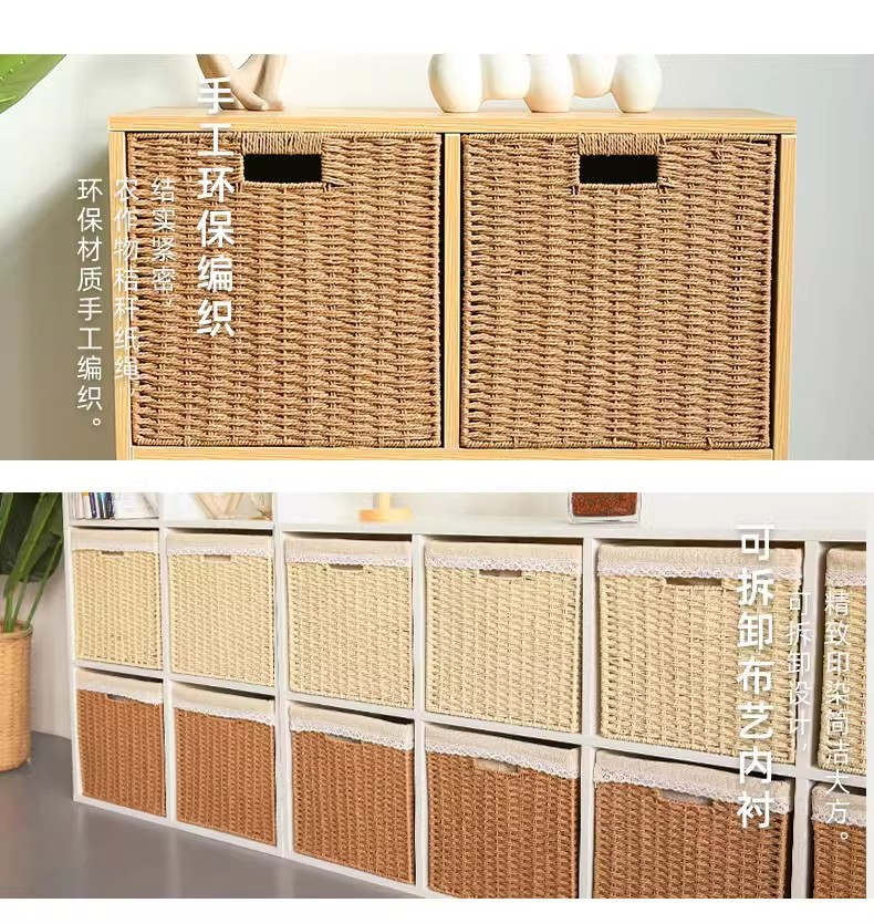Cesta de almacenamiento de tejido, gabinete de biblioteca, gabinete de televisión, caja de almacenamiento, armario de almacenamiento de caña, caja de almacenamiento de juguetes, cesta de almacenamiento