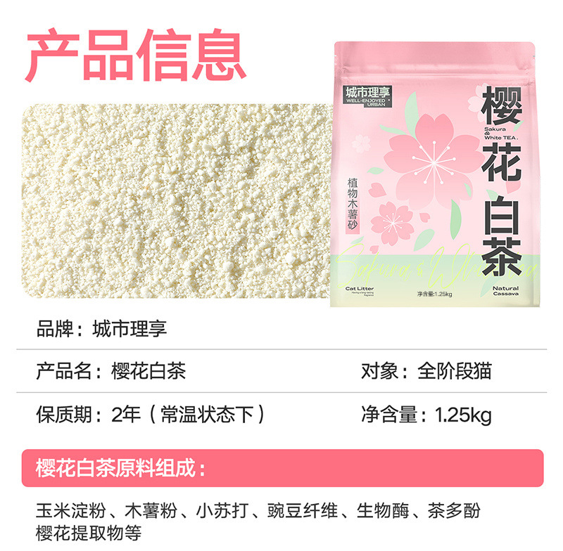 Sandia de yuca para gatos, té blanco de cereza desodorizante, arena de gato sin polvo, arena de perla de coco