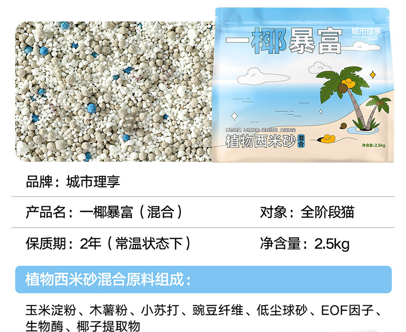 | Color | Desodorizador de arena de yuca perfumada sin contaminación |
