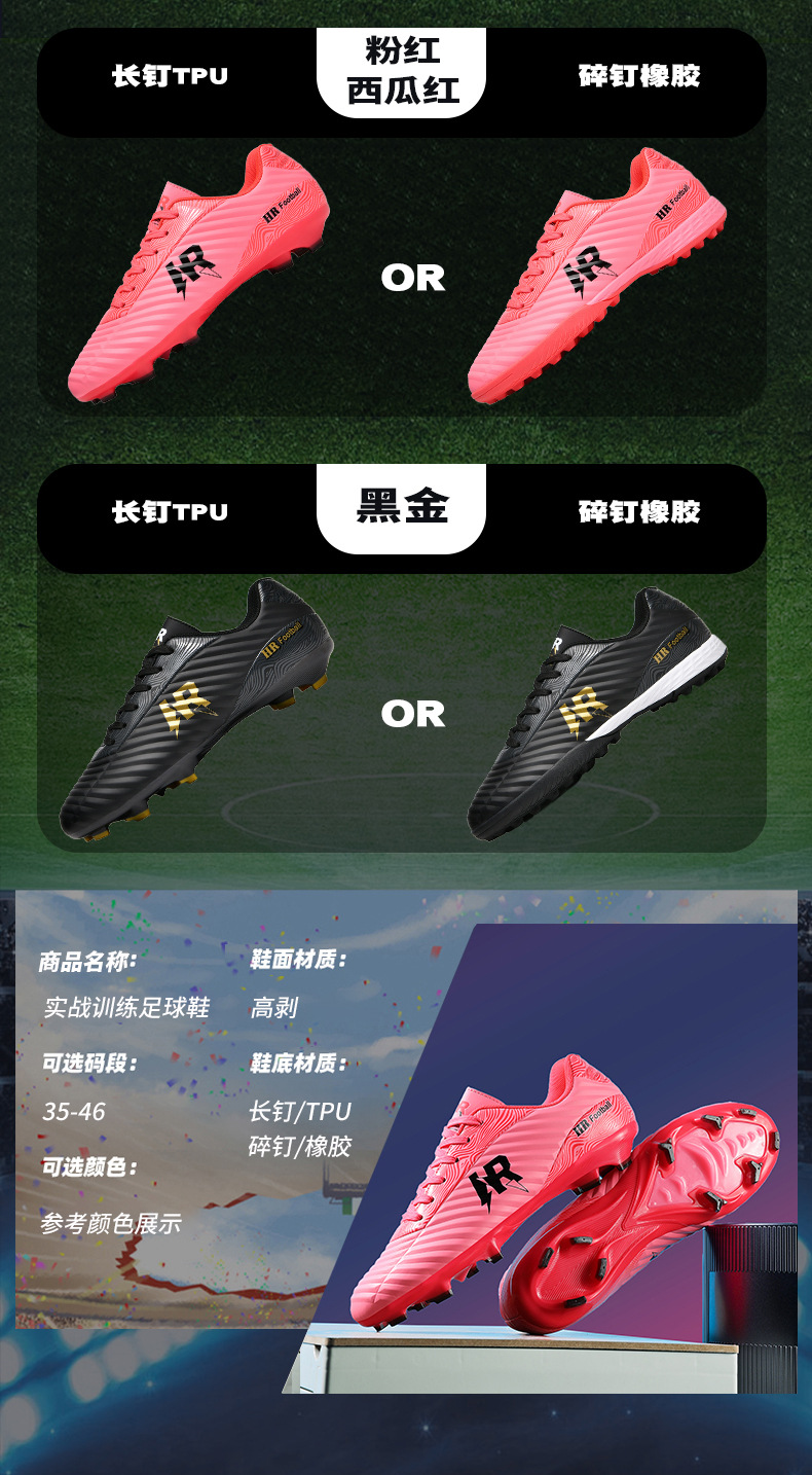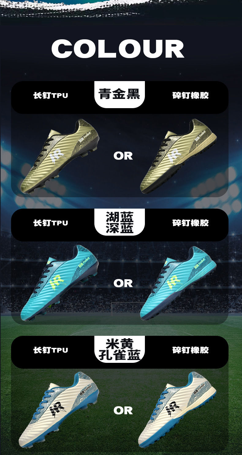 Zapatos de entrenamiento de clavos transfronterizos para hombres y mujeres, zapatos de fútbol juveniles de escuela secundaria, fábrica directa de fútbol