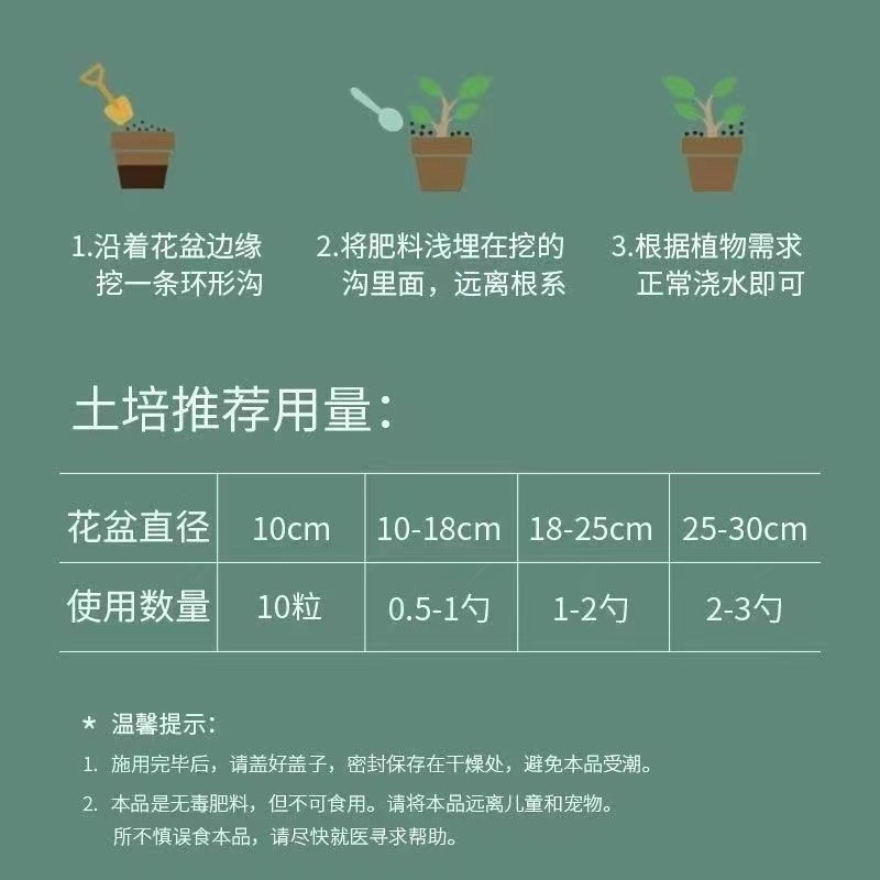 | Especificaciones de tamaño de partícula | Plant General (fertilizante compuesto) 5 jin [Limited 1 piece], Plant General (fertilizante compuesto) 250 g sin regalo, Plant General (fertilizante compuesto) 1 jin = 500 g, Plant General (fertilizante compuesto) 1.8 jin = 900 g, Plant General (fertilizante compuesto) 3 jin = 1500 g, Plant General (fertilizante compuesto) 5 jin = 2500 g, Plant General (fertilizante compuesto) 10 jin = 5000 g, Fertilizante compuesto soluble en agua general 1 jin = 500 g, 1,8 kg de fertilizante compuesto soluble en agua general = 900 g, 3 kg de fertilizante compuesto soluble en agua general = 1500 g, 5 kg de fertilizante compuesto soluble en agua general = 2500 g, 10 kg de fertilizante compuesto soluble en agua general = 5000 g, 1 kg de fertilizante compuesto de liberación sostenida de nutrientes completos = 500 g, 1,8 kg de fertilizante compuesto de liberación sostenida de nutrientes completos = 900 g, 3 kg de fertilizante compuesto de liberación sostenida de nutrientes completos = 1500 g, 5 kg de fertilizante compuesto de liberación sostenida de nutrientes completos = 2500 g, Fertilizante compuesto de liberación lenta de nutrientes completos 10 kg = 5000 g |