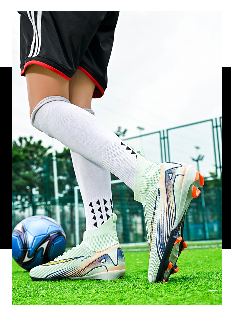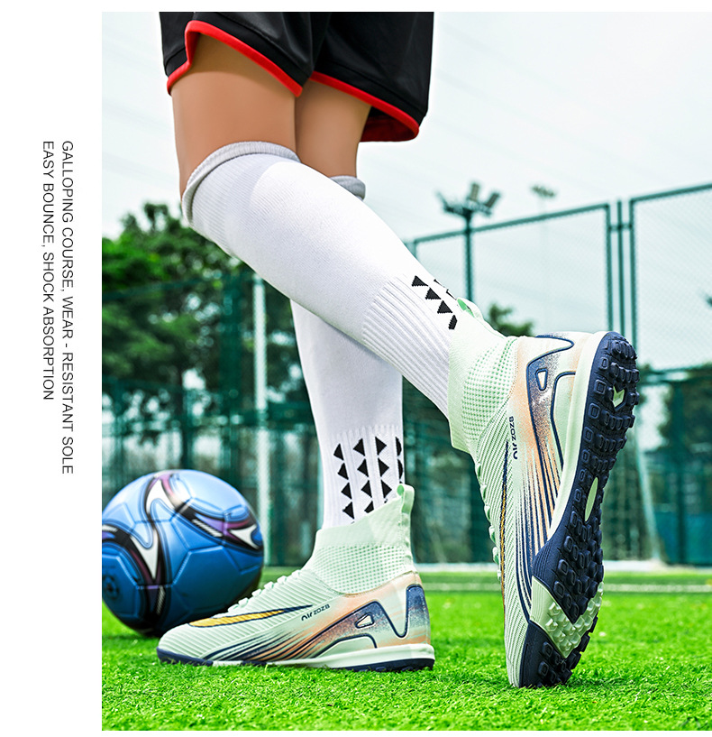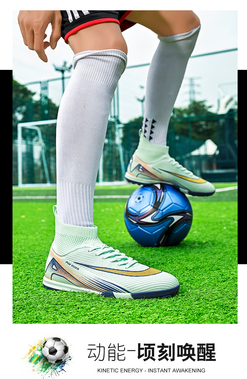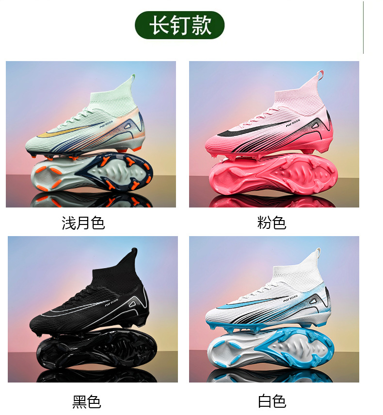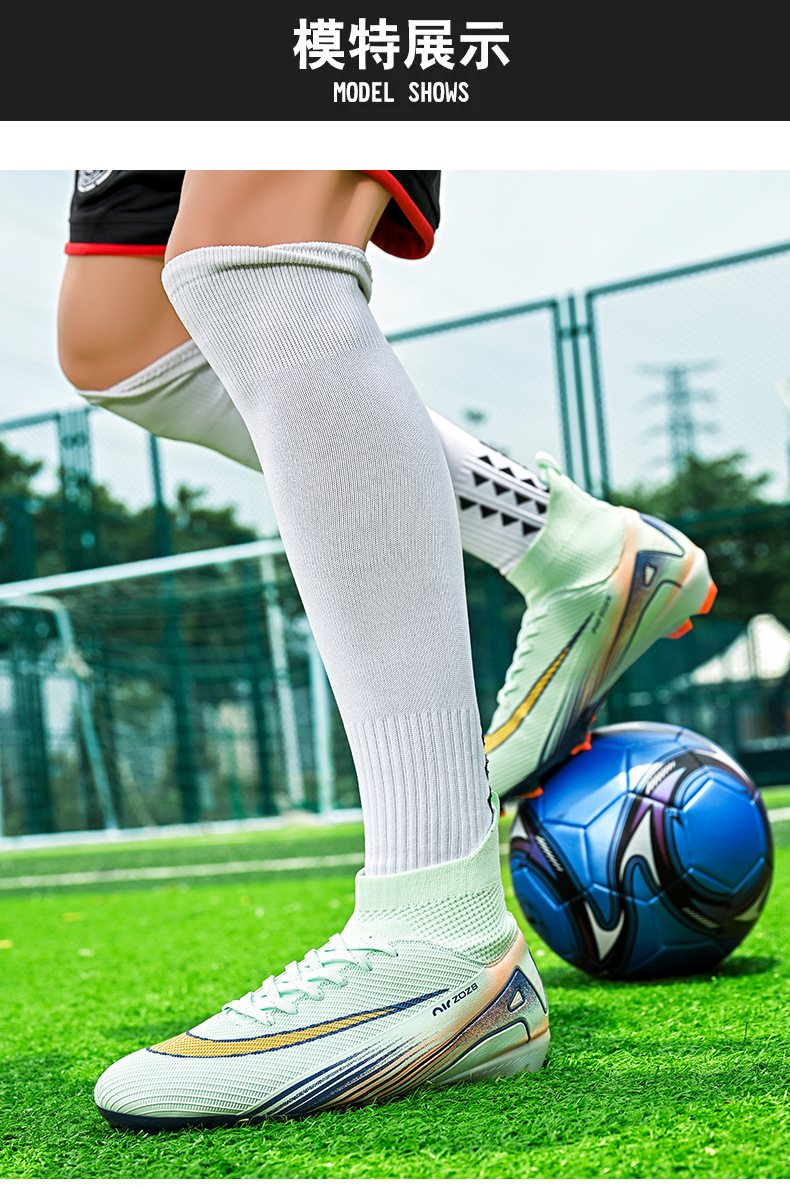 2025 nuevos zapatos de fútbol transfronterizos largos clavos altos zapatos de entrenamiento deportivo transpirables para hombres y mujeres fabricantes de comercio exterior