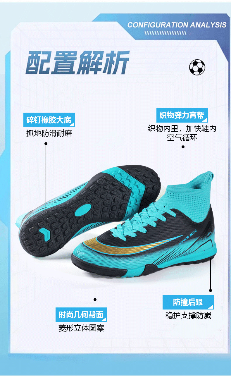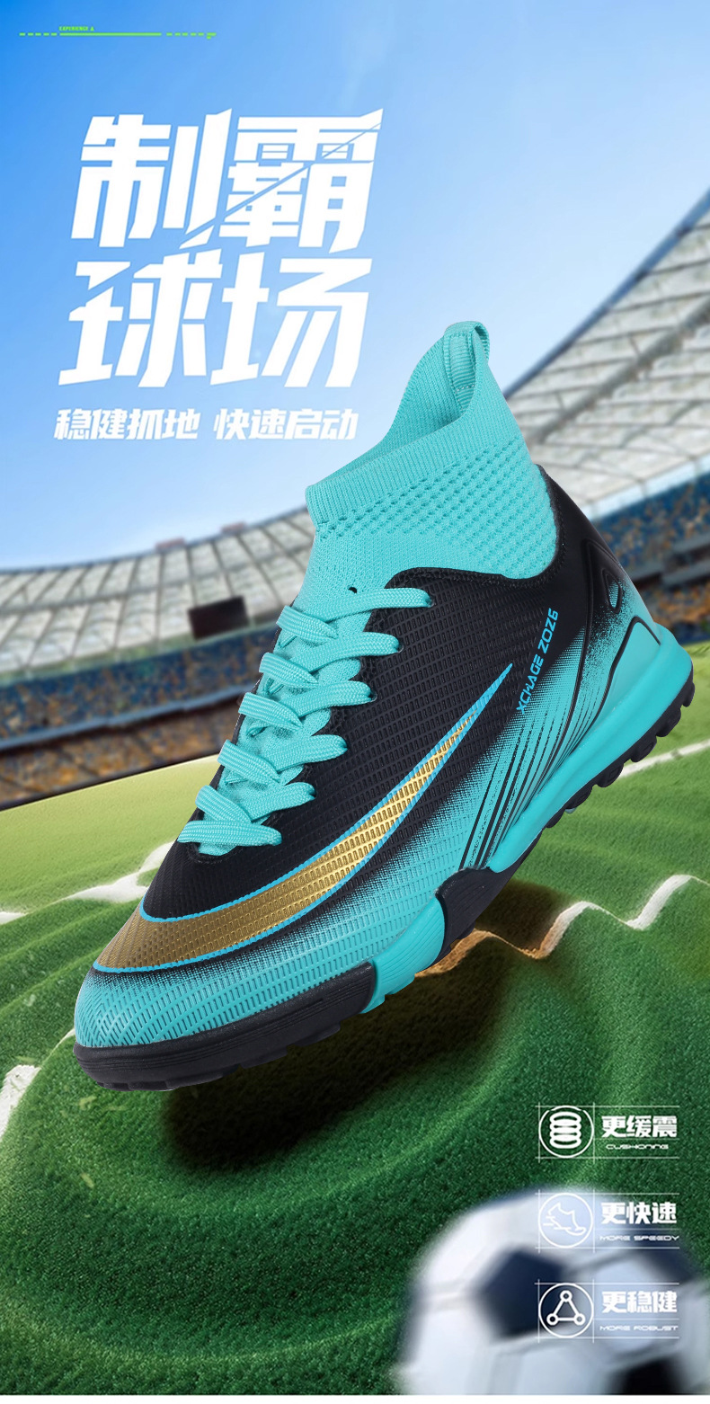 Fábrica de zapatos de fútbol, zapatos de entrenamiento anti-derrapante para niños, zapatos de entrenamiento de estudiantes de moda transpirables