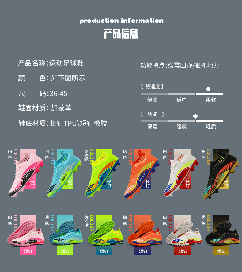 2025 nuevo clavos largos transfronterizos bajos zapatos de entrenamiento juvenil para hombres y mujeres zapatos de fútbol fábrica de comercio exterior