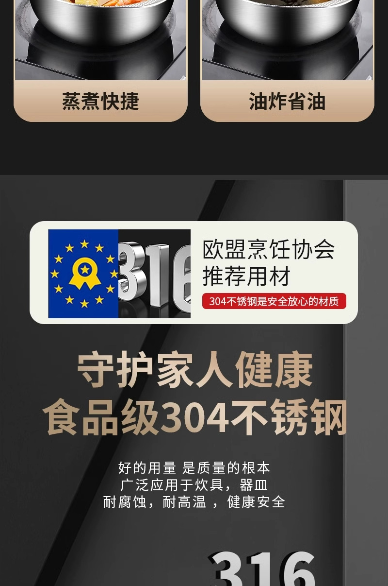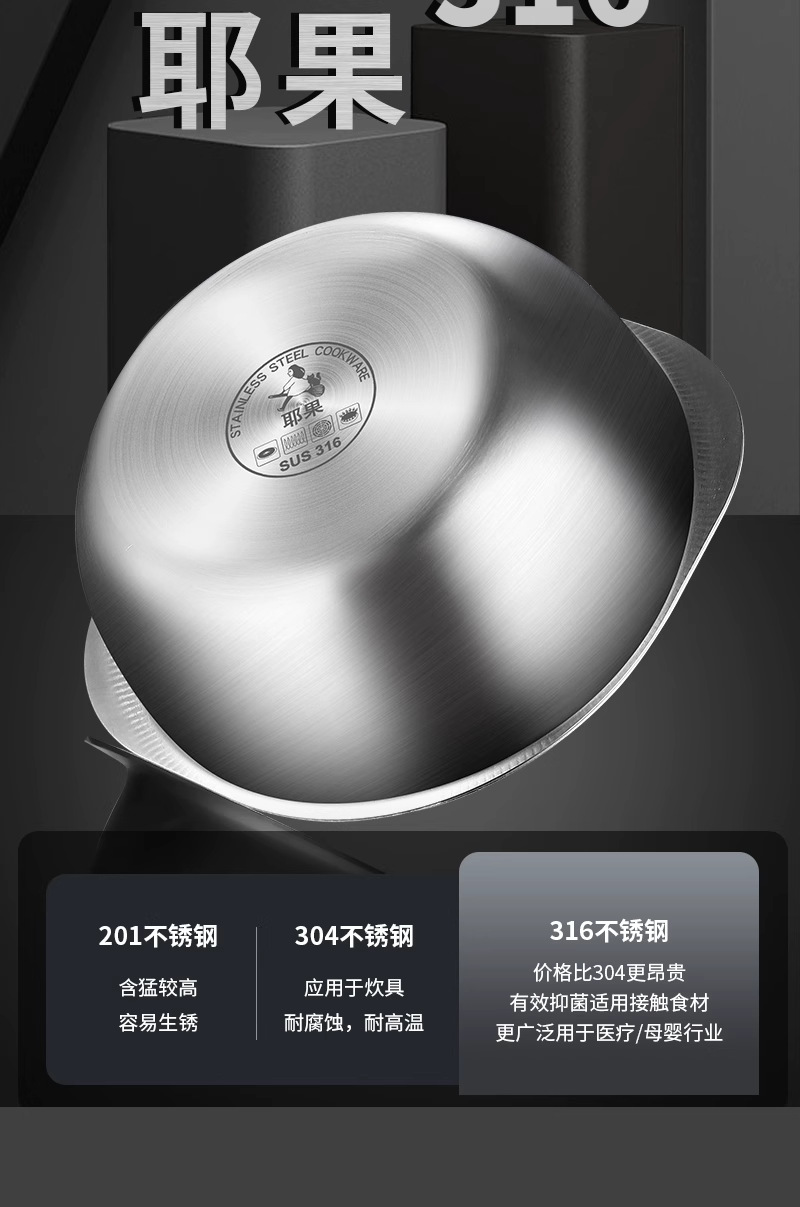 Panal de acero inoxidable 316 olla pequeña sartén antiadherente de doble oído tazón de fideos instantáneos suplemento alimenticio tazón para hornear tazón pequeño Cocina de Inducción adecuado