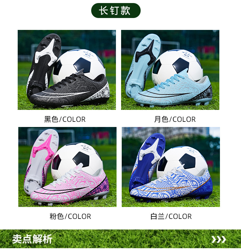 2025 zapatos de fútbol de corte bajo transfronterizos al por mayor para hombres y mujeres zapatillas profesionales de tacos largos zapatos de entrenamiento de tacos rotos zapatos de tacos
