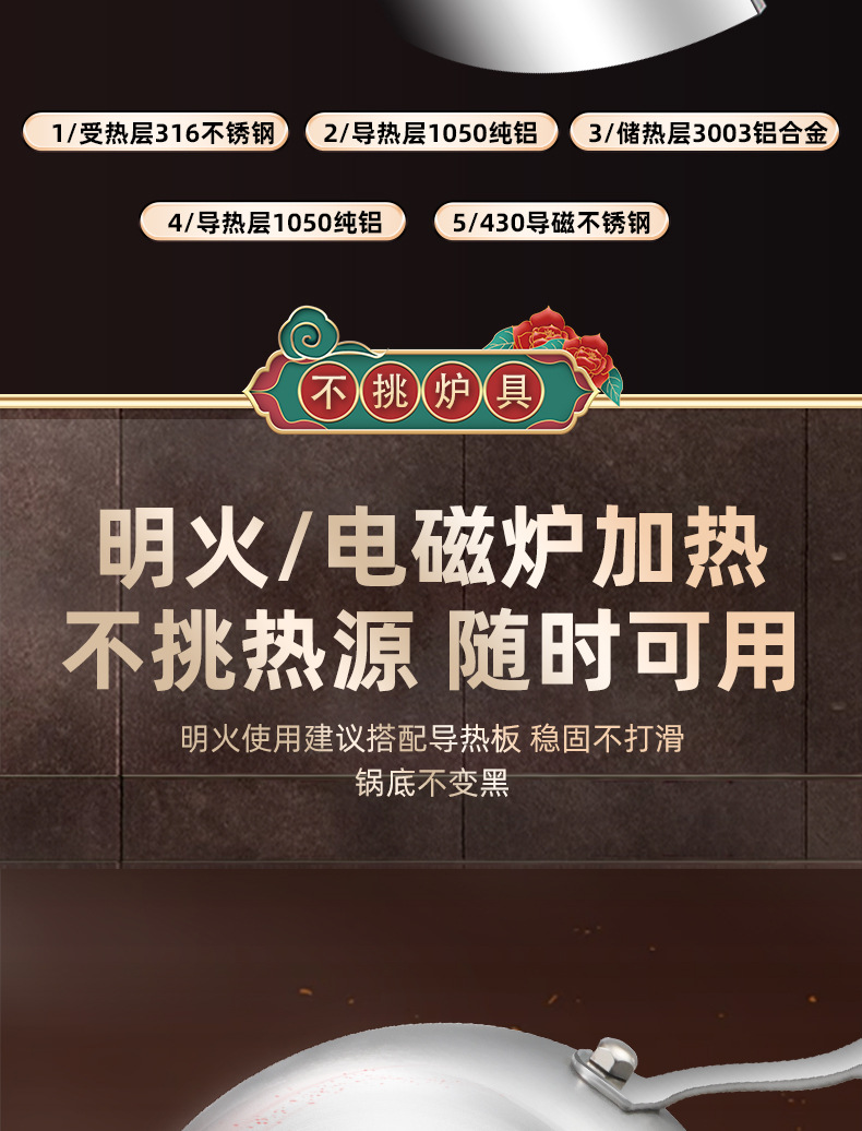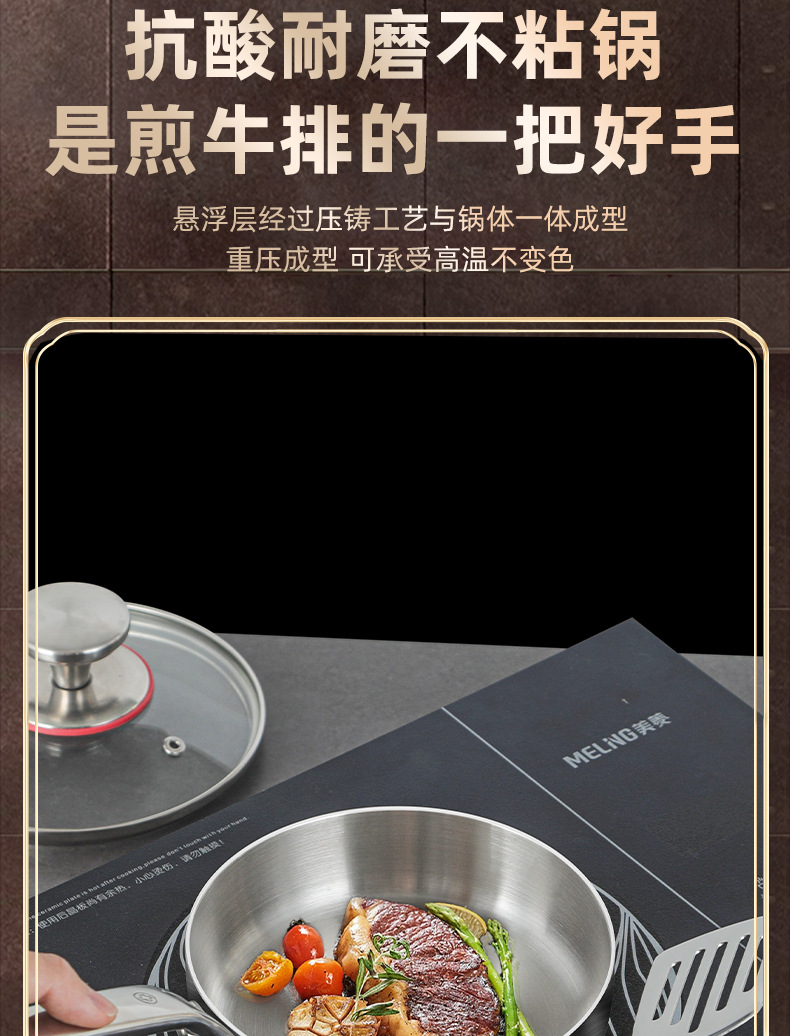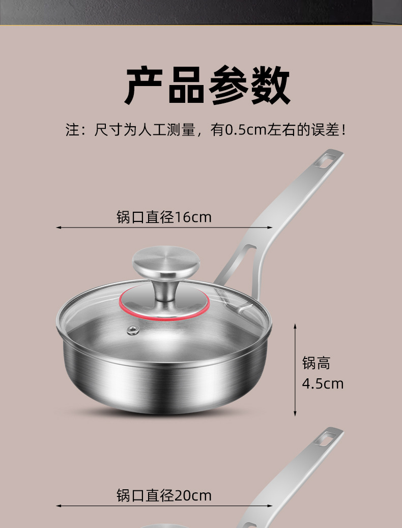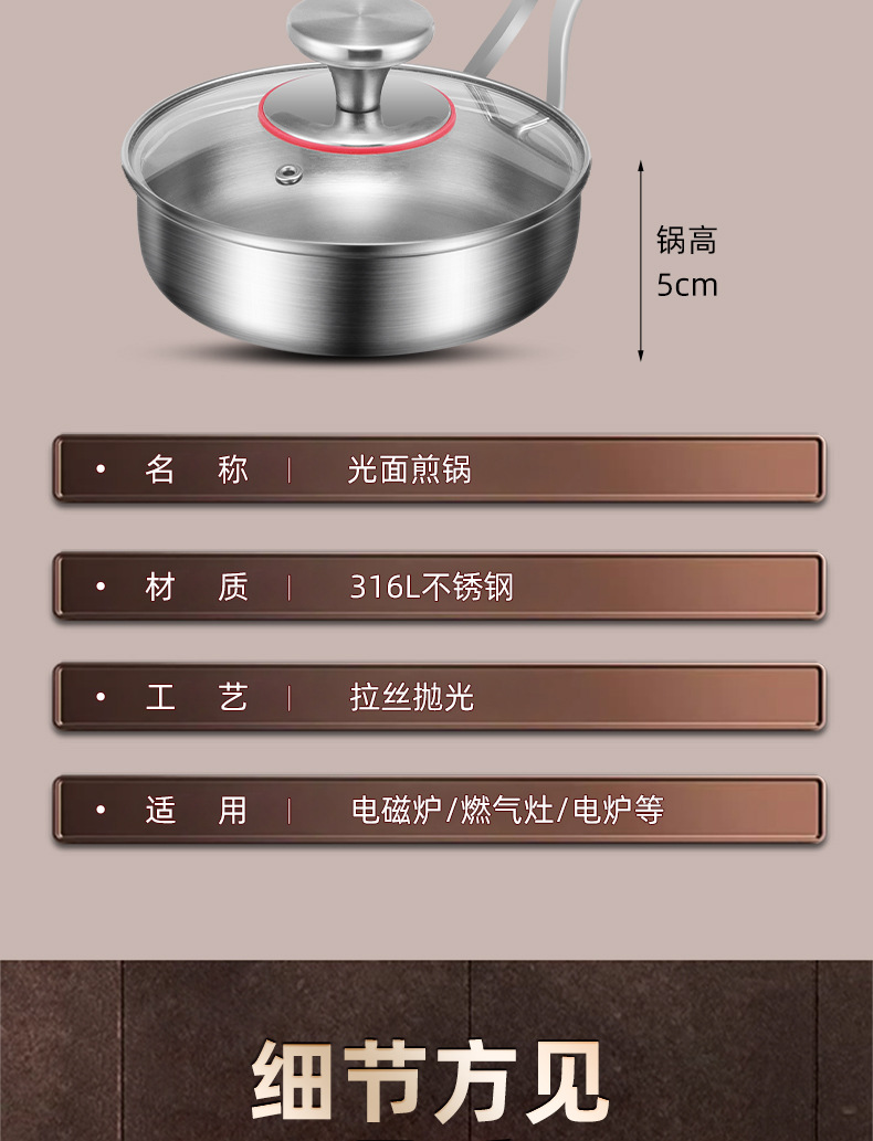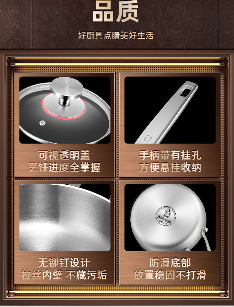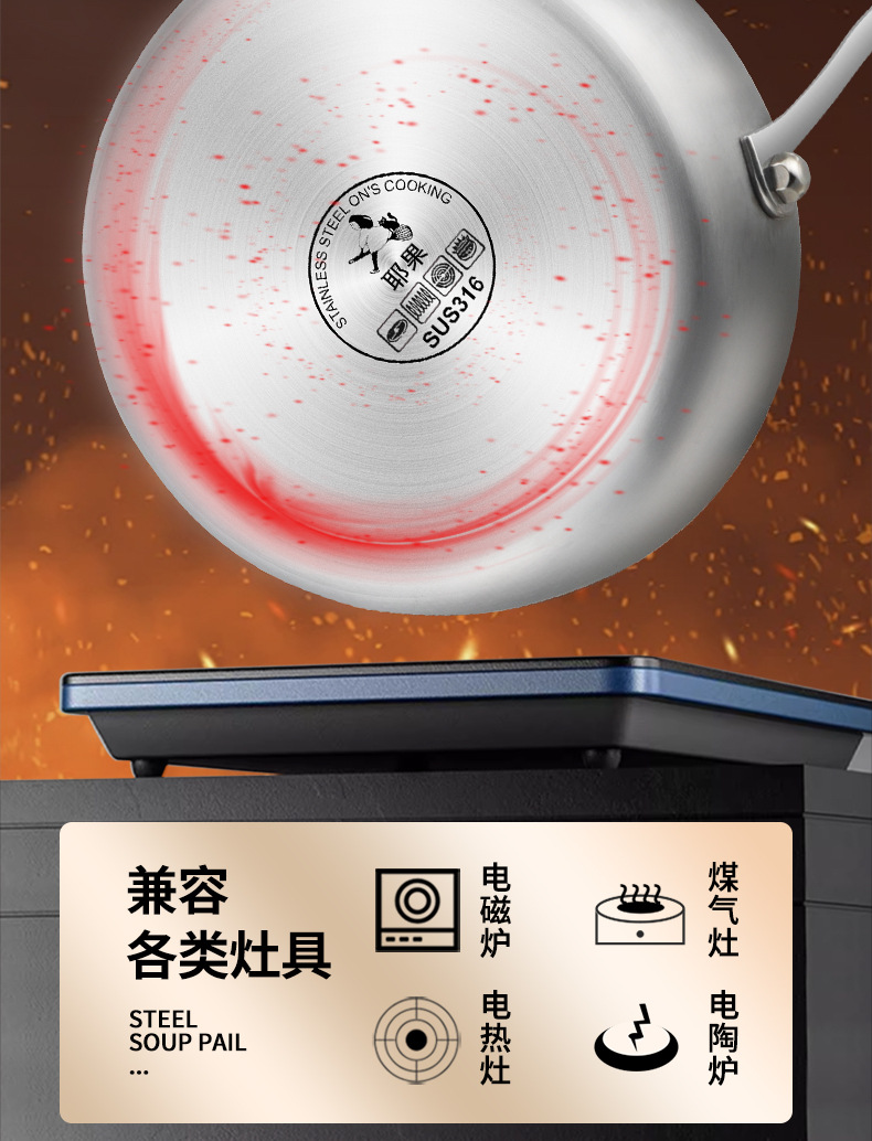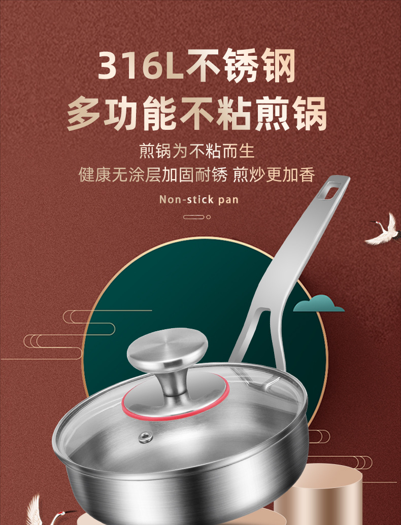 Marca Yiguo 316 auténtica sartén de acero inoxidable, bandeja de filete, sartén de acero de tres capas, mango extraíble europeo