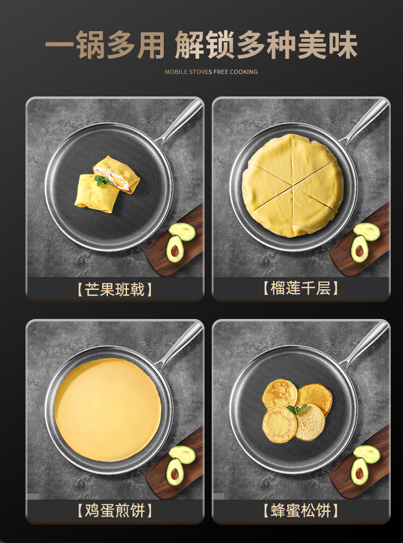 316 olla especial de piel de Melaleuca de acero inoxidable olla antiadherente de fondo plano olla de freír de filete de pan para el hogar olla de panqueque de piel de pastel