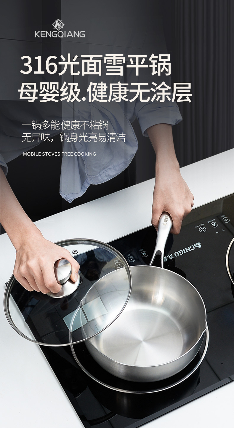Sonqiang 316 sartén de nieve de acero inoxidable olla antiadherente olla de sopa hogar freír no recubierto japonés pequeña olla de leche olla de fideos