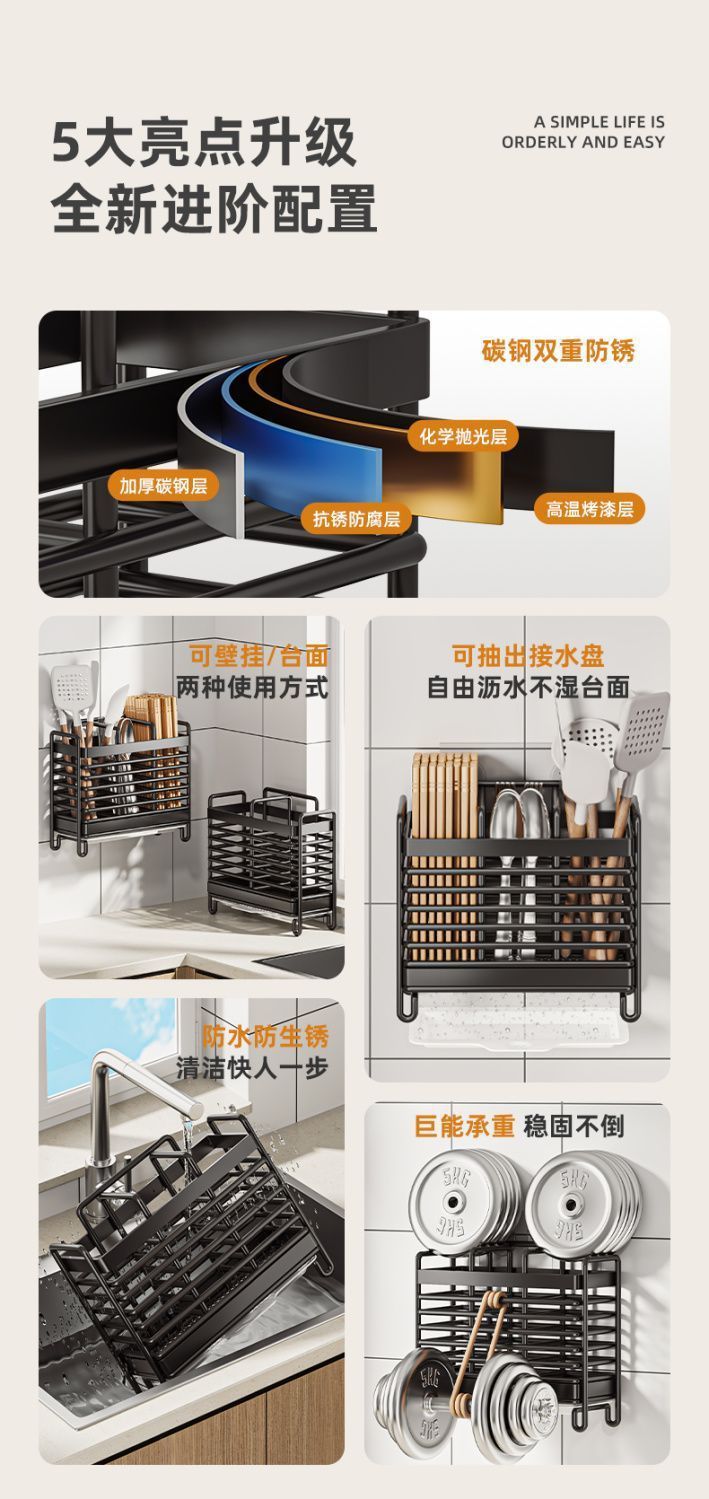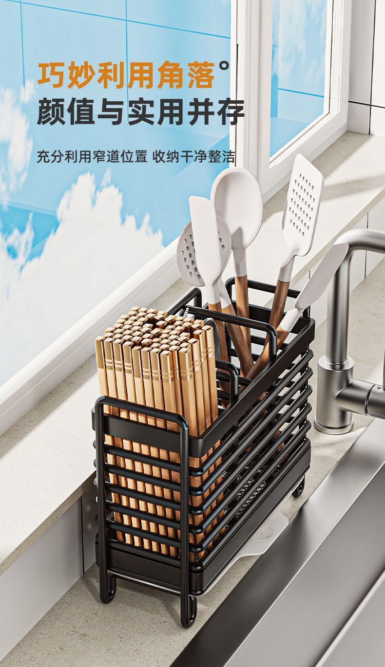 Caja de almacenamiento de palillos palillos tubo de pared tipo jaula rápida cesta de almacenamiento de estantes de cocina drenaje doméstico nuevo tipo de soporte de cuchara