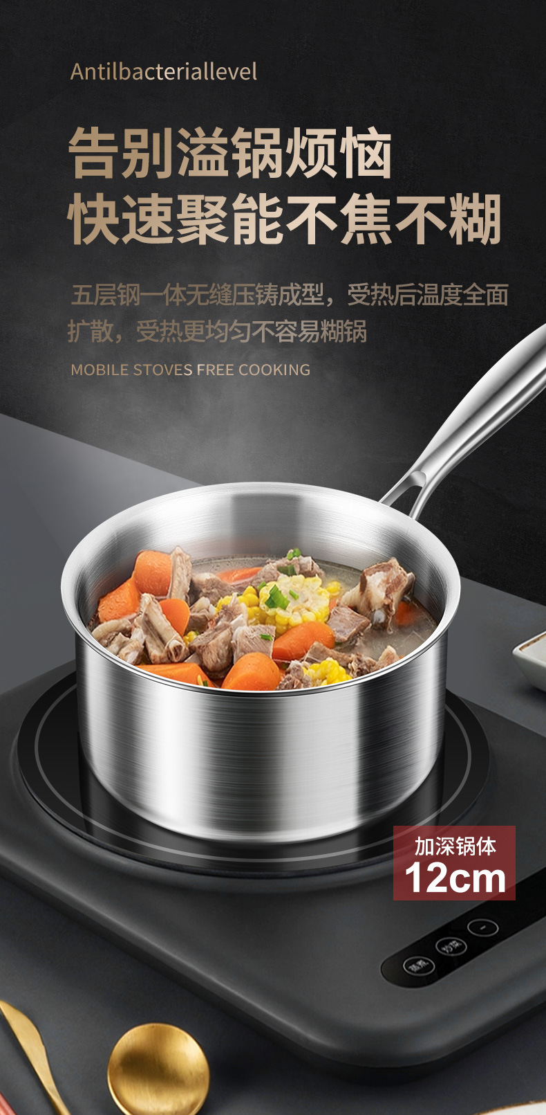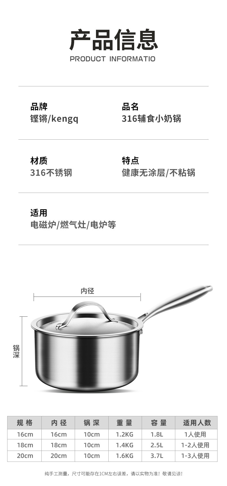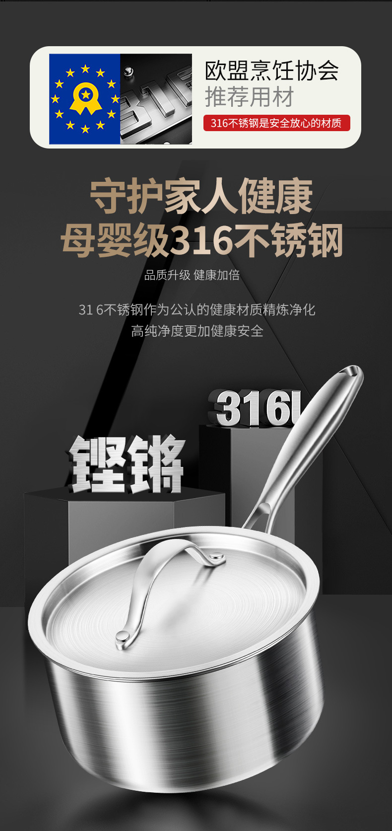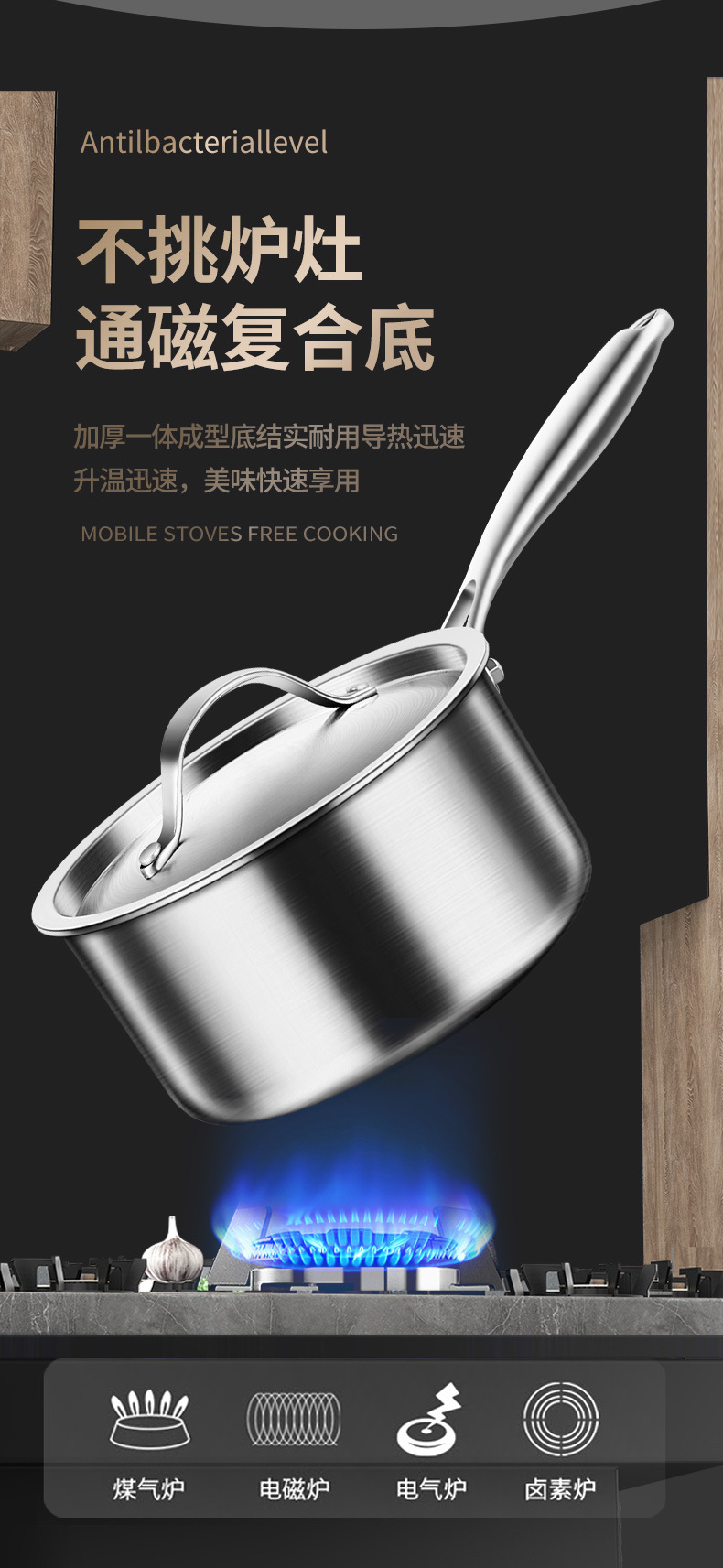 316 olla de leche de acero inoxidable olla de leche pequeña de calidad alimentaria engrosada olla de sopa de una sola manija suplemento alimenticio para bebés olla especial olla de leche caliente gruesa