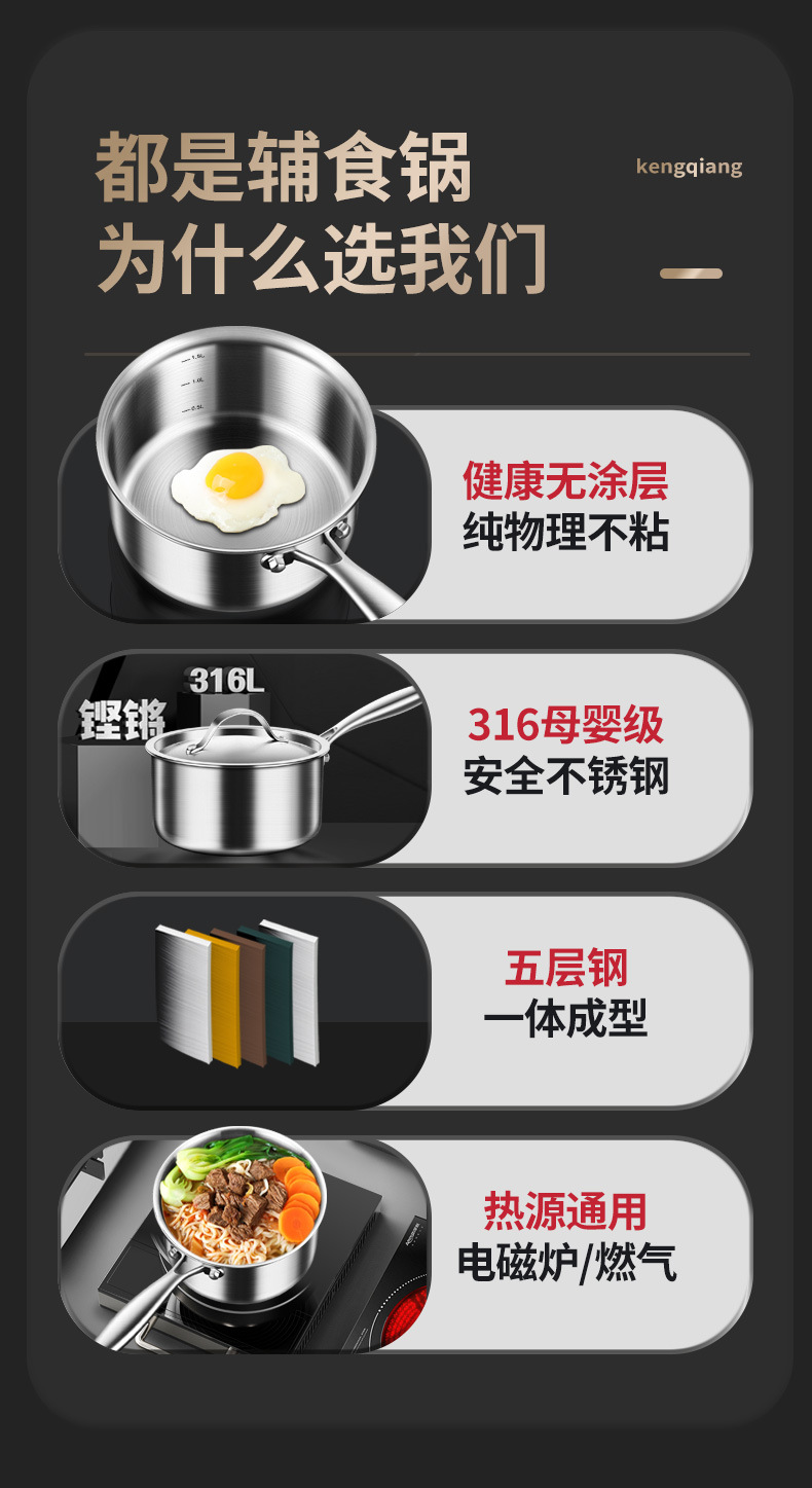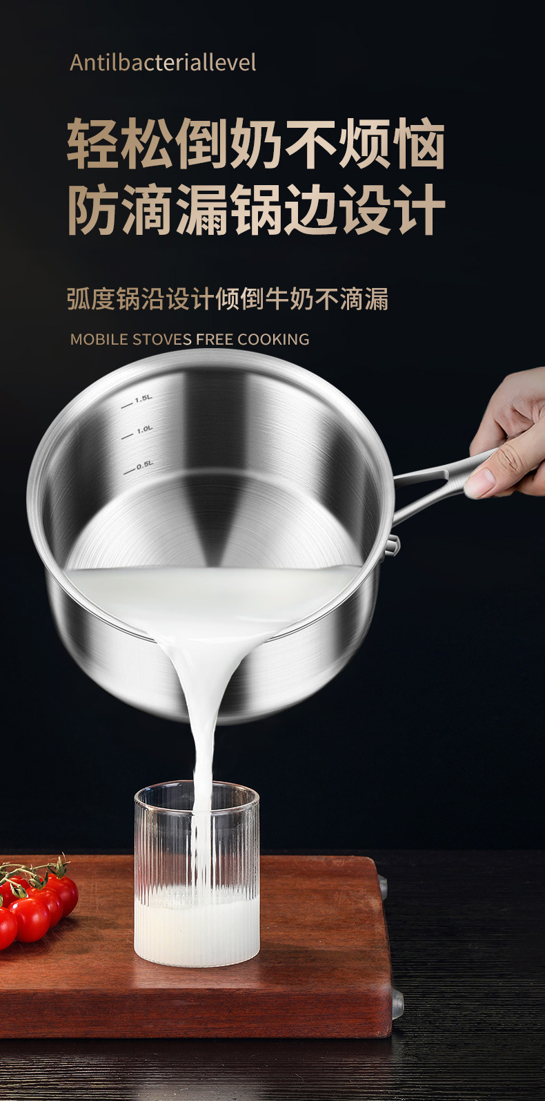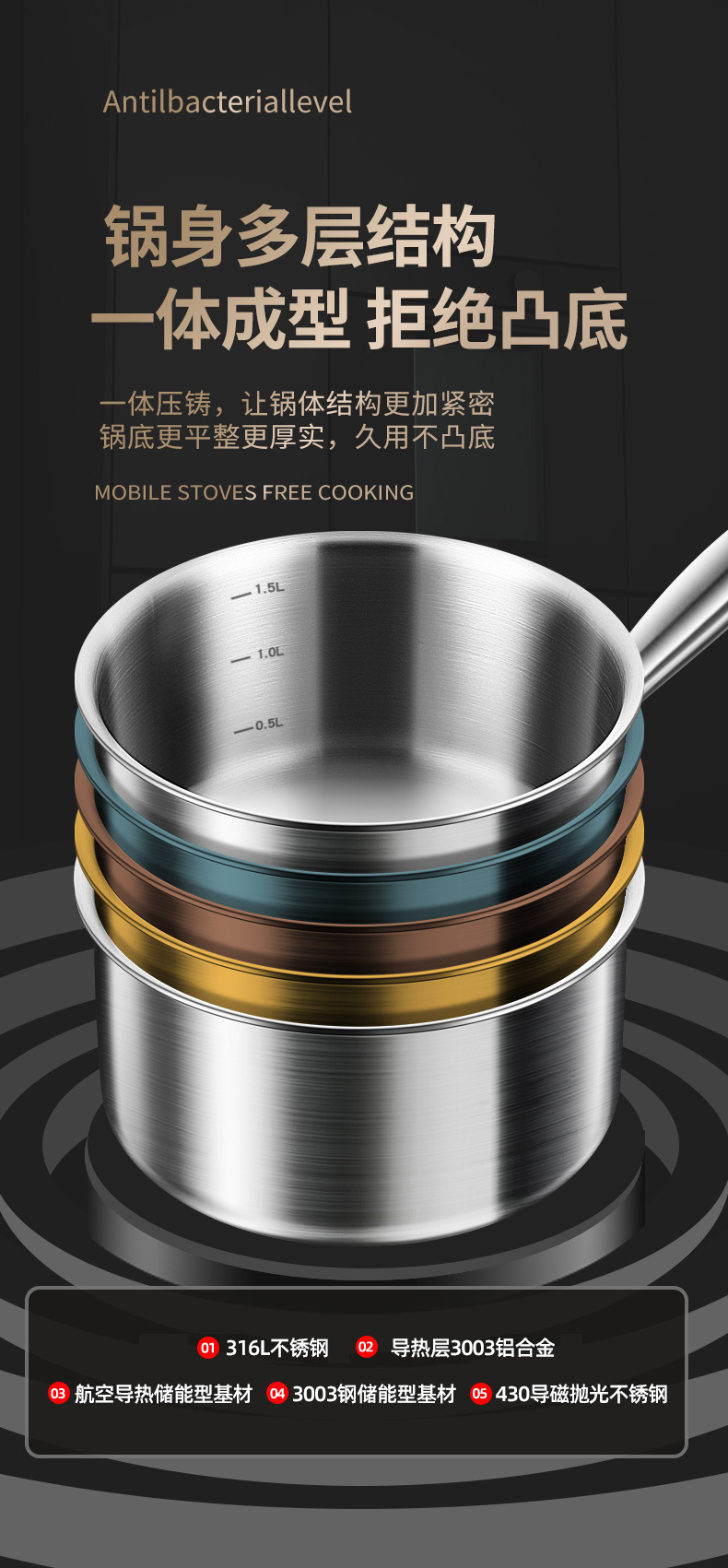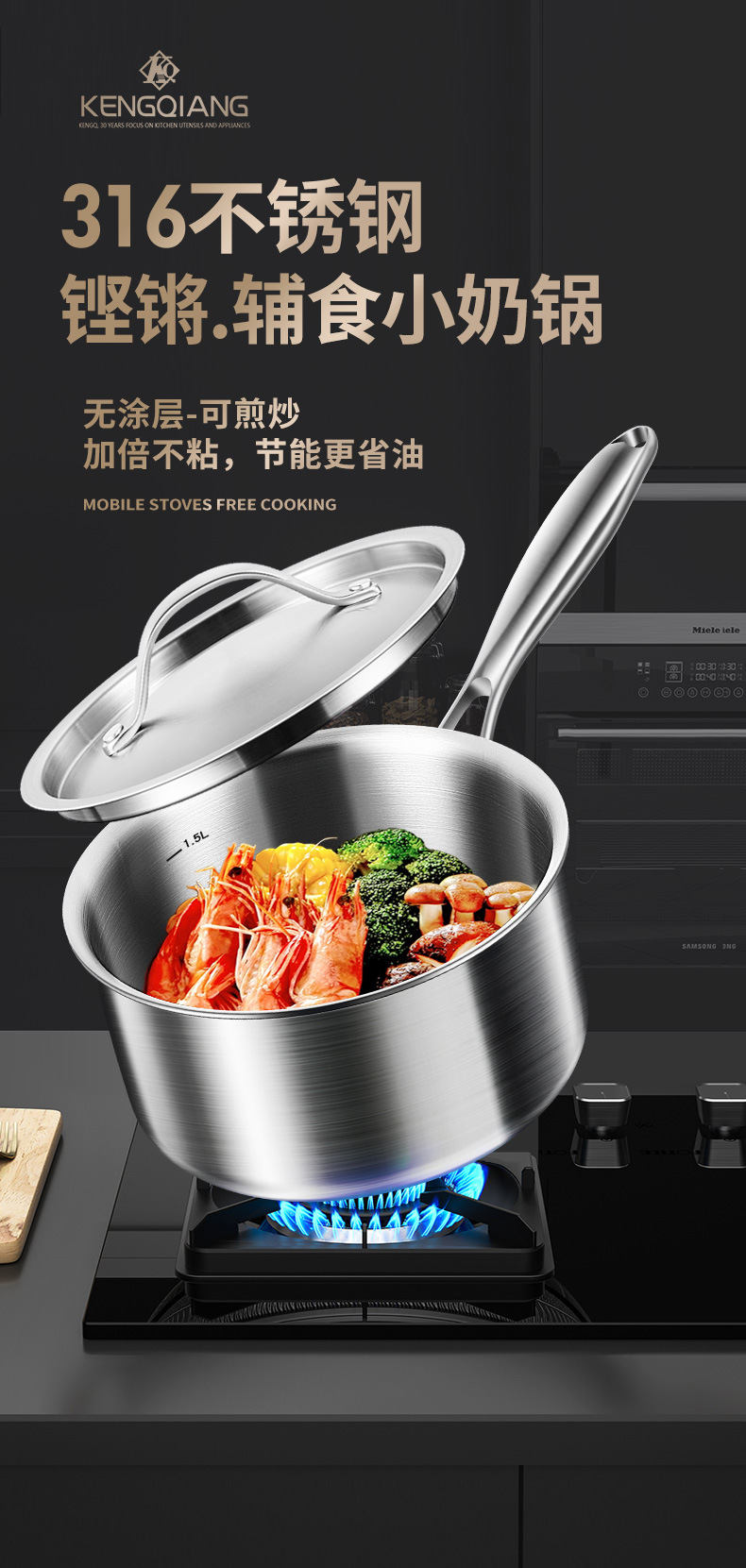 316 olla de leche de acero inoxidable olla de leche pequeña de calidad alimentaria engrosada olla de sopa de una sola manija suplemento alimenticio para bebés olla especial olla de leche caliente gruesa