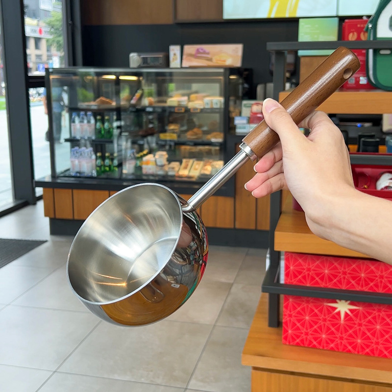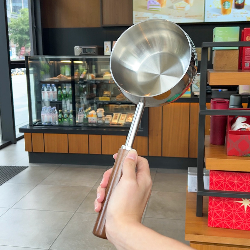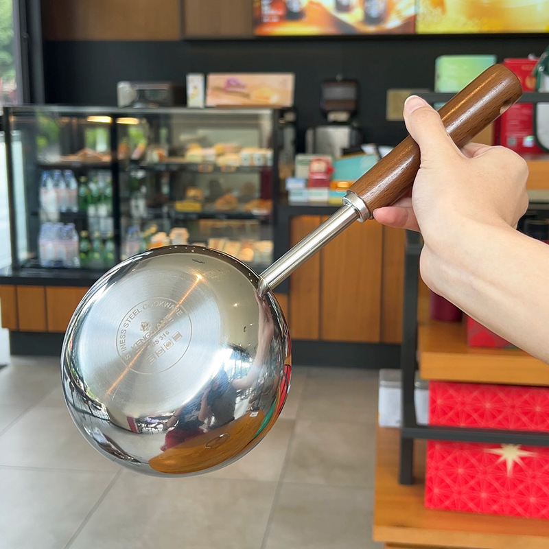 316 acero inoxidable casera de nuez mango largo anti-calor mini olla de leche de aceite caliente pequeña olla de aceite de riego
