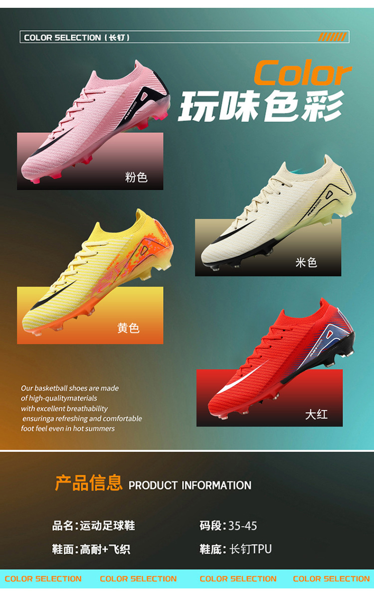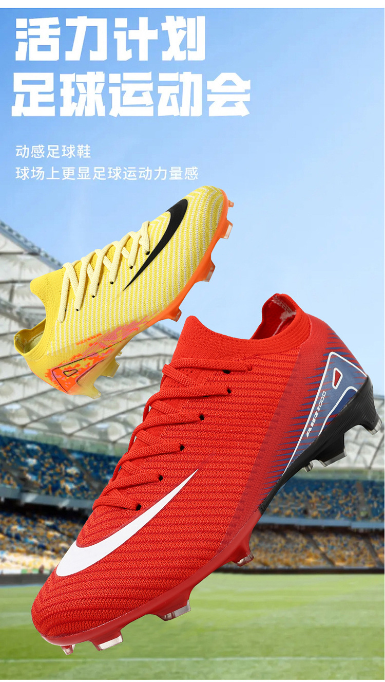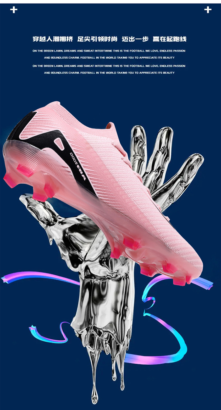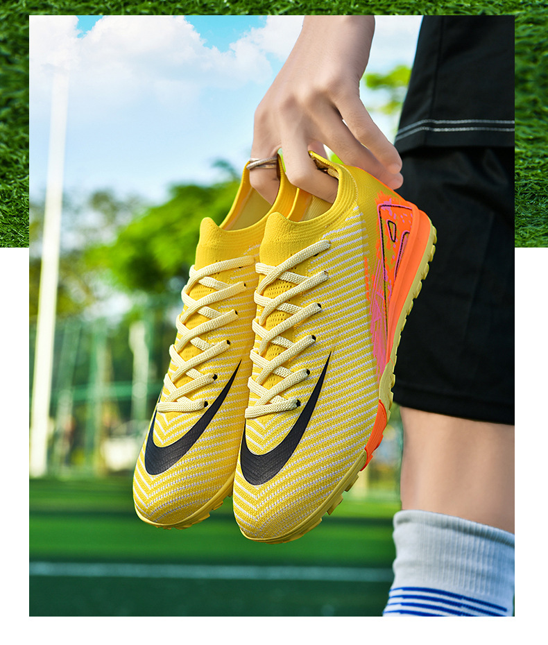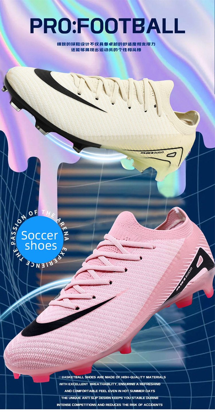 Nuevos zapatos de fútbol juveniles transfronterizos transpirables, zapatos de fútbol de clavos largos, zapatos de entrenamiento de césped interior