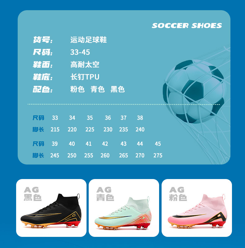 2025 nuevas zapatillas de fútbol transfronterizas de clavos largos, botas de fútbol juveniles para hombres y mujeres, venta directa de fábrica